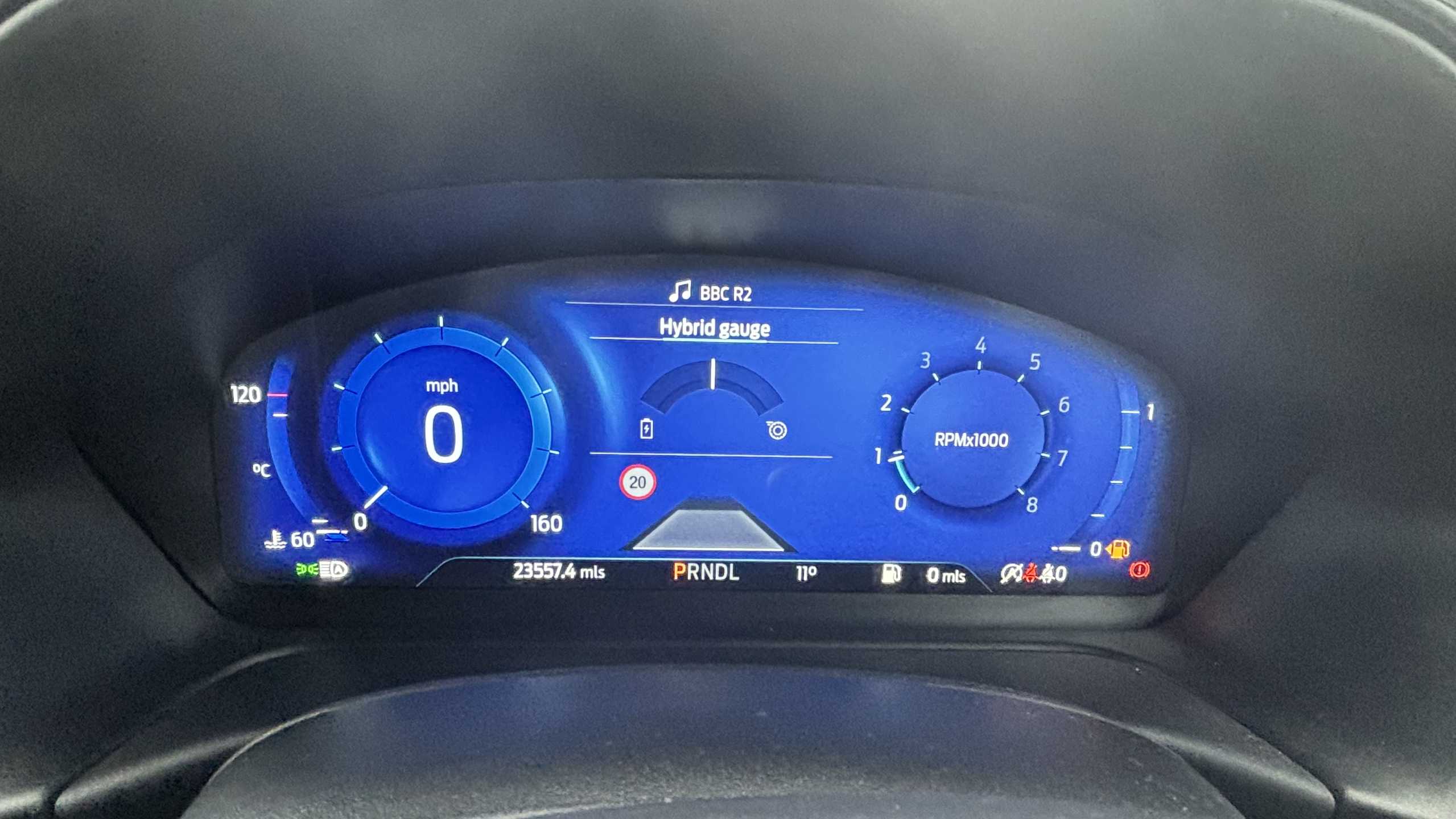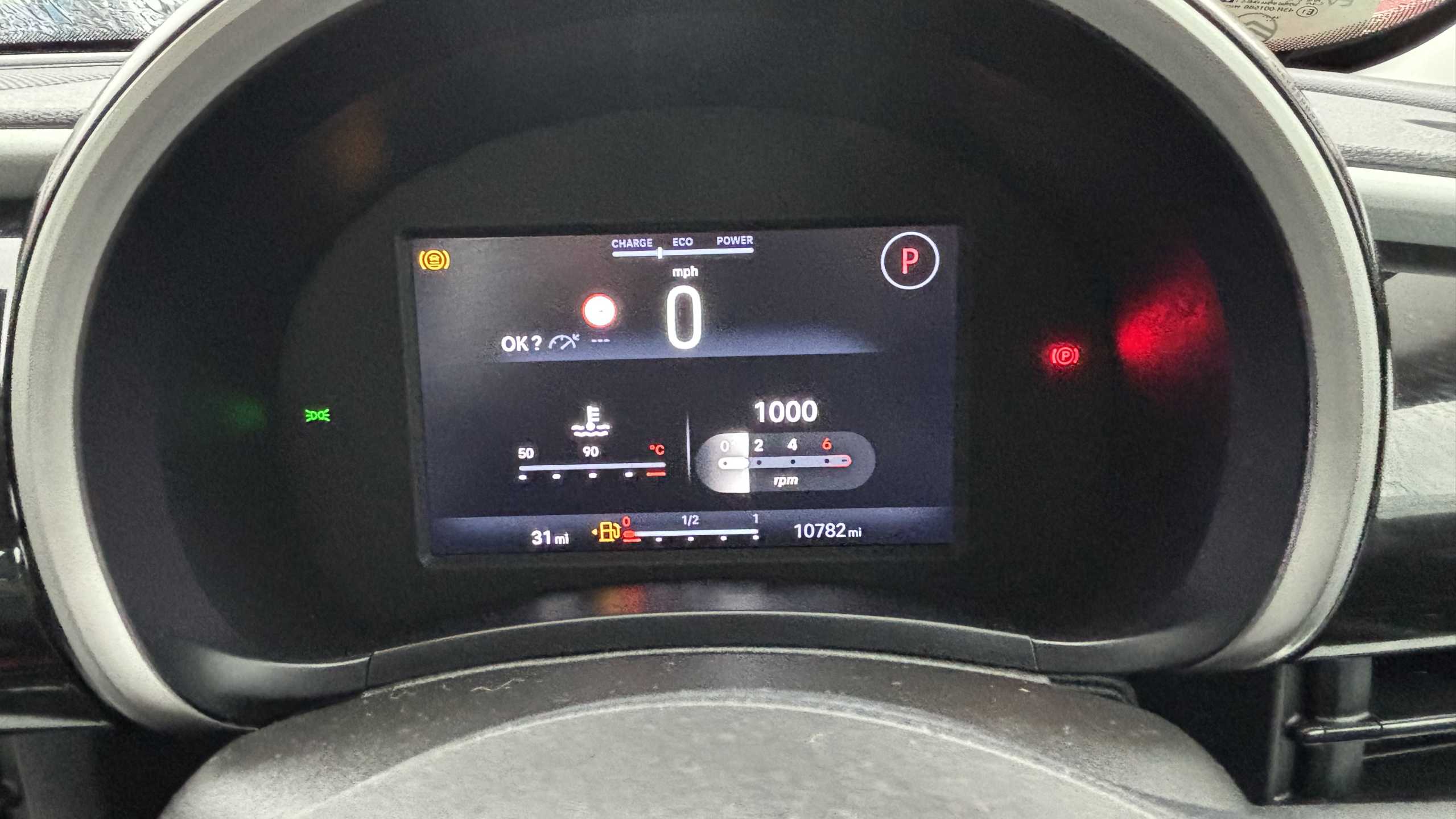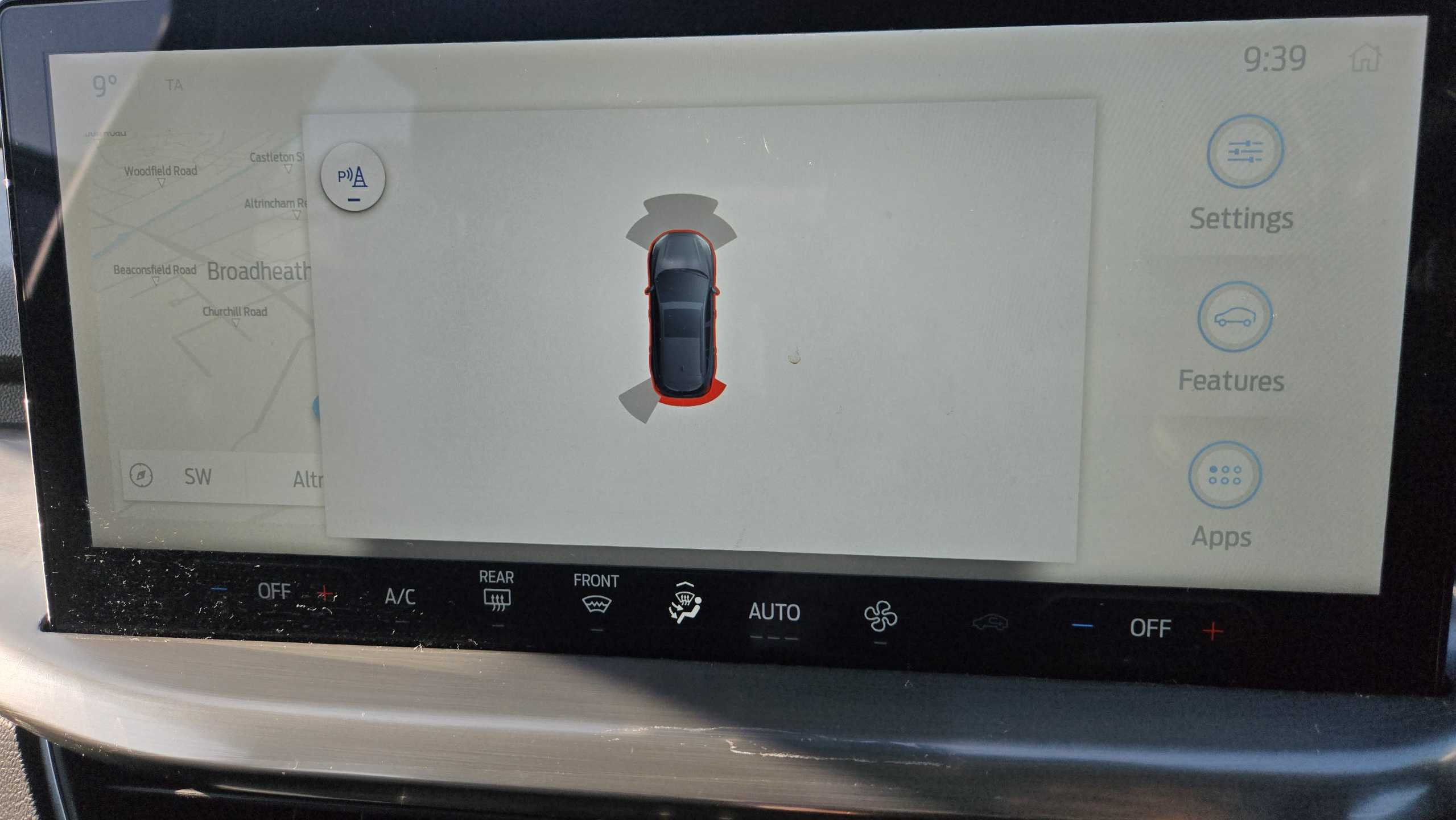 "Exterior temperature indicator with ice warning",