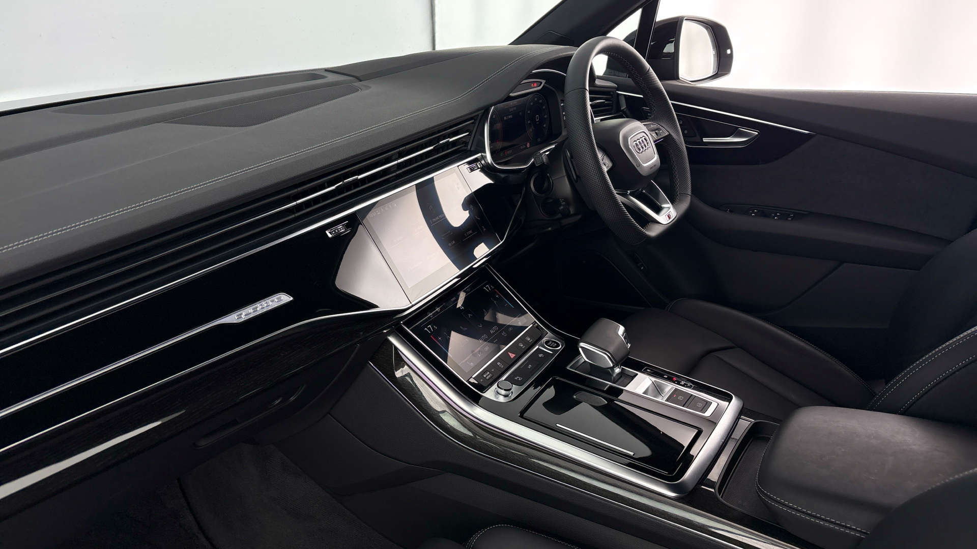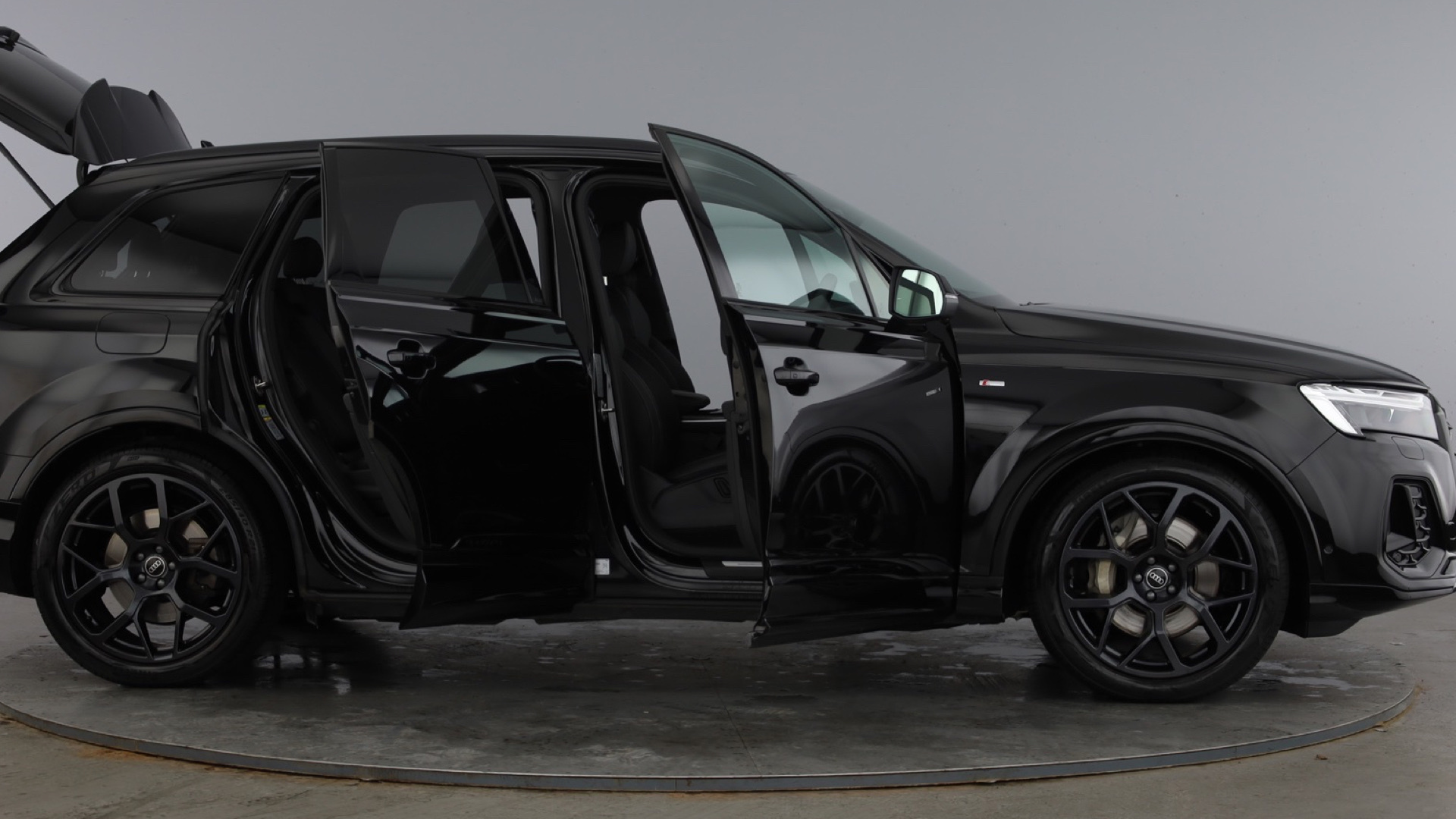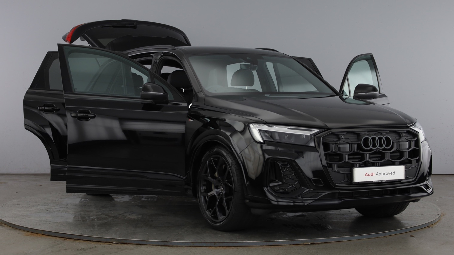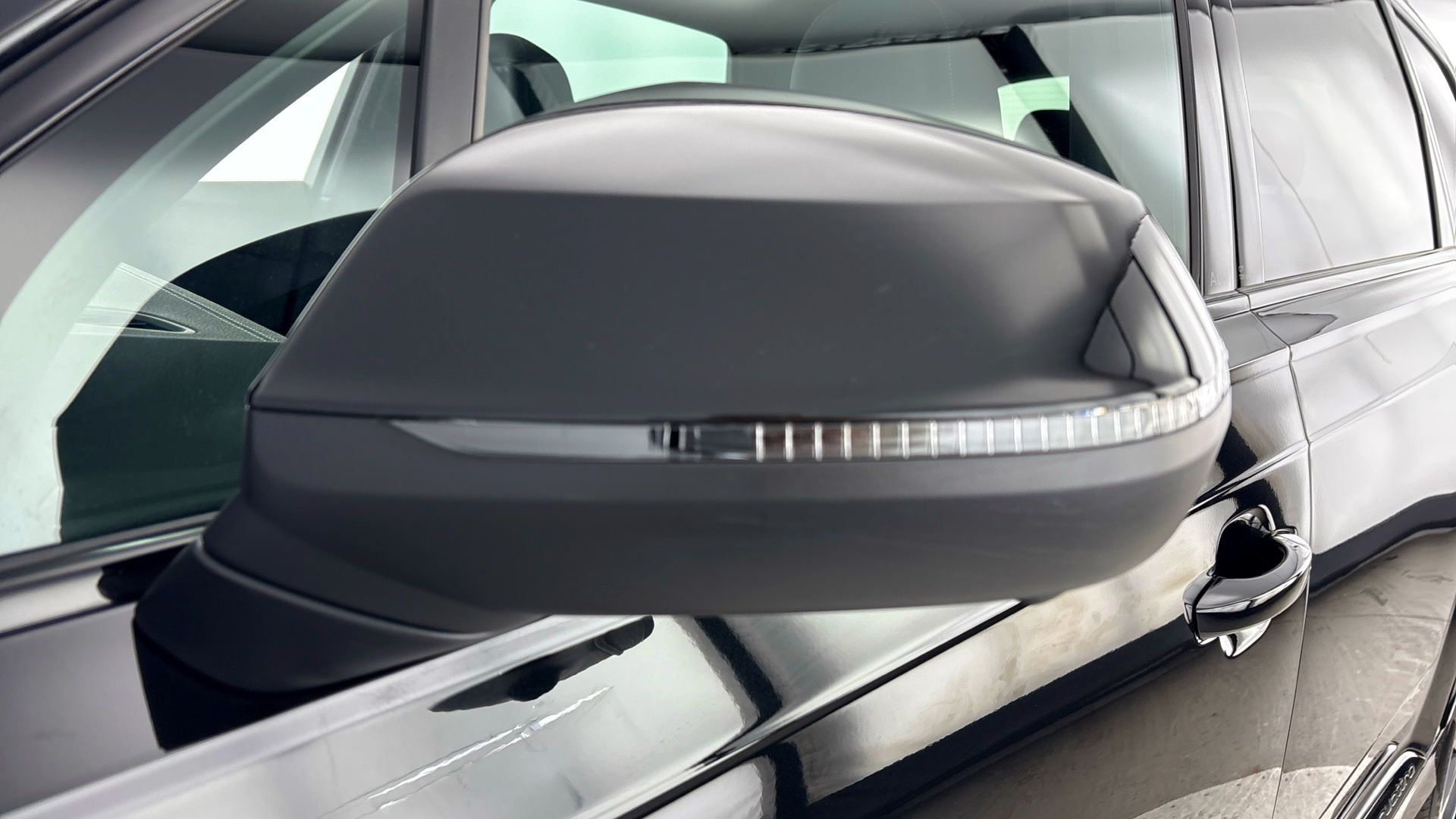 "Satin black door and side trim panel in front"