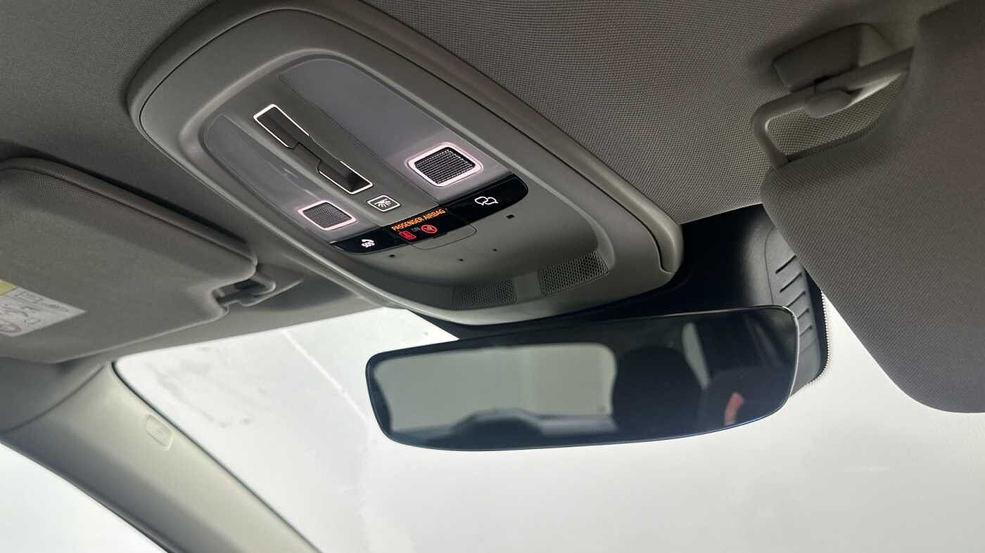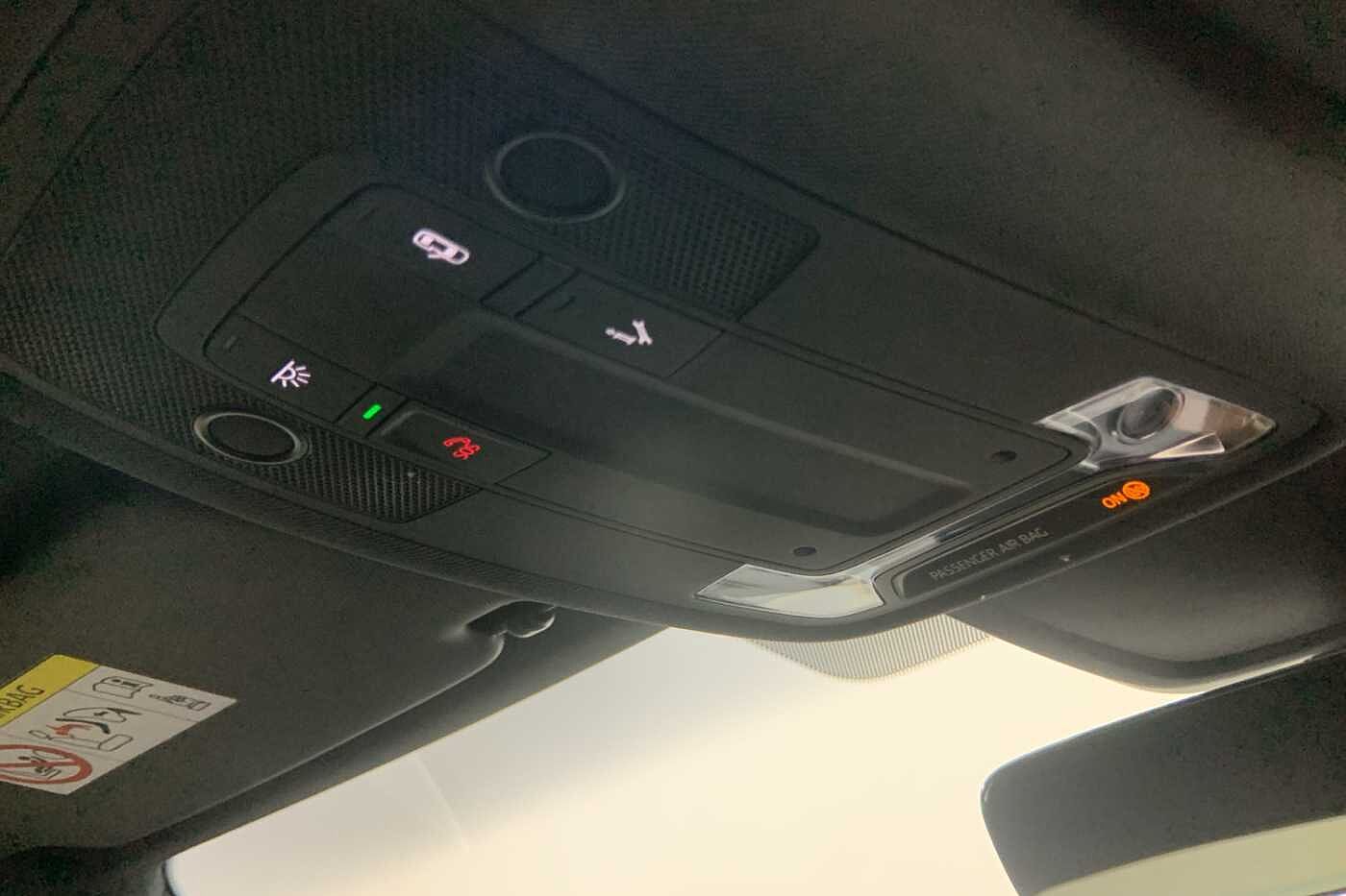 "Sun visors with mirror and airbag label on passenger side",