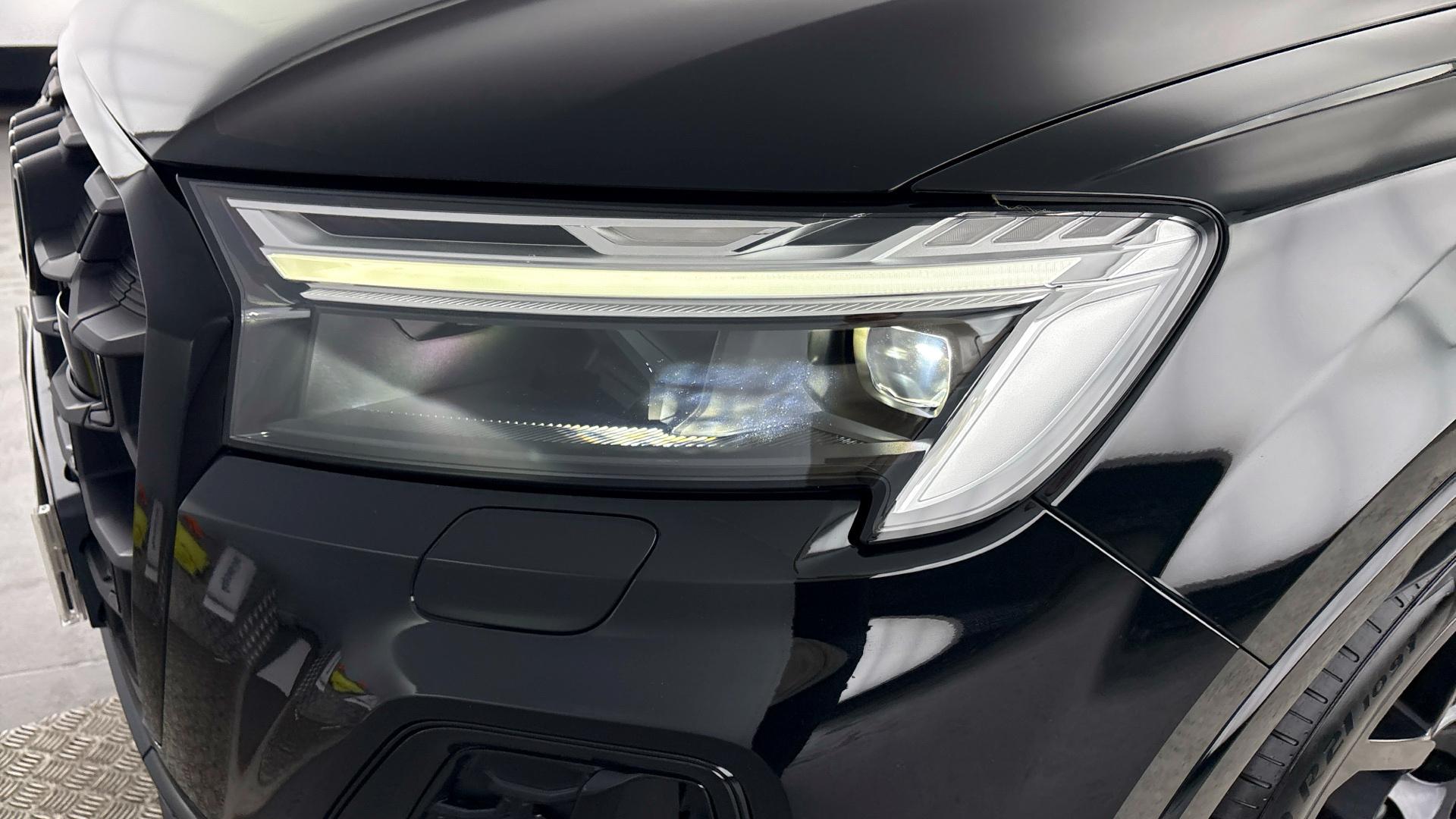 "Glossy black decorative trim",