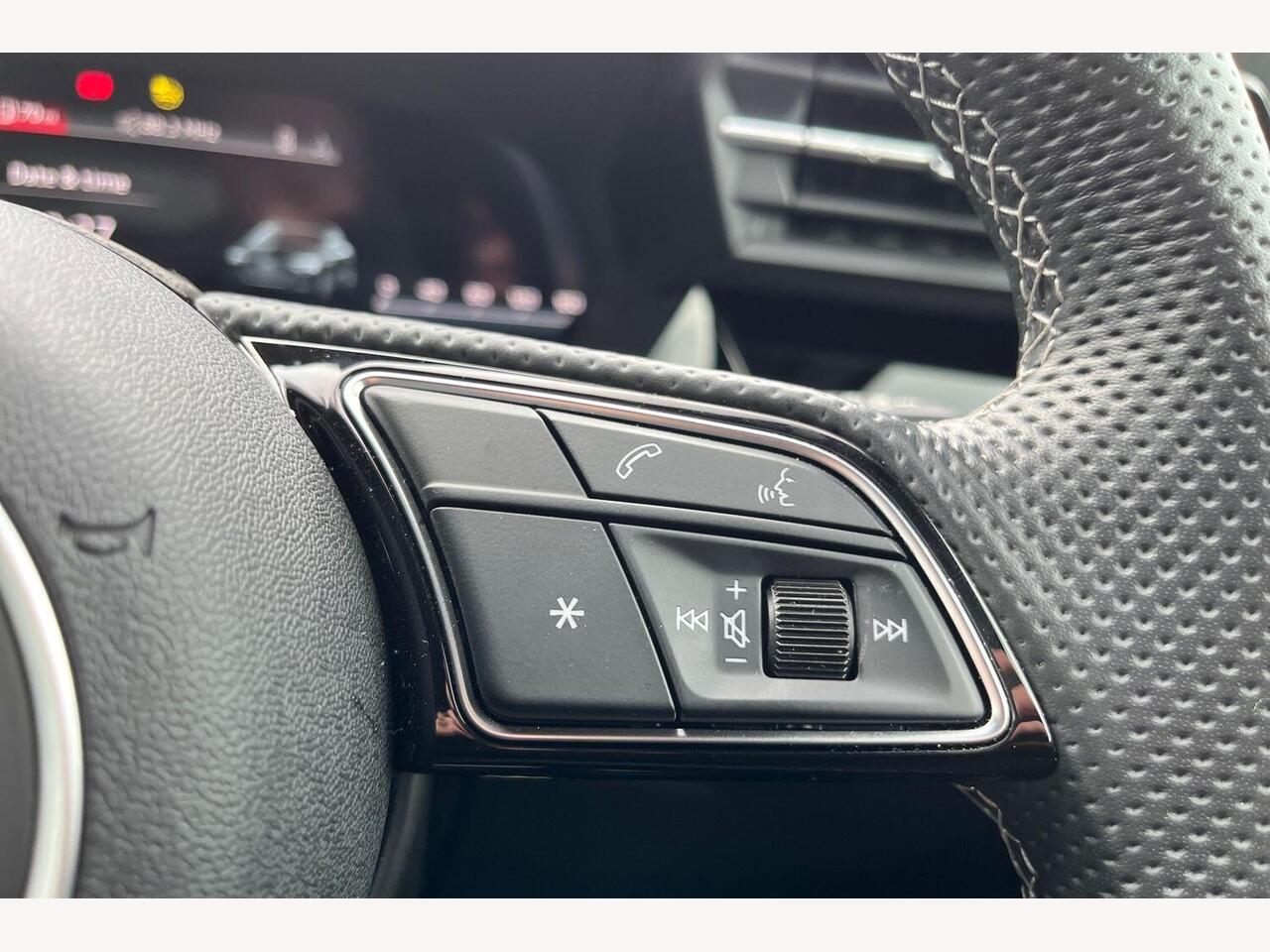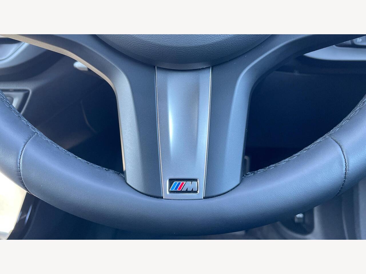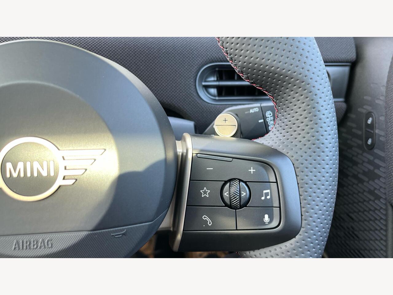 "Multifunction split leather and gloss steering wheel",