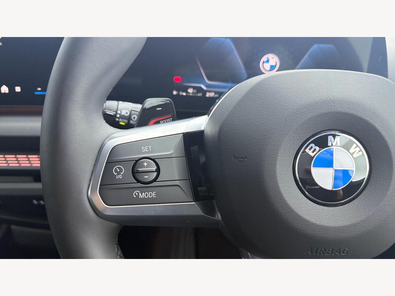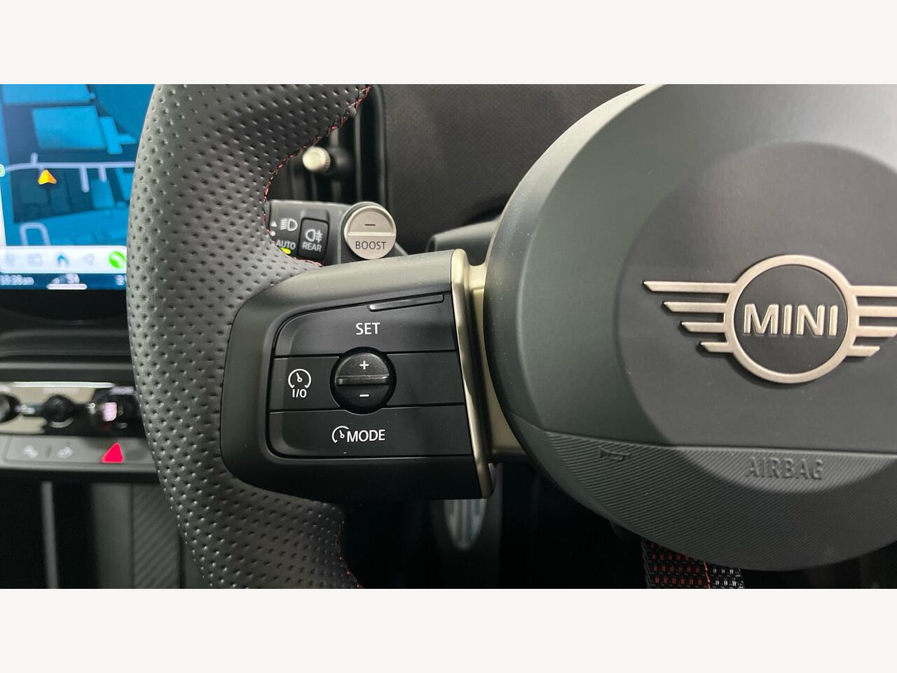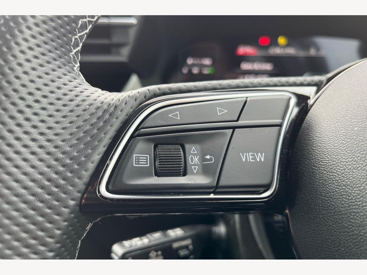 "Multifunction split leather and gloss steering wheel",