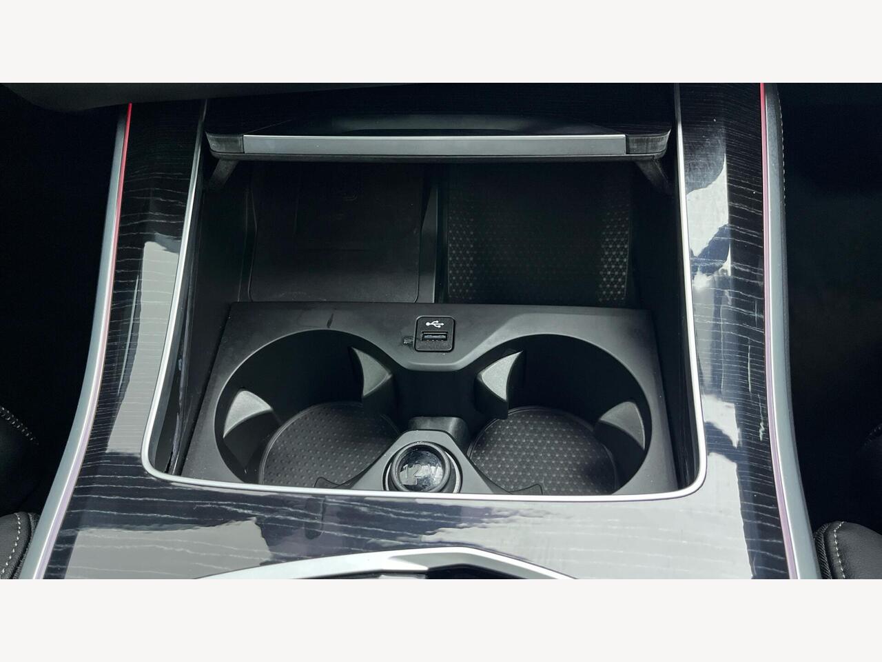 "Front central console with two cup holders",
