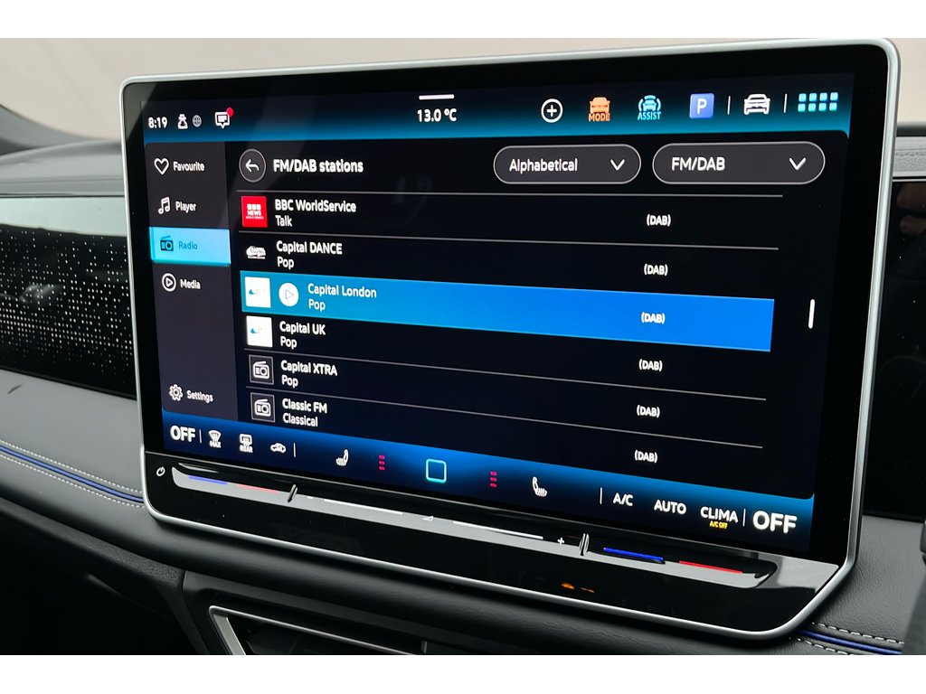 "13\" touchscreen infotainment display with wireless app connect and DAB radio",