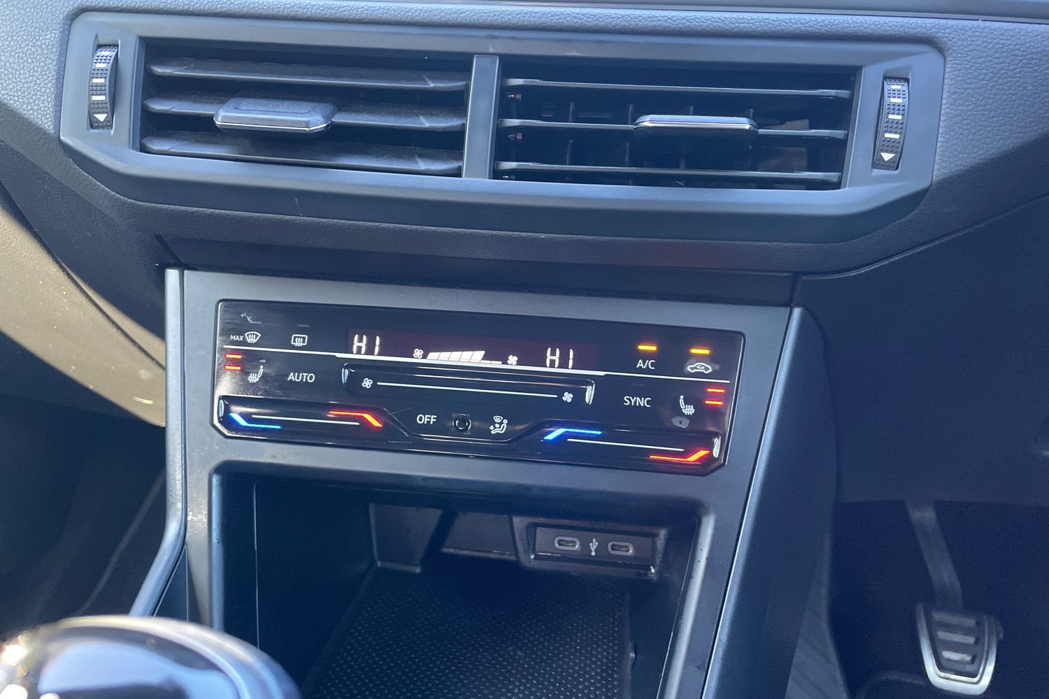 "2x 15-W USB data/charging ports in dashboard and 1x USB-C, 1x USB-A center bottom",