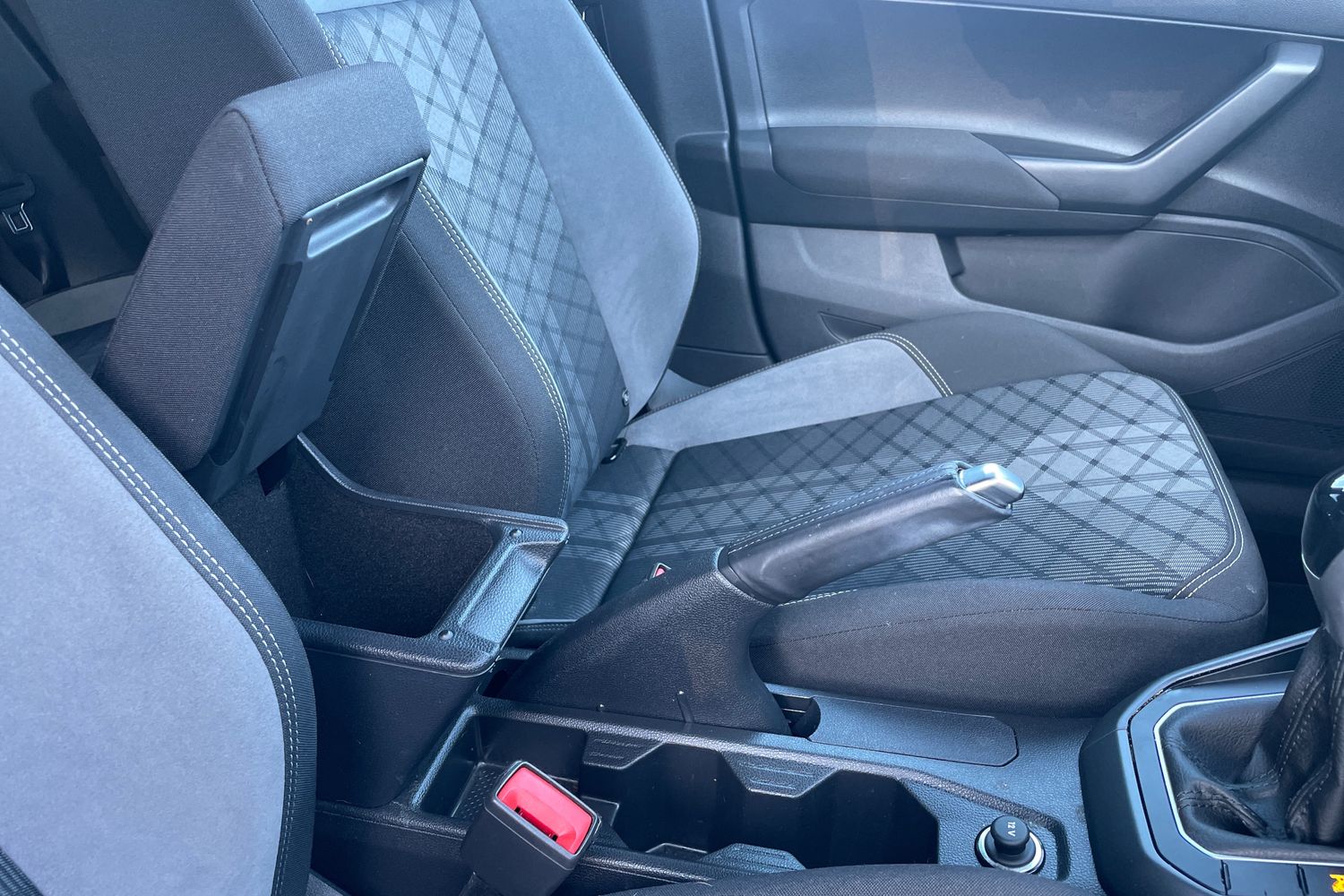 "Narrow centre console with cup holder and compartment for mobile phone",