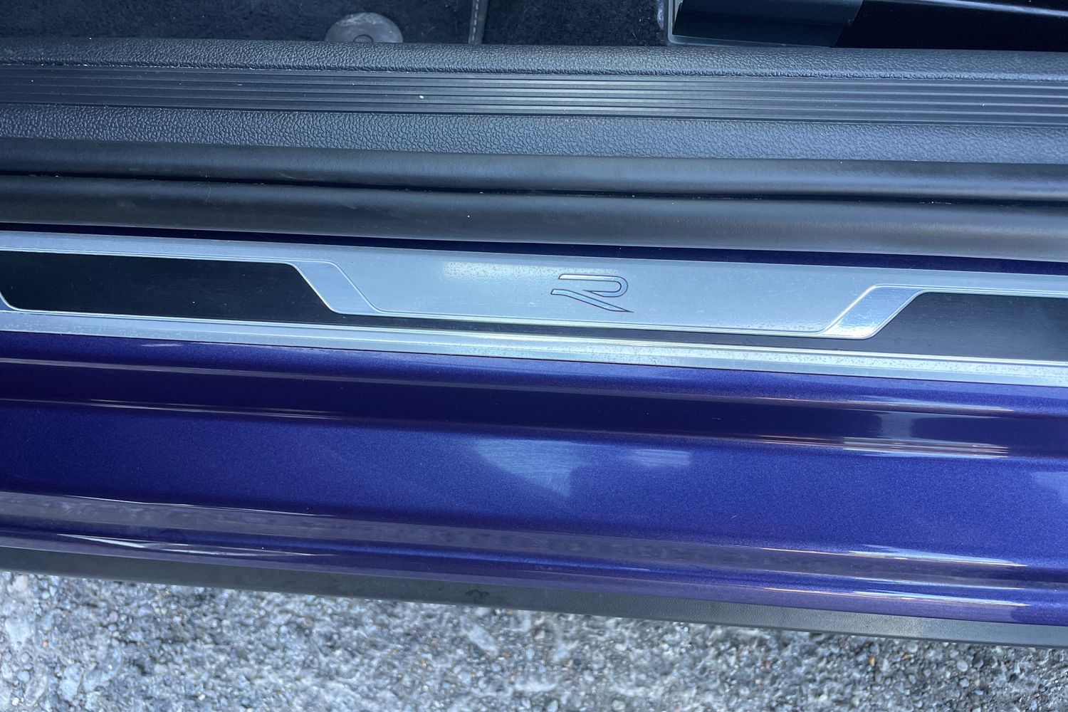"Black plastic scuff plate for sliding door in cargo without illumination",