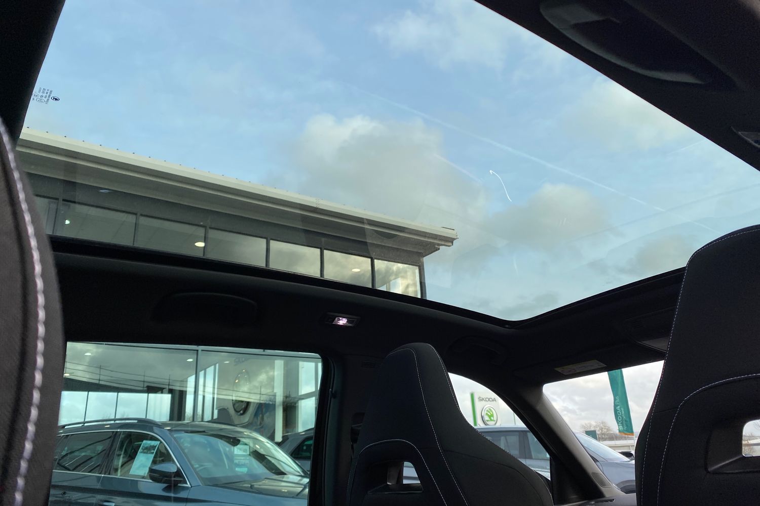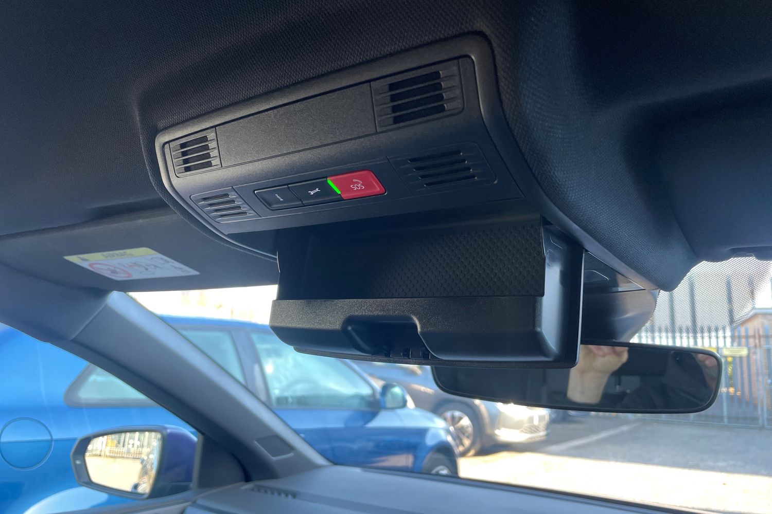 "Glasses compartment in driver side roof",