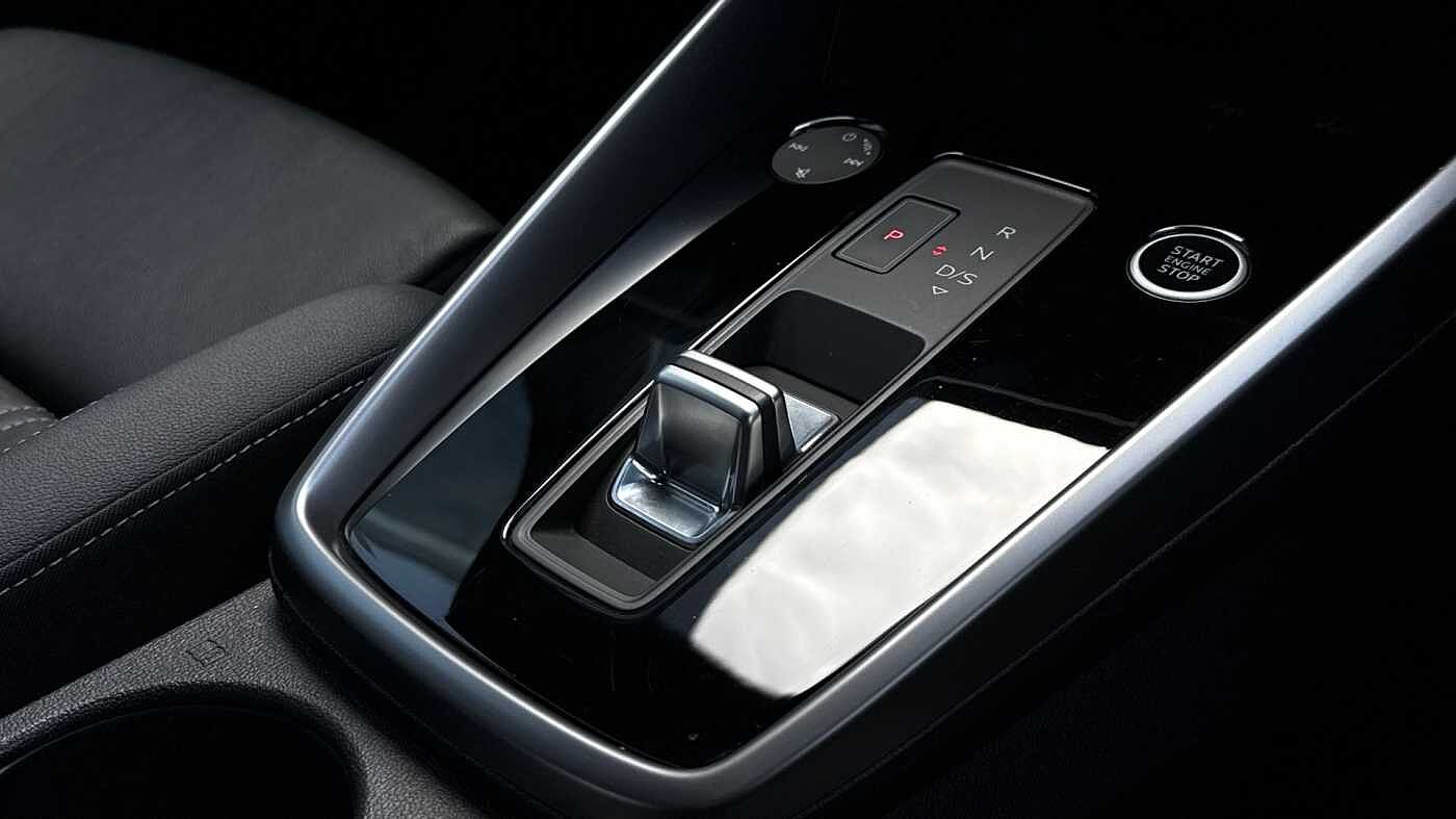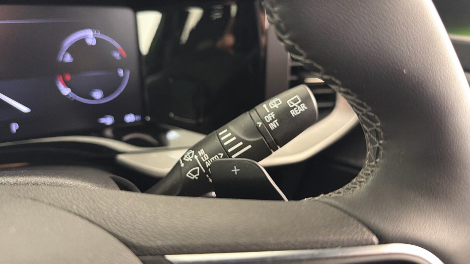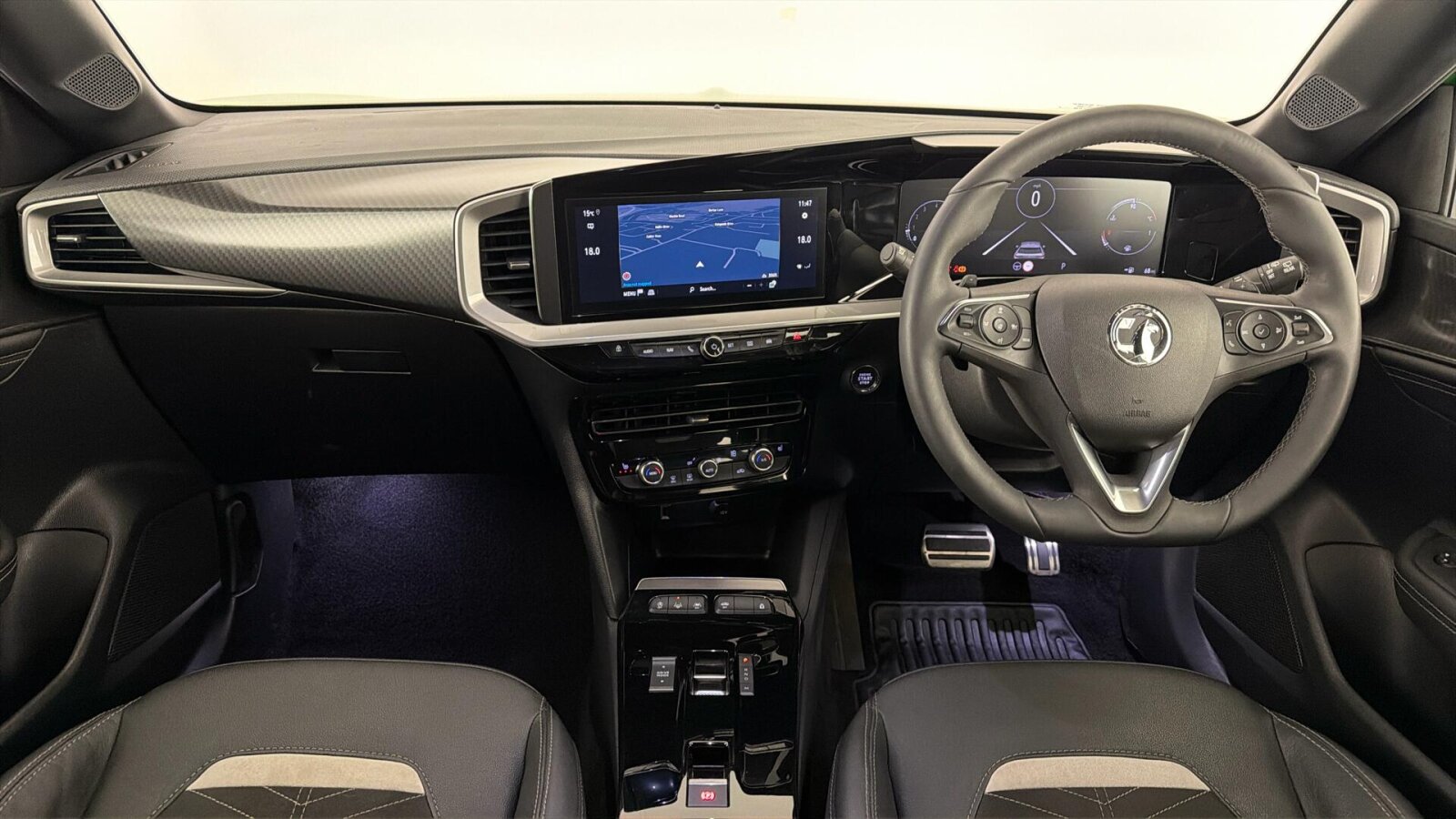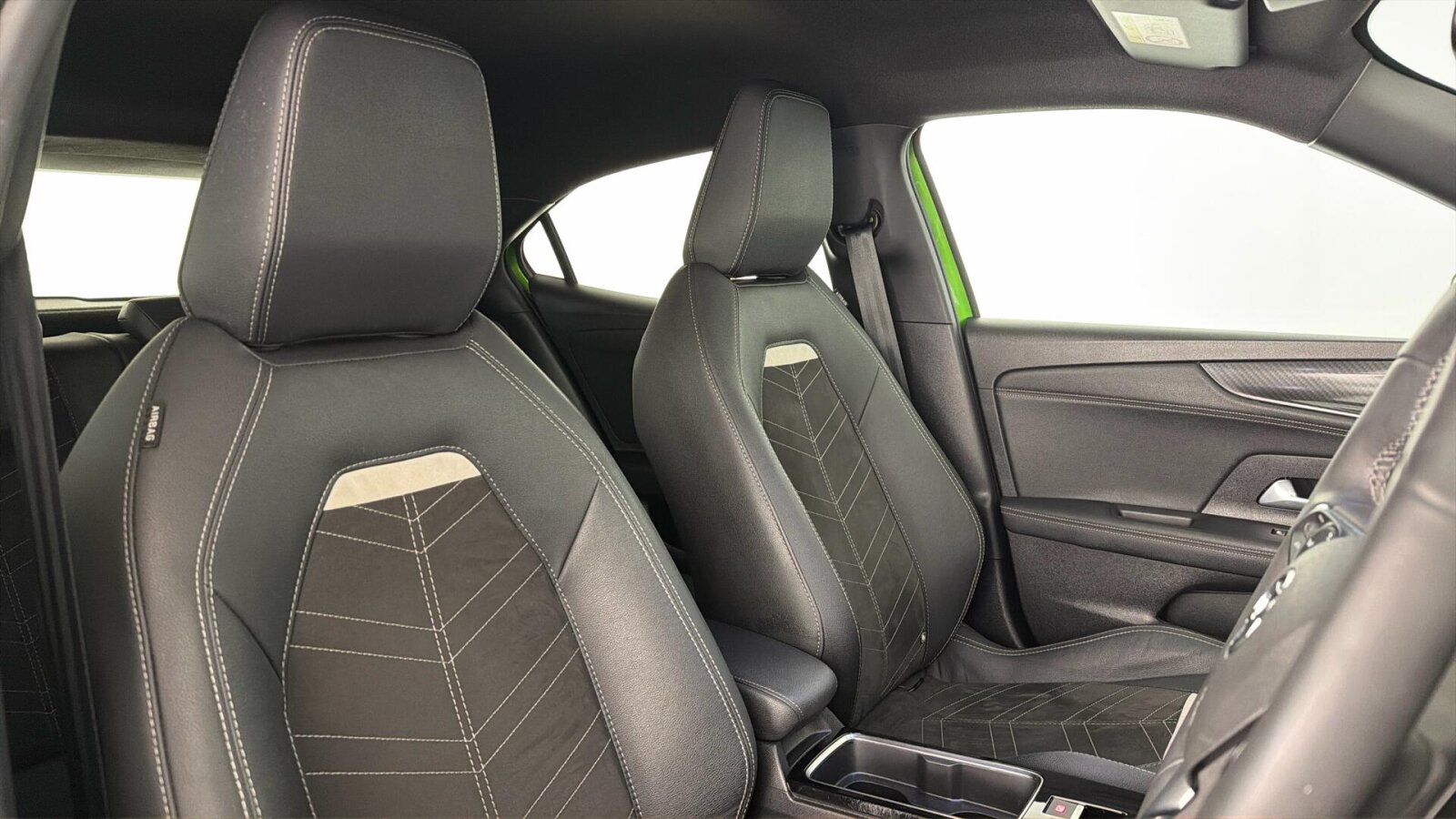 "Tailored instrument panel with contrast stitching"