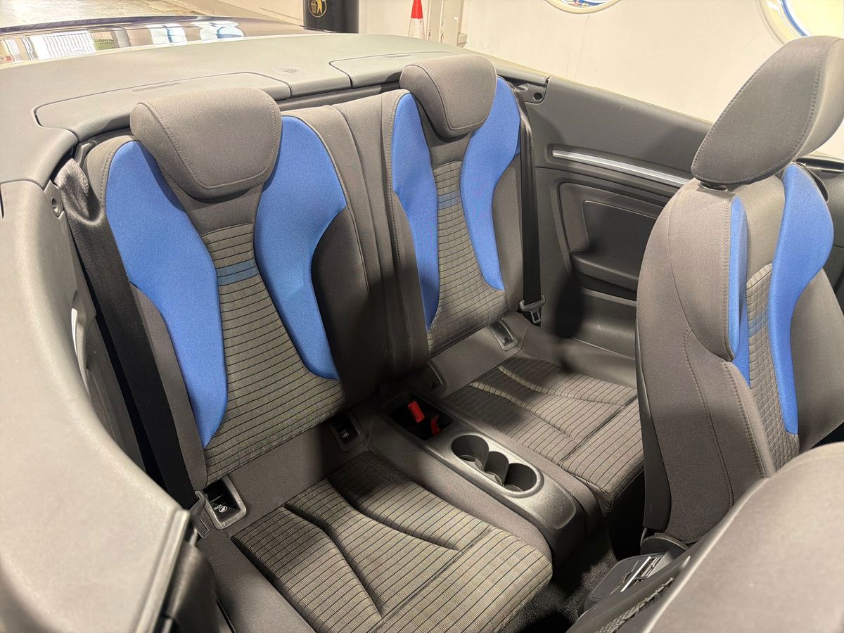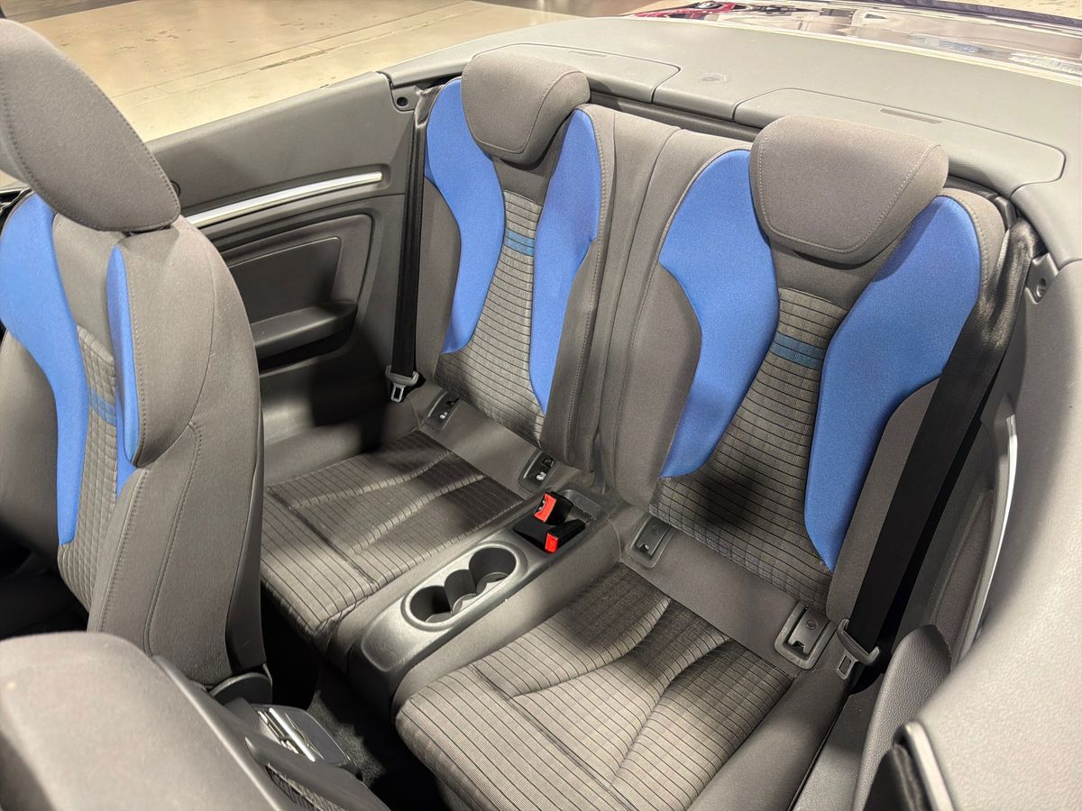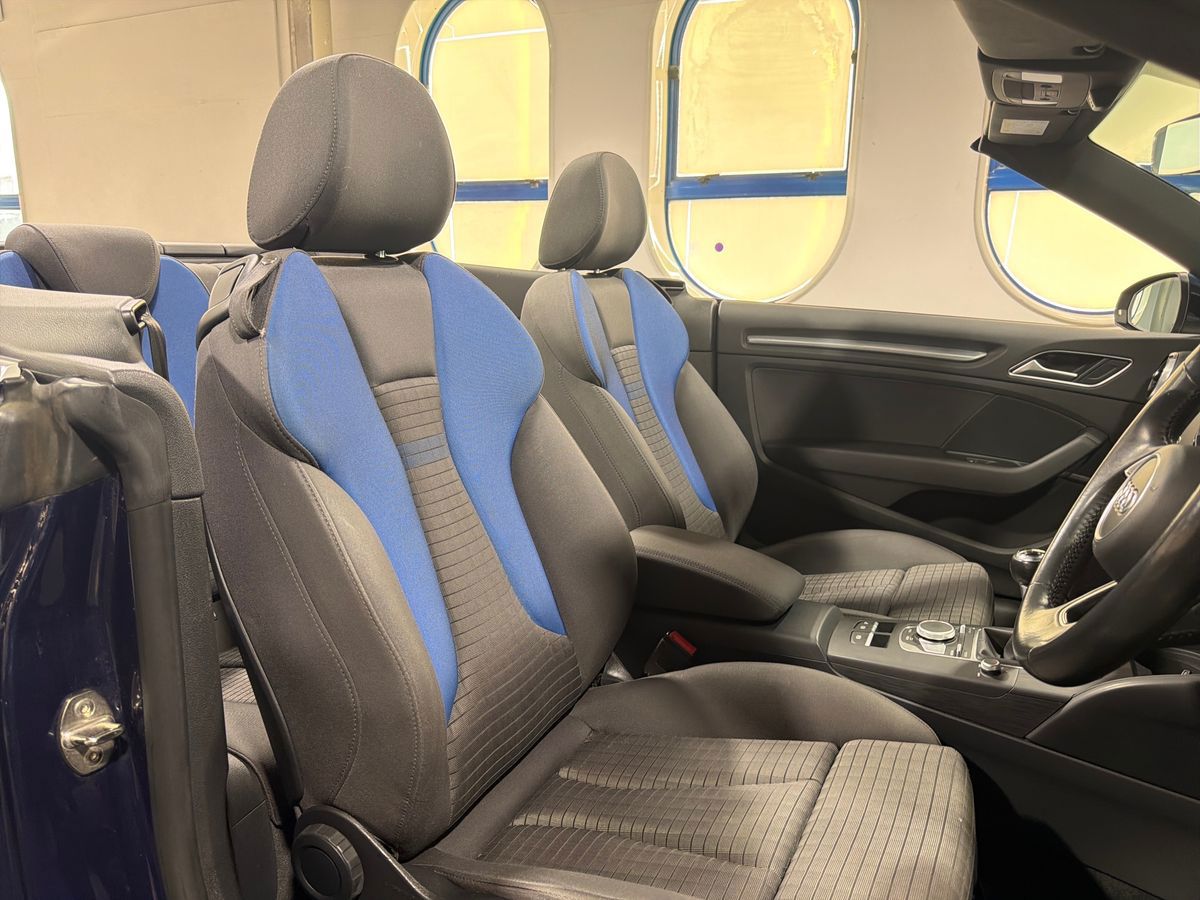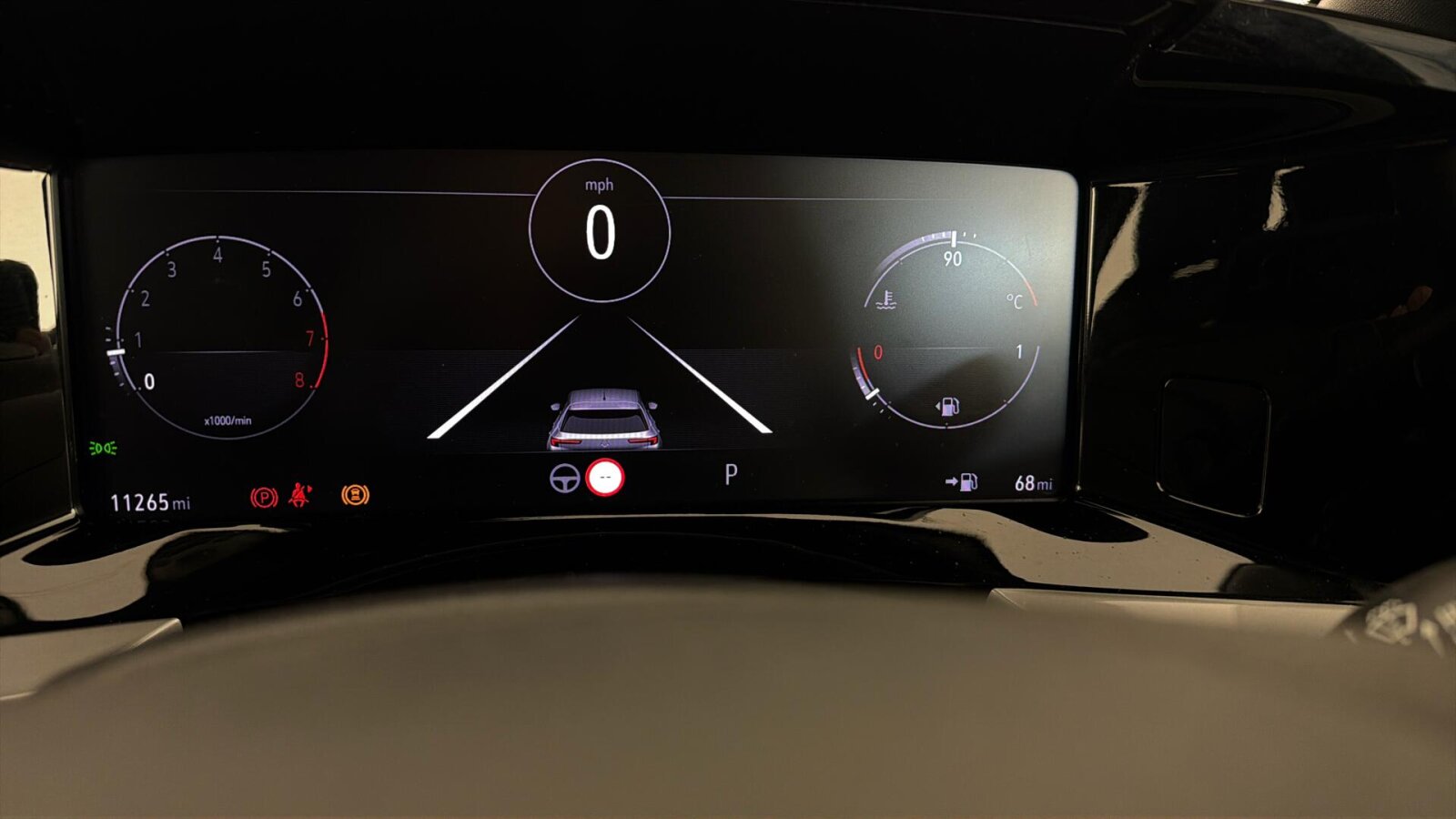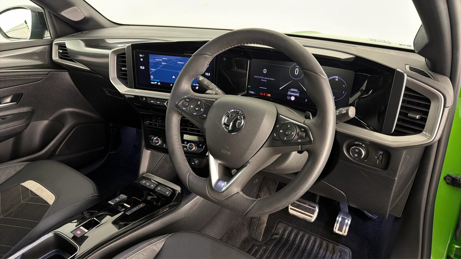 "Tailored instrument panel with contrast stitching"