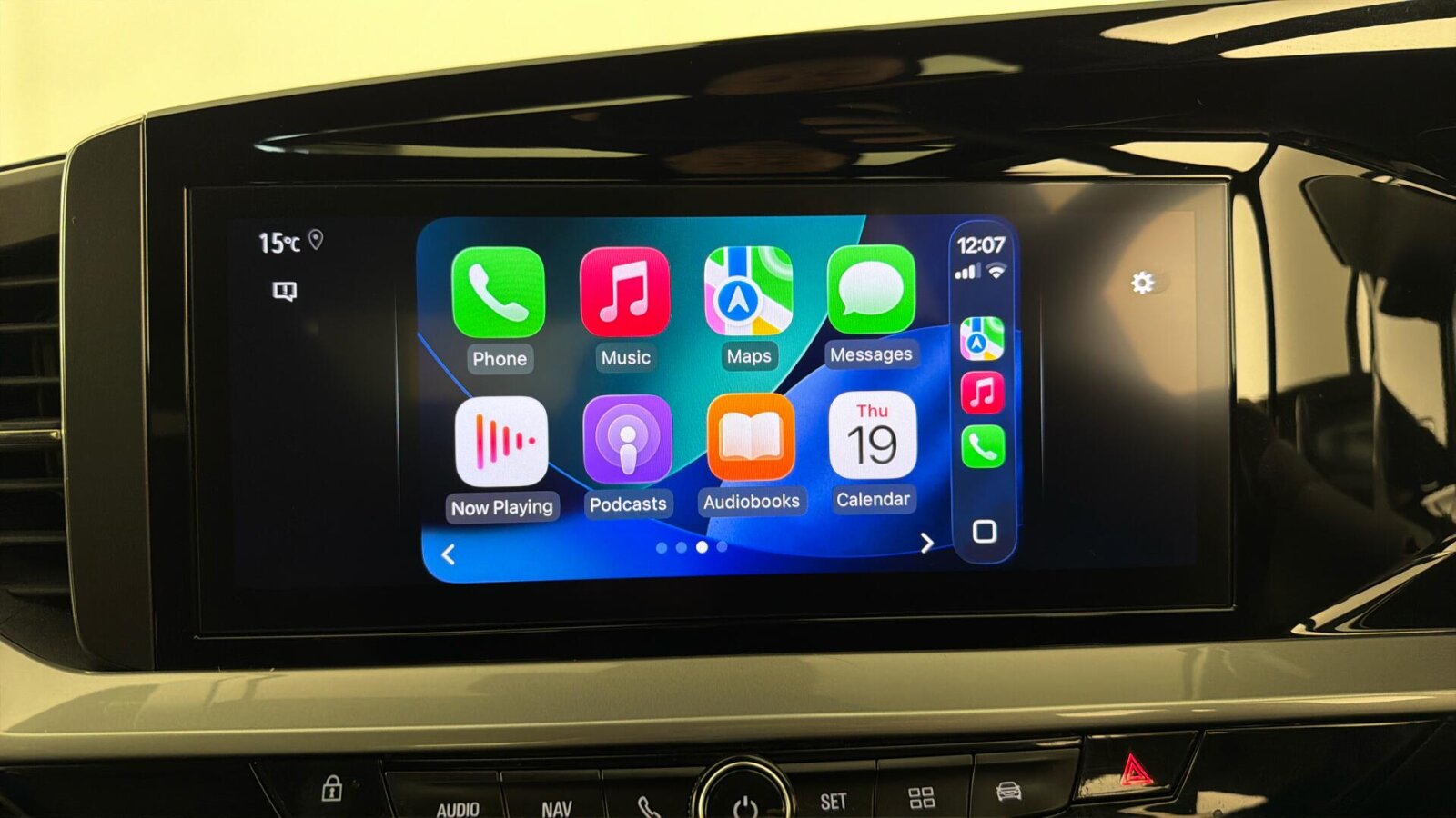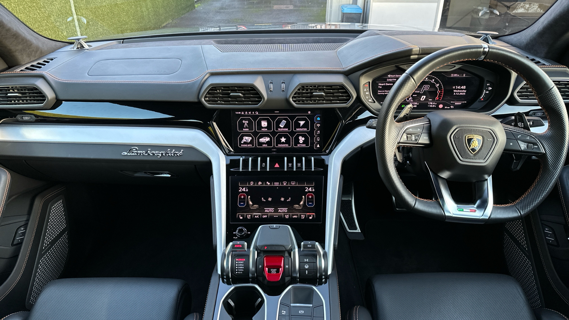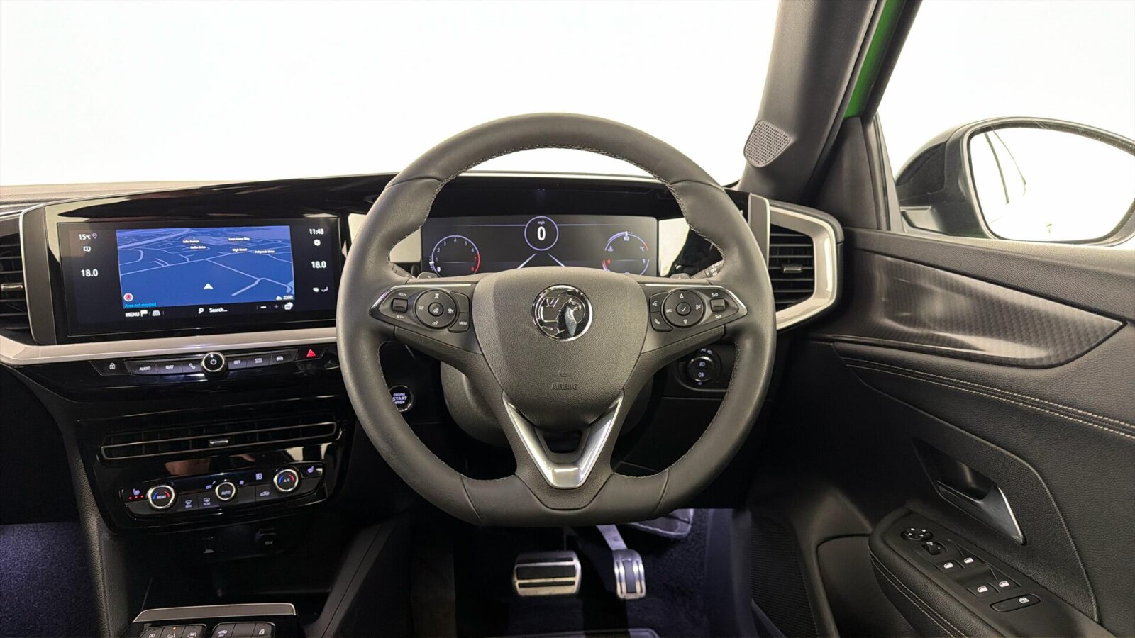 "3 spoke tailored steering wheel with deco and infotainment/vehicle controls",