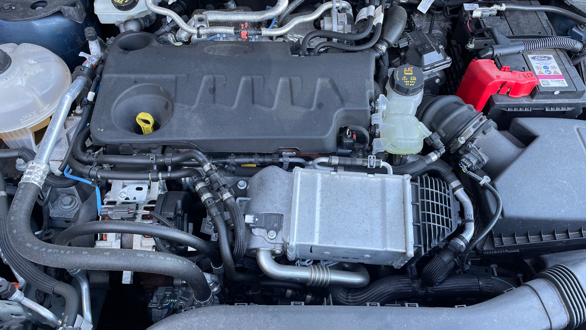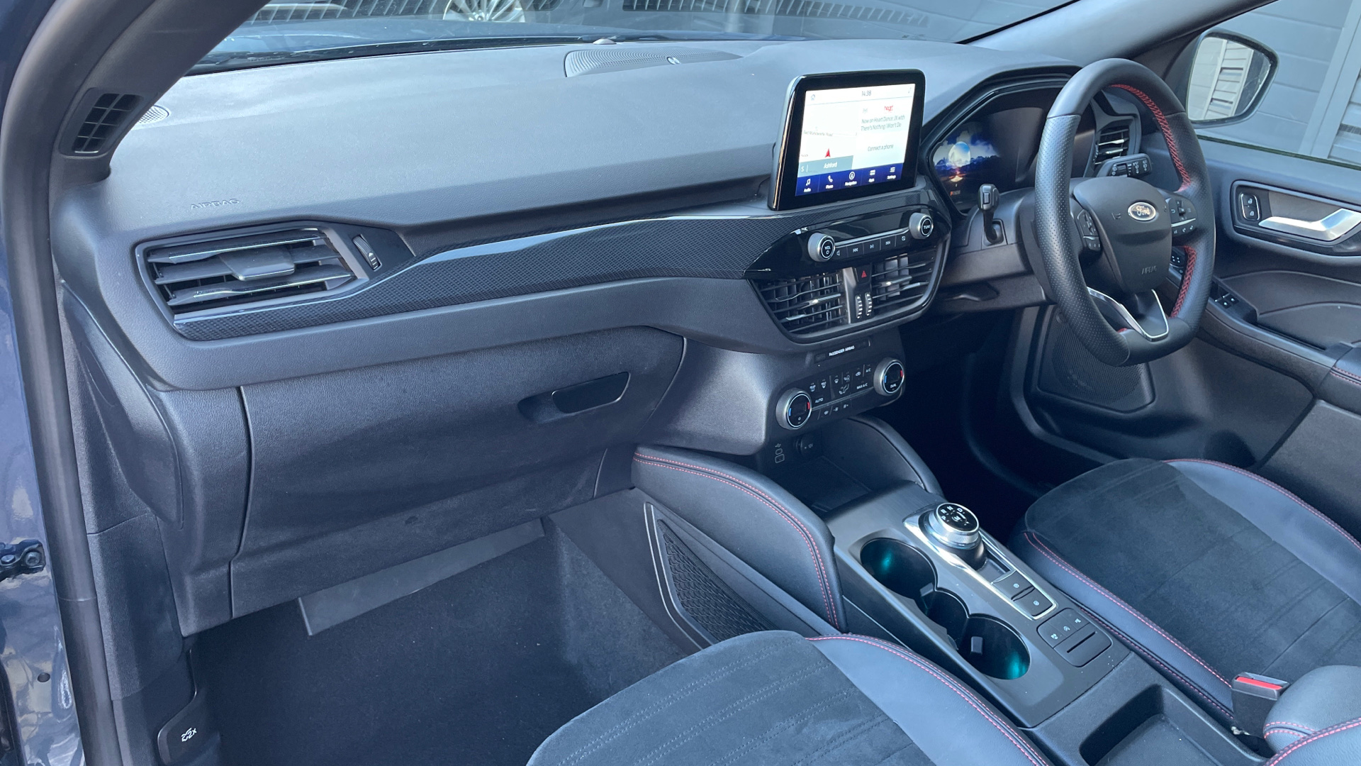 "features": "Driver impairment monitor, Ford easy fuel, Ford SYNC 3 with 8\" colour touchscreen, App Link, andriod auto/apple carPlay and navigation with Ford pass connect, Front and rear parking sensors, Intelligent speed assist, Lane keeping aid with lane departure warning, Mobile phone wireless charging pad, Power assist steering, Selectable drive modes, Auto dimming rear view mirror, Auto headlamps with high and low beam, Auto wipers, Black roof rails, Front LED fog lights with cornering function, Full LED headlamps, Large rear spoiler, LED daytime running lights, LED rear lights, Power folding heated door mirrors with puddle lights, Power front/rear windows with global close, Privacy glass, Quickclear heated windscreen, ST Line body styling kit with unique front and rear fascia and bumper, rear painted diffuser, front painted skid plates, dark mesh upper grille, ST Line front scuff plates, Twin exhausts, 2nd row sliding seats, 8 way manual passenger seat including lumbar support and height adjust, Alloy pedals, Ambient lighting, Centre console with electronic parking brake, Dark headlining and pillars, Dual electronic automatic temperature control, Flat bottomed leather steering wheel in sensico with red stitching, Front and rear head restraints, Rear charging point, Sensico partial premium leather upholstery, Sports seats, ST Line front and rear floor mats, Steering wheel mounted paddle shift, B&O with large instrument cluster pack - Kuga, 3x3 point rear seatbelts, Airbags - front driver/passenger, front and rear curtain, Drivers knee airbag, Electronic stability control (ESC) and ABS, Ford MyKey Gen 2 safety system, Post collision braking, Powered child proof rear door locks, Pre collision assist with autonomous emergency braking, Red brake calipers, Tyre pressure monitoring system, Engine immobiliser, Keyless entry, Keyless start with 'Ford Power' starter button, Locking wheel nuts, Remote powered central double locking doors, Thatcham category 1 alarm, ",