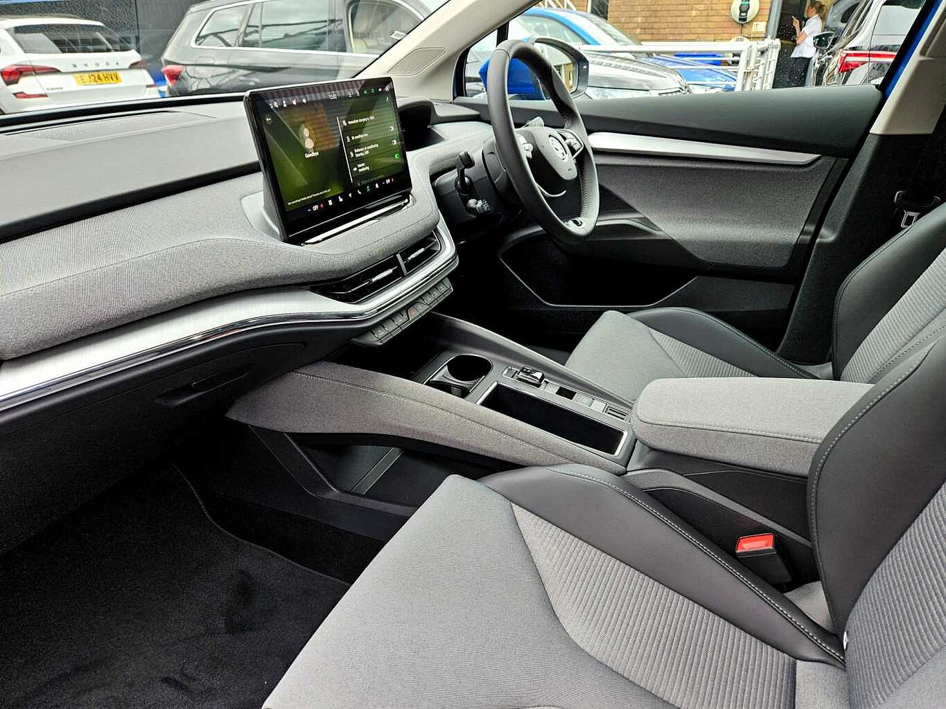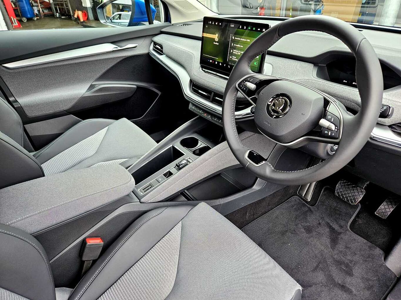 "features": "13\" touchscreen display, Bluetooth system, Cruise control, Digital cockpit, Driver alert system, E-call, Electronic engine sound, Exterior temperature indicator, Front and rear parking sensors, Gesture control, Lane assist, Power assist steering, Rear view camera, Satellite navigation system, Skoda Connect iV remote services with charging, air conditioning and smart schedules, Speed assist, Speed limiter, Tailgate unlocking from outside, Traffic sign recognition, Voice control system, Washer fluid level indicator, Wi-Fi hotspot, Wireless smartlink, 145 kW DC charging, 6m mode 3 cable (32A), 8 Speakers, DAB Digital radio, USB-C ports (charging + data), Auto dimming rear view mirror, Black roof rails, Body colour bumpers, Body colour door mirrors and handles, Door moulding light in multiple colours, Electric adjustable heated folding door mirrors with boarding spots and welcome logo, Electric front and rear windows, Heat insulating darkened glass in side and rear windows, Heat insulating glass in windshield, Heated rear window, LED headlights with LED daytime running lights and headlight range control, LED rear lights, LED third brake light, Light assistant (coming home/tunnel light), Radiator grille in matt black with chrome surround, Rain and light sensors, Rear boot spoiler, Rear side wing doors, Rear window wiper with washer system and intermittent control, Rear wiper, Safety reflectors on front and rear doors, Variable front intermittent wipers, 12V socket in boot, 1x umbrella, 2-spoke black leather multifunction steering wheel with black stitching, 3 rear headrests, 3 seat bench in 2nd row, 4 foldable roof handles with rear coat hooks, 60:40 foldable rear seat with sliding adjustment and backrest angle adjustment, Boot lighting, Coat hooks on B pillar, Dual zone climate control, Front and rear footwell lighting, Front and rear height adjustable headrests, Front courtesy lights, Front headrests, Front reading lights, Height adjustable drivers seat, Height adjustable front passenger seat, Interior door handle lighting in front and rear, Isofix child seat fittings in outer rear seats with top tether, Isofix child seat preparation for front passenger seat, Laminated soft-touch plastic knee rest, LED ambient lighting, Manual lumbar support for front seats, Manually adjustable steering column, Pollen filter, Rear reading lights, Single front passenger seat, Sliding boot cover, Sunvisors with illuminated vanity mirrors, Loft design pack - Enyaq, 3 point height adj front seatbelts + pretensioners, Auto door release and activation of warning lights in the event of an accident, Central interaction airbag, Driver and front passenger airbags, ESC (incl. ABS+MSR+ASR+EDS+HBA+DSR+RBS+MKB), Front and rear three point safety belt on all seats, Front assist with assisted automatic braking, Front disc brakes, Front passenger airbag deactivation switch, Front side airbags with curtain airbags, Height adjustable seatbelts, Rear drum brakes, Single tone horn, Tyre pressure monitor, Visual and acoustic seat belt reminder, Warning lights in front doors, Anti theft alarm system with interior monitoring, backup horn and towing protection, Central locking system with SAFE system, Keyless start/stop, Anti-theft wheel bolts protection, Tyre repair kit with compressor, ",
