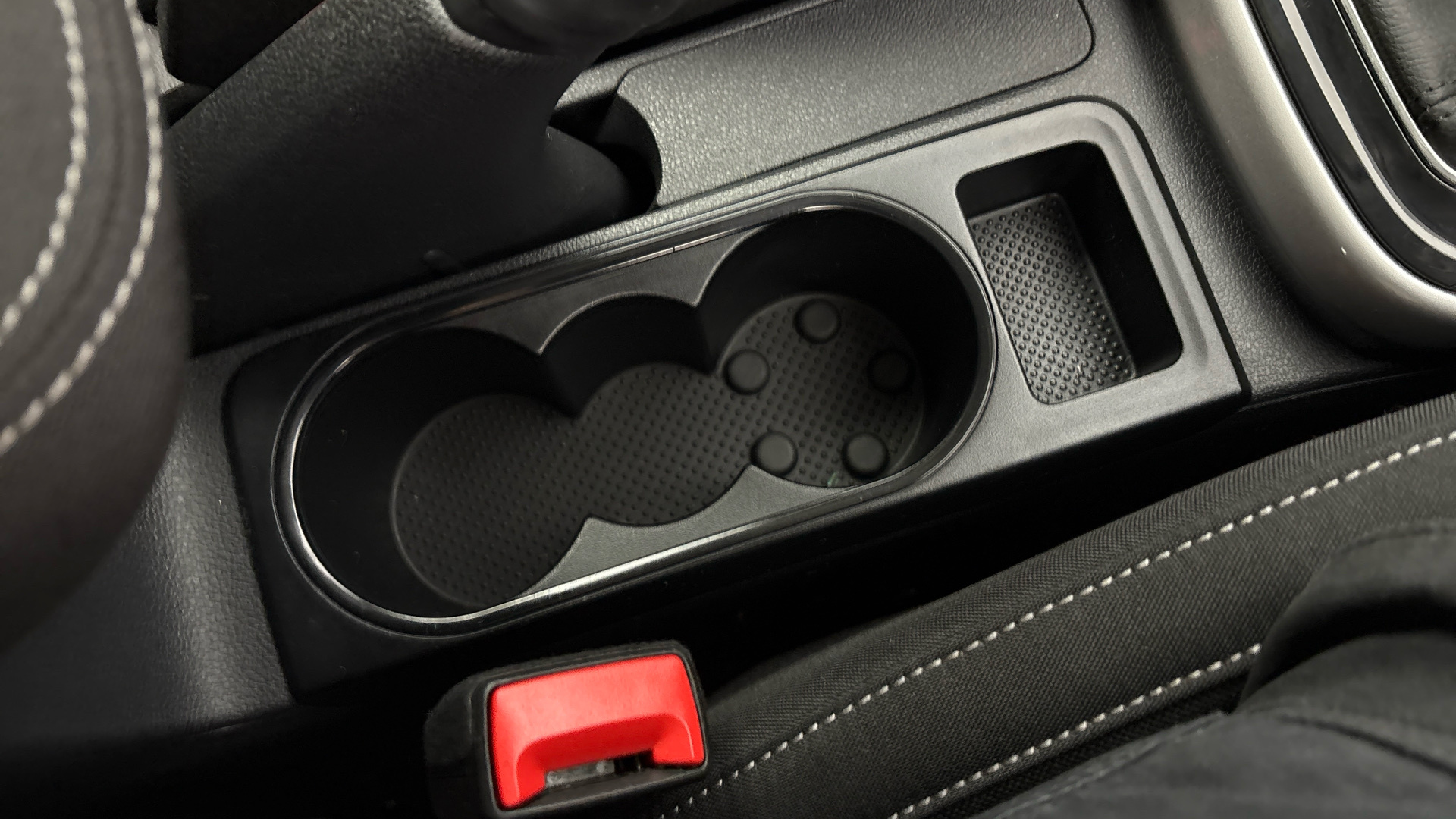 "Cup holder in front with easy open mat",
