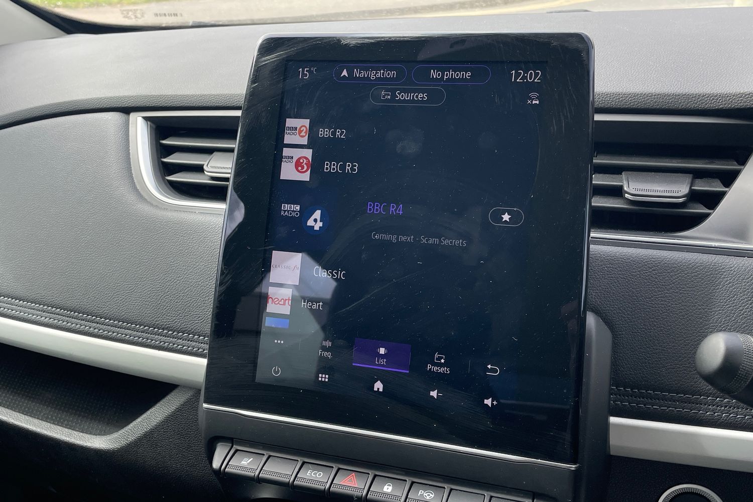 "Front tray in front of centre console",