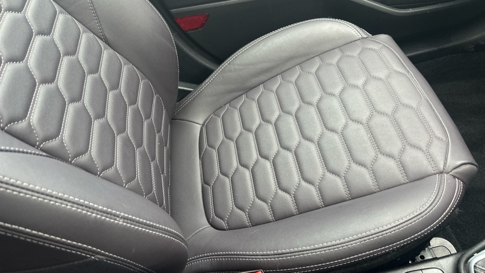 "Cloth upholstery with grey stitching",