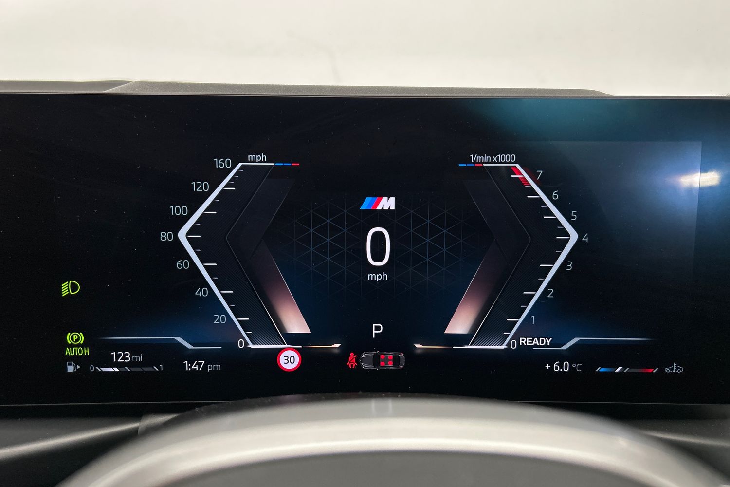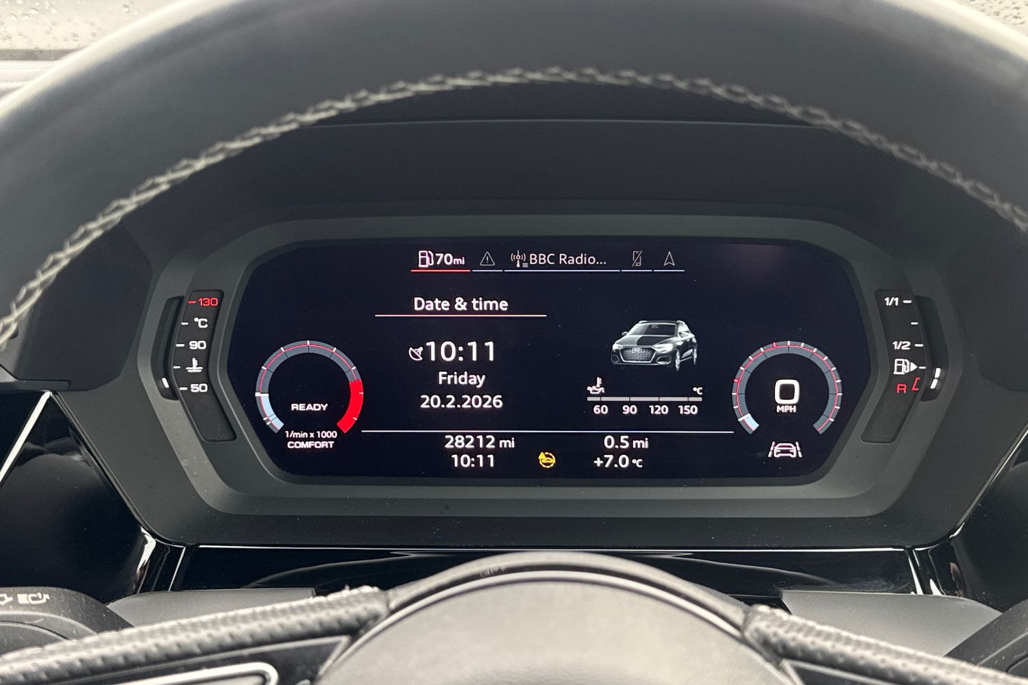 "Speedo and rev counter, electronic odometer, trip, service interval display and exterior temperature gauge",