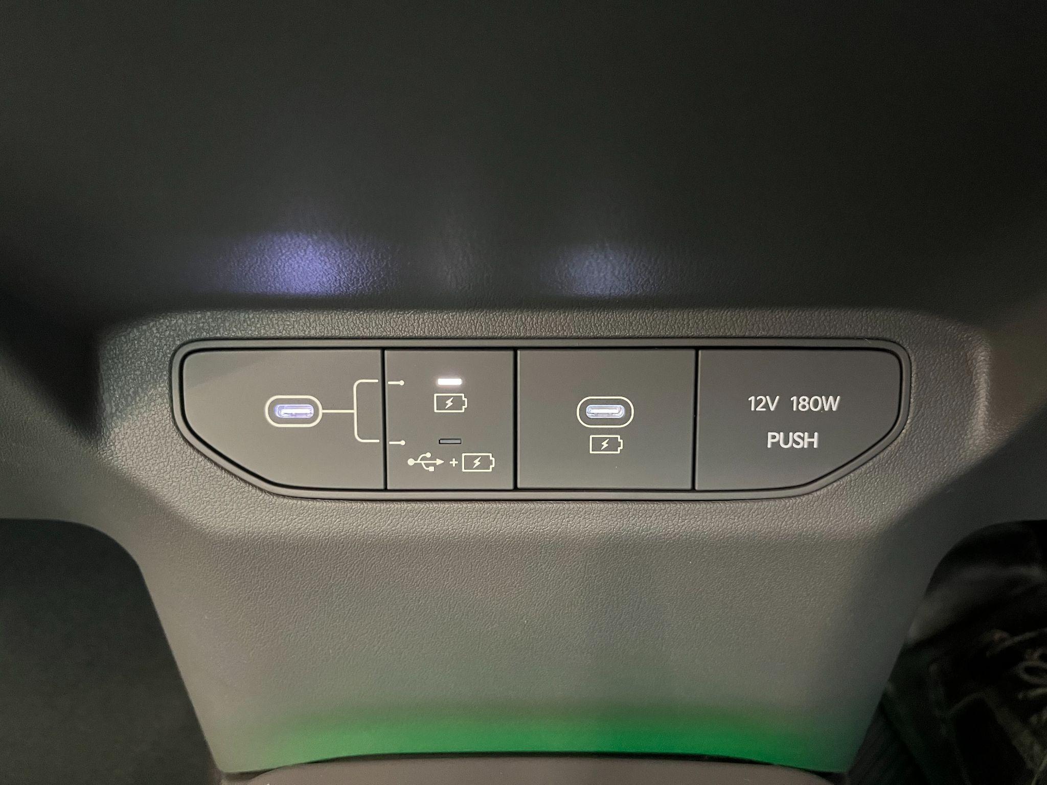 "2 USB-C ports in the front, 2 USB-C charging sockets on the center console in the rear",
