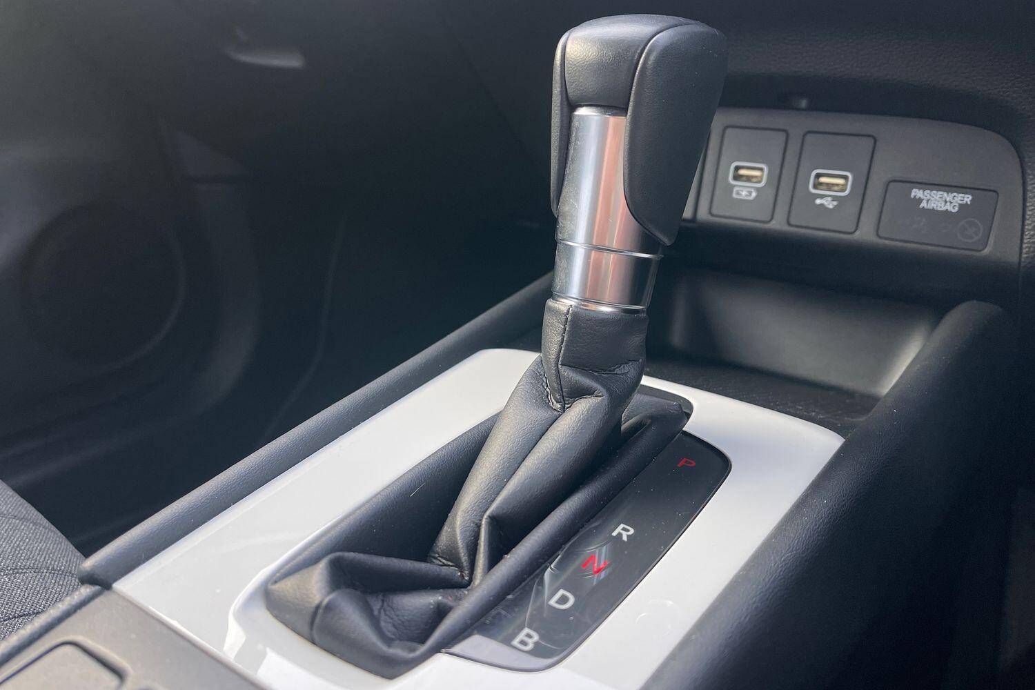 "Leather gear knob with aluminium trim",