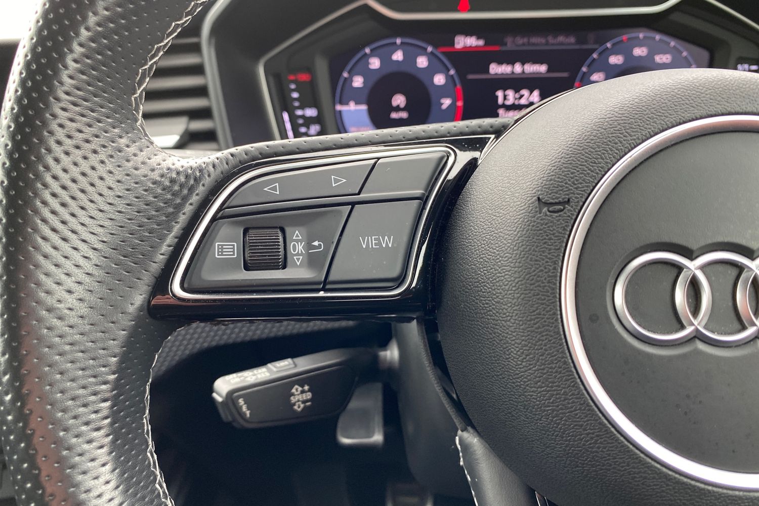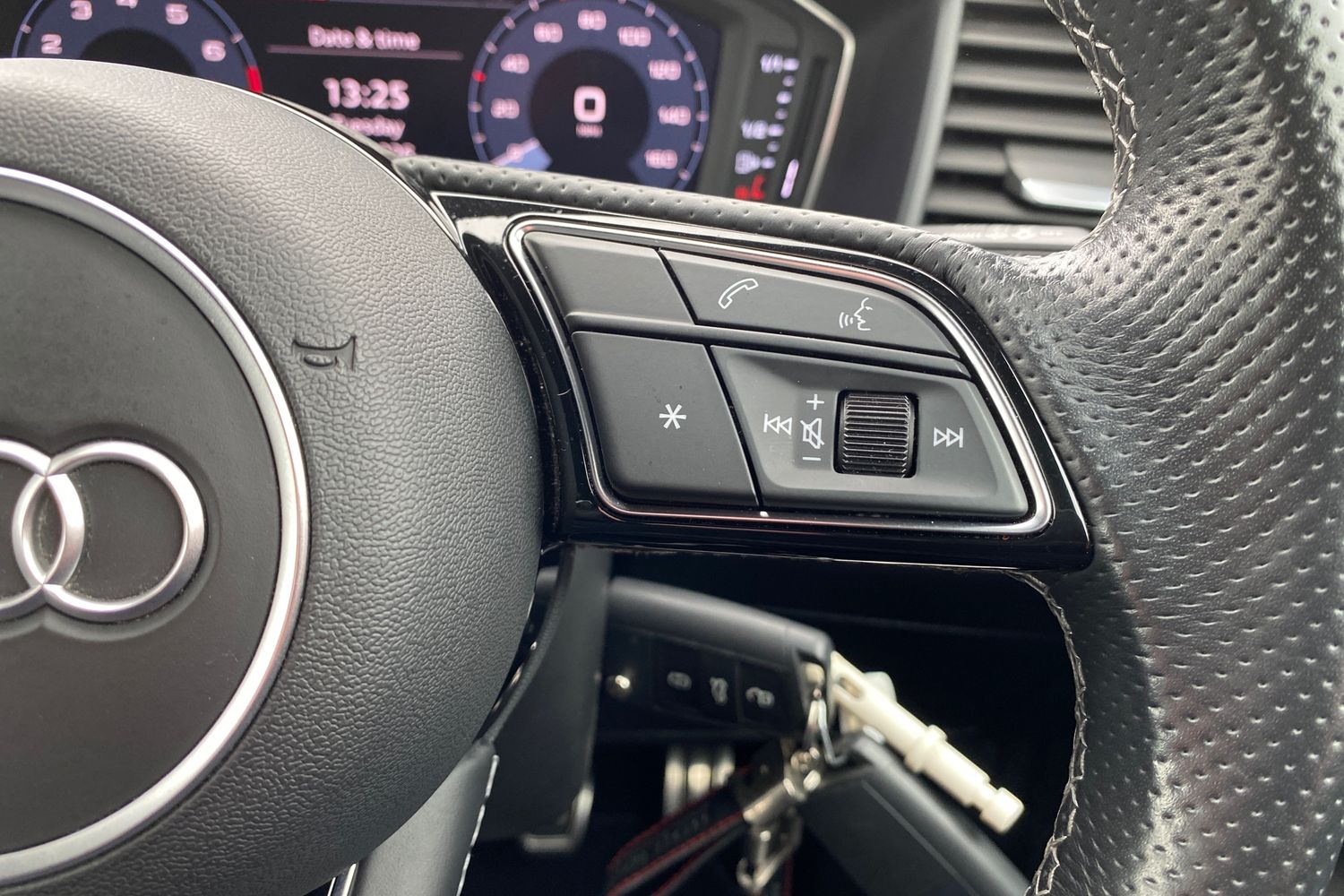 "Steering wheel mounted audio controls"