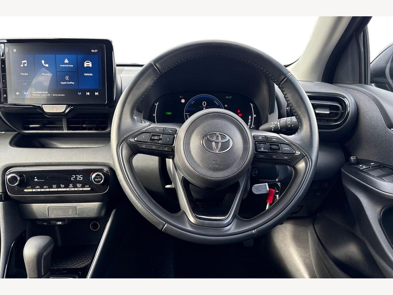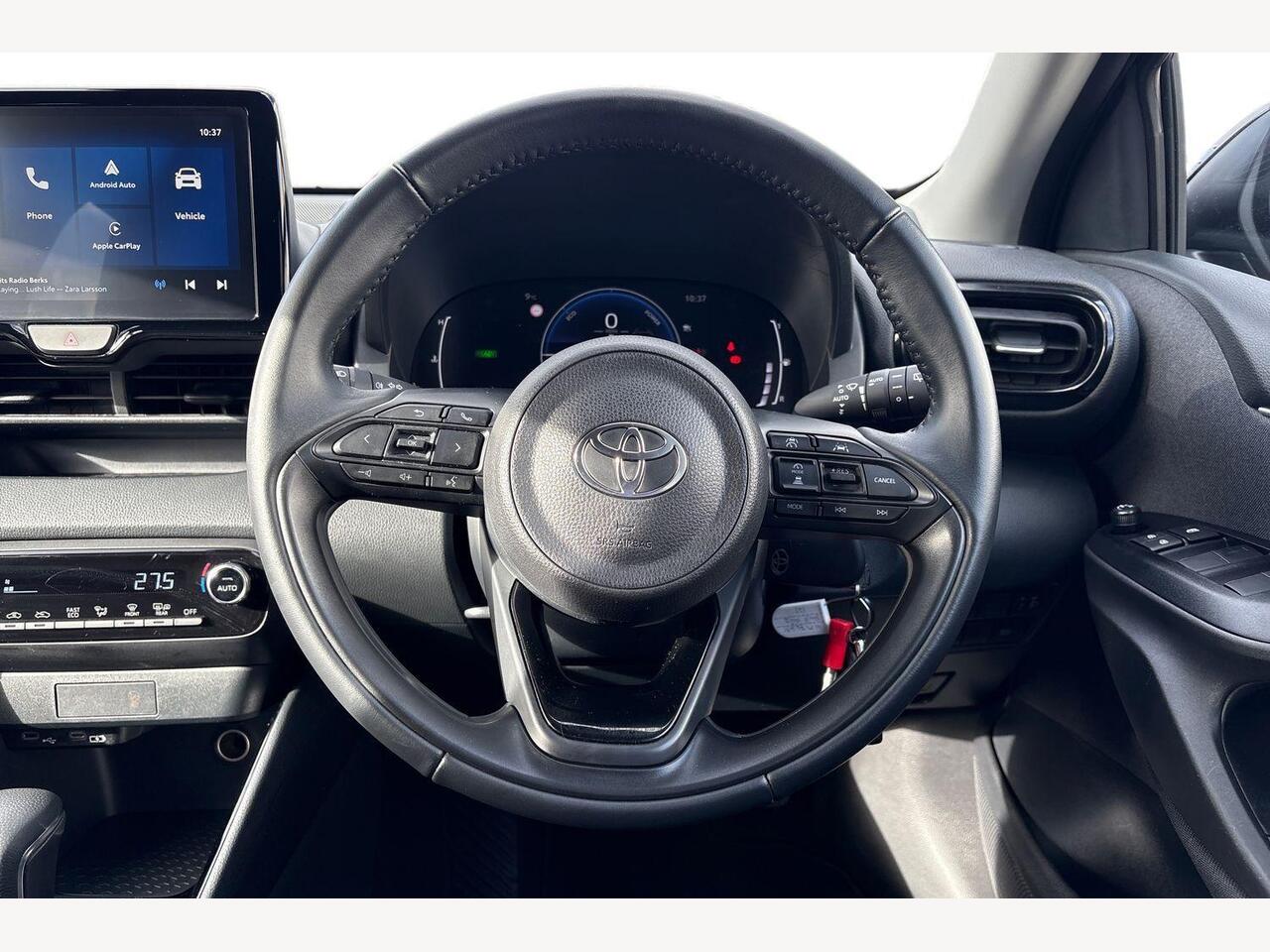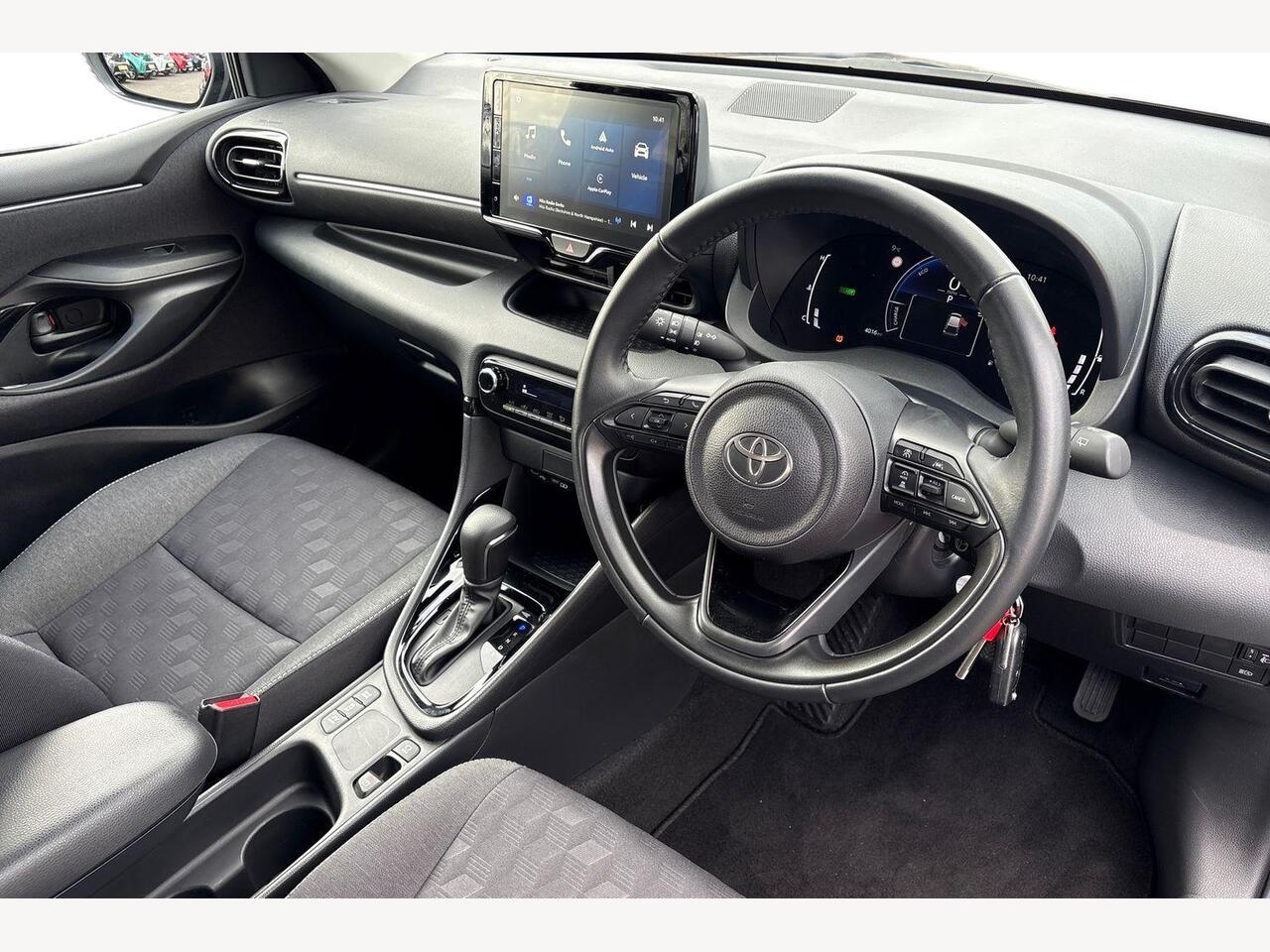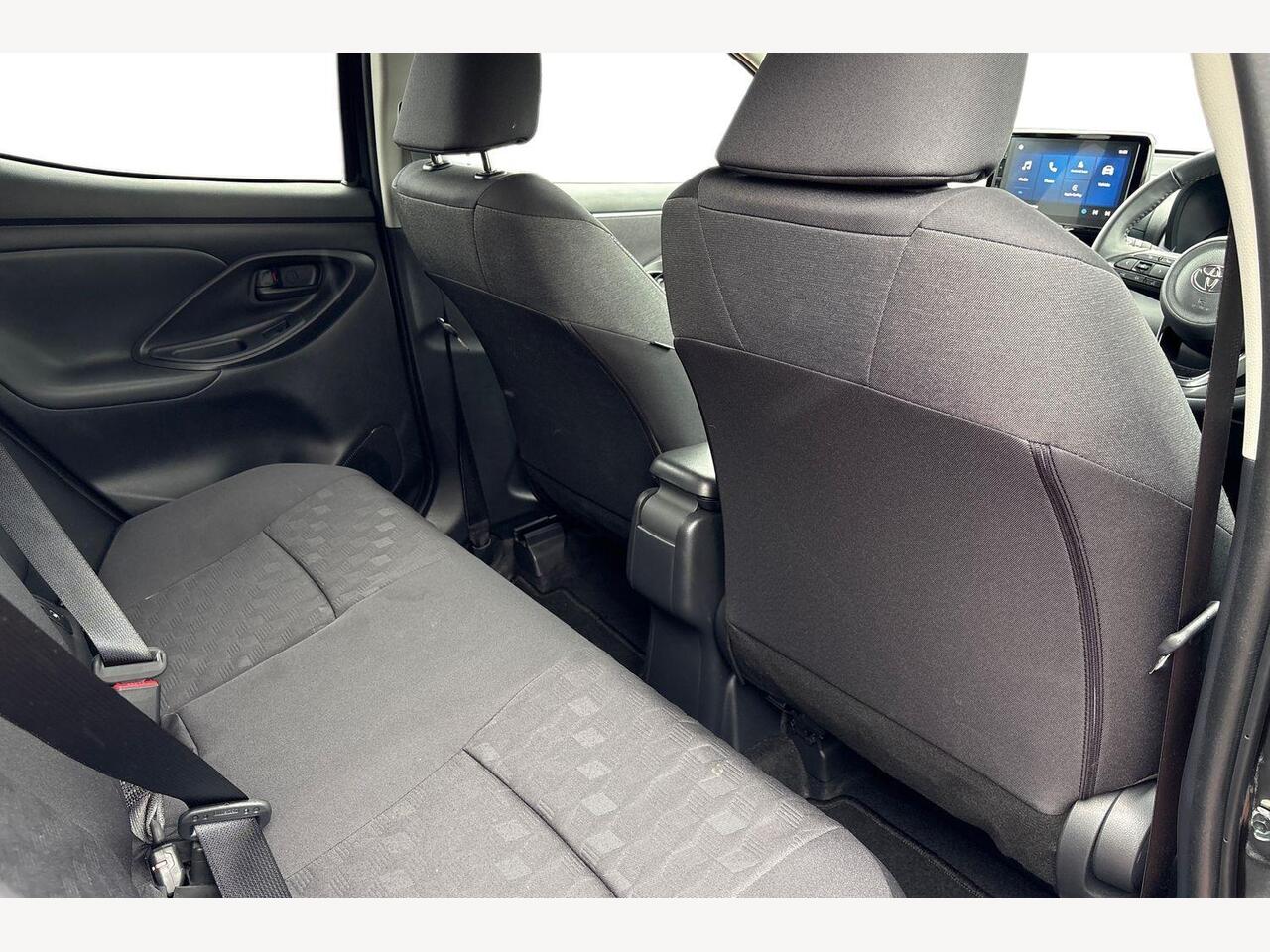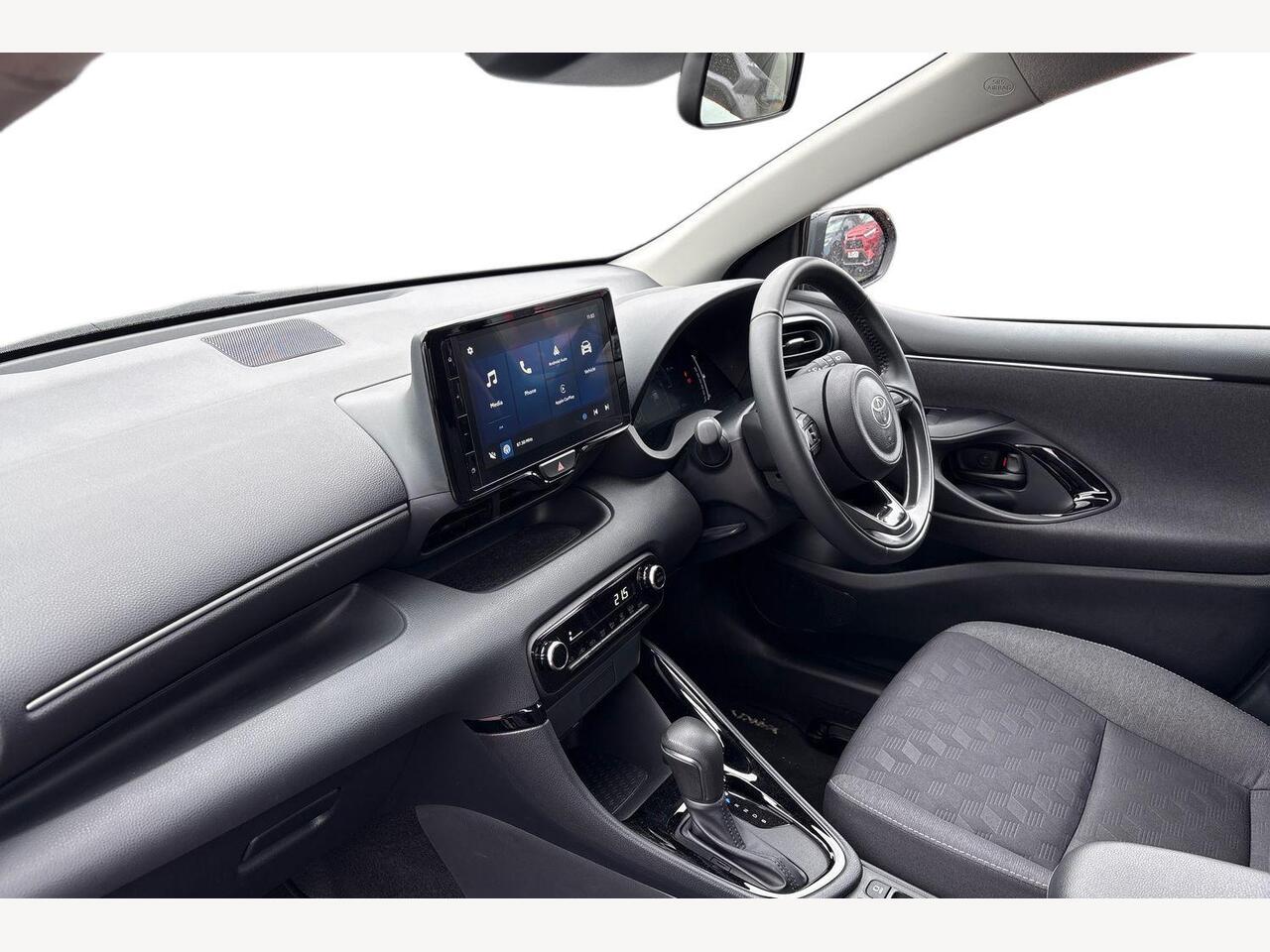 "features": "12.3\" Digital Combimeter, Adaptive cruise control, Adjustable speed limit with speed warning, Blind spot monitoring, Bluetooth connectivity, Colour binocular inspired displays with digital speedometer, E-call, Electric power steering, Hybrid energy display, Multi information display switches on steering wheel, Reversing camera, Smartphone integration with Apple CarPlay and Android auto, Tailgate, Voice recognition, Wireless charger, Vehicle Stability Control (VSC), 10.5\" Toyota smart connect multimedia with wireless smartphone integration incl apple car play and cloud Navigation, 6 speakers, Toyota Touch 3 system with DAB radio, USB connection, Acoustic windscreen glass, Auto windscreen wipers, Automatic headlights, Body coloured door mirrors, Electric adjustable heated door mirrors, Follow me home headlights, Front auto power windows with anti jam protection, Full LED rear lights, LED daytime running lights, LED front fog lights, LED front light guide, LED Headlights, LED High mounted stop lamp, LED Indicators, LED rear light guide, Manual headlight levelling, Painted chequered front grille, Rain sensor, Rear auto power windows with anti jam protection, Rear privacy glass, Rear side wing doors, Rear spoiler, Rear wiper, Satin lower front grille, Shark fin antenna, Turning signal integrated indicators in door mirrors, Variable front intermittent wipers, 3 adjustable rear headrests, 3 seat bench in 2nd row, 3 spoke leather steering wheel, 60/40 split folding rear seat, Active headrests, Adjustable boot height, Coat hooks in rear grab handles, Cup holders (2 front & door), Data Communication Module (DCM) connected services, Dual zone automatic air conditioning, Front armrest, Front sport seats, Glovebox, Grey roof lining, Height adjustable driver's seat, Height adjustable passenger seat, Isofix seat fixing, Leather gearshift, Map pockets on the backs of the front seats, Nanoe X, Partial leather upholstery, Pollen filter, Shopping bag hooks, Single front passenger seat, Tilt/telescopic steering column, Safety pack - Yaris, 3 point seatbelts on all rear seats, ABS+EBD+Brake assist, Electronic parking brake, Emergency brake light system (EBS), Front passenger airbag on/off switch, Front seatbelt reminder, Hill start assist control (HAC), Rear child proof door locks, Rear seat belt reminder, Supplemental Restraint System (SRS) 8 airbags: Driver & passenger's airbags, dual side curtain airbags, side impact airbags, front centre airbag, Toyota Safety Sense 3 with over the air updates, Tyre pressure warning system, 2x Master key, Alarm/immobiliser, Keyless smart entry with push button start, Remote AC via MyT, Remote locking via MyT, Remote powered central double locking doors, Piano black interior trim, Satin chrome interior styling, Soft touch instrument panel, Space saver spare wheel, ",