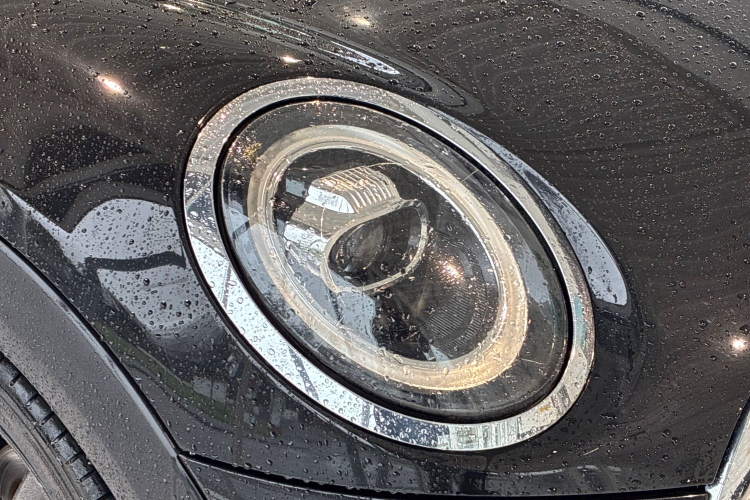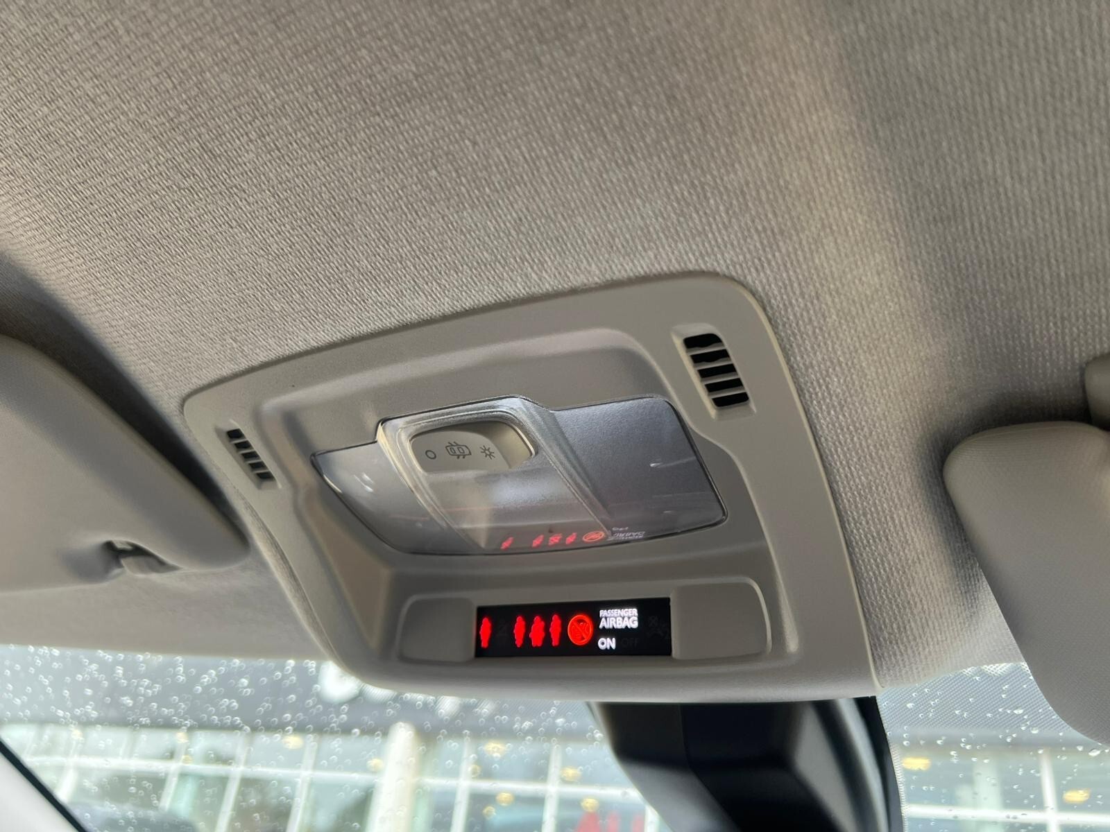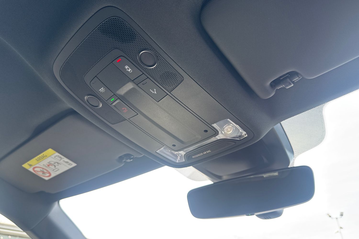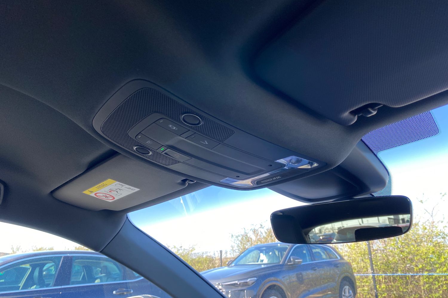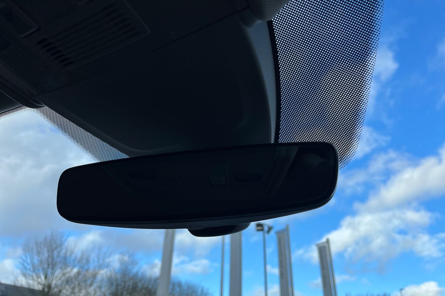 "Frameless rear view mirror with rain and light sensor",
