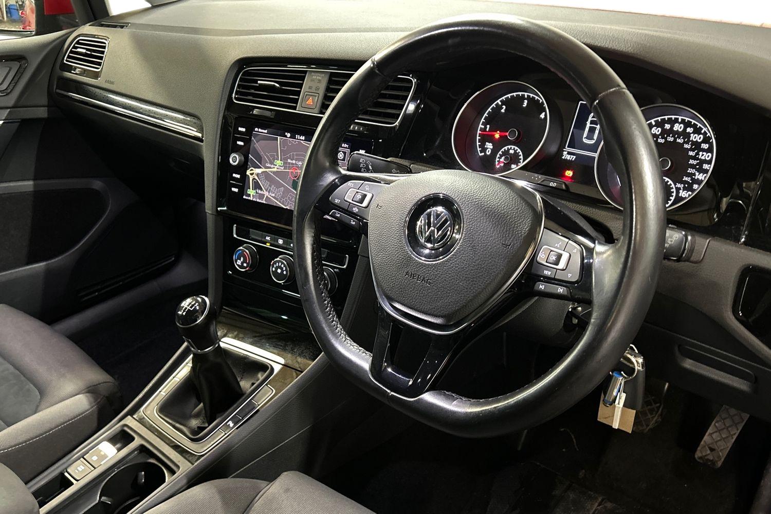 "features": "'Lights On' Reminder warning buzzer, 8\" colour touch screen, ACC - Adaptive cruise control with front assist, forward collision warning, distance monitoring, city emergency brake and speed limiter, App-Connect, Bluetooth telephone and audio connection for compatible devices, Brake pad wear indicator warning light, Driver alert system, Driver profile selection, Driving Mode Selection with four preset modes - Eco, normal, sport or individual modes, Front assist, radar sensor controlled distance monitor, city emergency braking + predictive pedestrian protection, Front assistant collision mitigation, Instrument cluster in white, Misfuelling protection device, Multifunction computer with visual gear change recommendation for fuel consumption, Power assisted speed sensitive electro-mechanical steering, Speedo, rev counter, electronic odometer, trip, service interval display, exterior temperature and fuel gauge, Stop/start system, Ultrasonic front and rear optical and audible parking sensors, Warning buzzer and light for front seatbelts unfastened, Battery regeneration during braking, Diesel particulate filter, Lowered sports suspension, XDS electronic differential lock, 8 Speakers, CD/MP3/WMA, USB and SD card reader, aux-in, Composition media system, DAB Digital radio receiver, Multi device interface (MDI) with USB connection, SMS Functionality, Automatic coming/leaving home lighting function, Automatic dimming rear view mirror/rain sensor, Black front air intake and radiator grille with chrome insert, Black rear diffuser, Body colour bumpers, Body colour door handles, Body colour door mirrors with integrated indicators, Chrome grille surround, Chrome trimmed front air intake surrounds, Electric front windows, Electric rear windows, Electrically adjustable and heated door mirrors, Glavanised body, Heated rear windscreen, High level 3rd brake light incorporating LED Technology, LED front fog lights with static cornering light function, Range adjustable headlights via infotainment system with LED daytime running lights, Rear number plate lights incorporating LED technology, Rear tinted glass 65% light absorbing from B pillar backwards, Rear window aerial, Rear window wash/wipe with intermittent wipe, Reflectors in all doors, Remote electrically foldable door mirrors, door mirror puddle lights and reverse activated kerb-view adjustment on passengers door mirror, Tailgate with integrated rear roof spoiler, Windscreen wipers/ intermittent wipe + 4 position delay, 12V socket in luggage compartment, 3 rear headrests, 4 load lashing points in luggage compartment, 60/40 split folding rear seat backrest, Bag hook in luggage compartment x 2, Cooled glovebox, Dust/pollen filter, Front + rear carpet mats, Front centre armrest with storage compartment and two rear air vents, Front seat back storage pockets, Grab handles front x 2, rear x 2 with integrated coat hooks, Height and reach adjustable steering wheel, Illuminated vanity mirrors, Instrument lighting white adjustable panel illumination, Interior light delay, Isofix preparation for 2 rear child seats, LED front and rear reading lights, Load through provision with rear centre armrest and cupholders x2, Luggage compartment light, Multifunction leather steering wheel with leather trimmed gear knob, Overhead storage box, Pearl grey headlining, Storage box in luggage compartment, Storage compartment in roof console with cover, Storage compartments in front doors, Storage compartments in rear doors, Stowable luggage compartment cover, Sun visors, Three spoke multi-function leather trimmed steering wheel and gearknob, Variable boot floor, height adjustable and removable, Ambient lighting pack - Golf, Mirror pack - Golf, 3 rear three point seatbelts, Airbags - Driver's and front passenger's, curtain airbag, Driver's knee, front side impact and passenger's airbag deactivation switch, Anti-lock Braking System (ABS) with Hydraulic Brake Assist (HBA), Automatic post collision braking system, Child locks on rear doors, Driver/Passenger optimised head restraints, Electronic parking brake with auto hold, Electronic stability control (ESC) including Electronic differential lock (EDL) and ASR (Traction control) with deactivation via infotainment system, Pre crash preventive occupant protection, Three point height adjustable front seatbelts with tensioners, Tyre pressure loss indicator, Alarm with interior protection, Electronic engine immobiliser, Remote central locking with 2 remote folding keys, Chrome plated air vent surround, Chrome plated electric mirror adjustment light switch surround, Piano black decorative inserts in centre console, Tumbler decorative inserts, Steel space saver spare wheel, ",