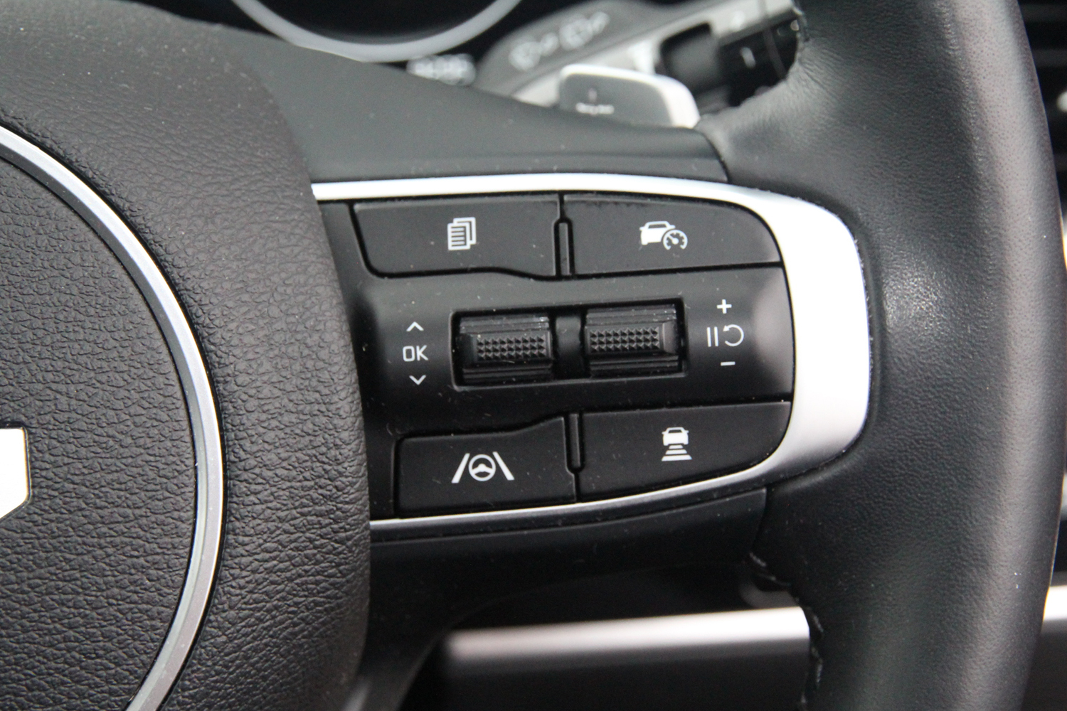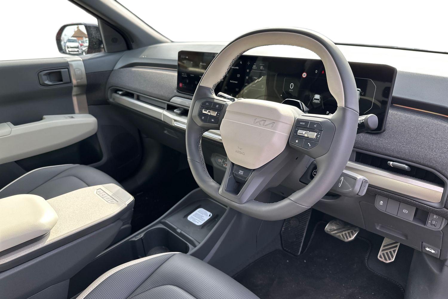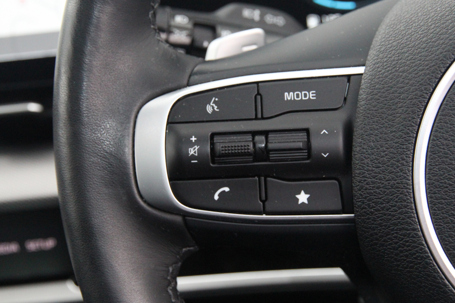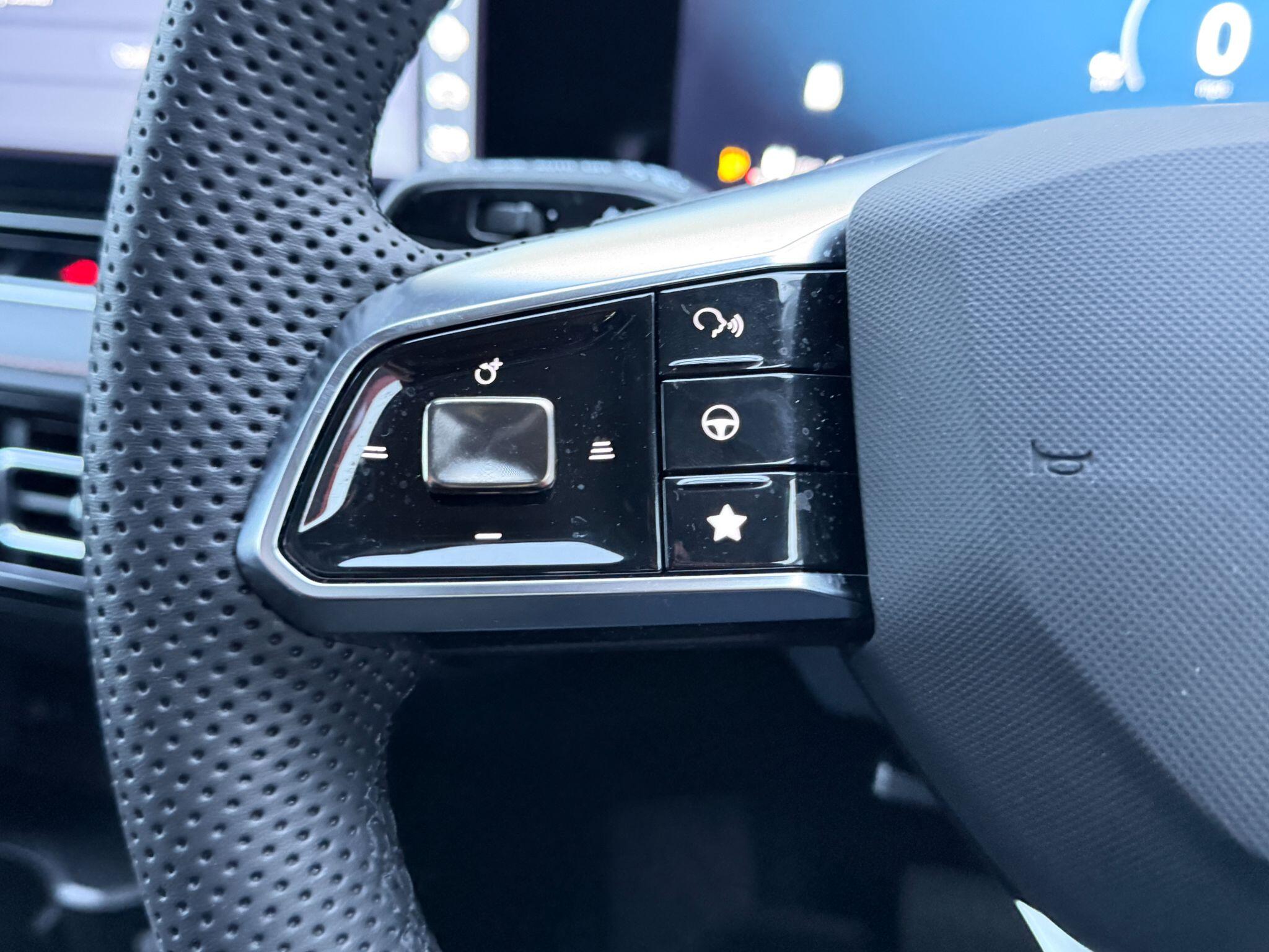 "Premium faux leather steering wheel",