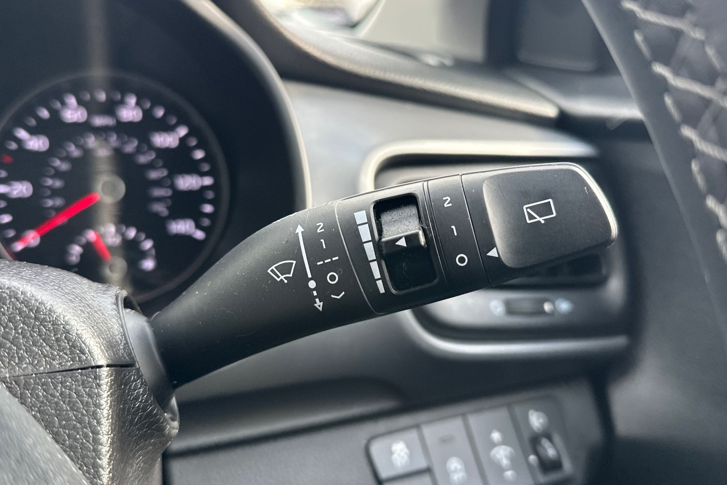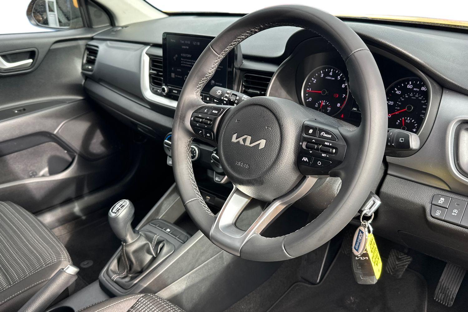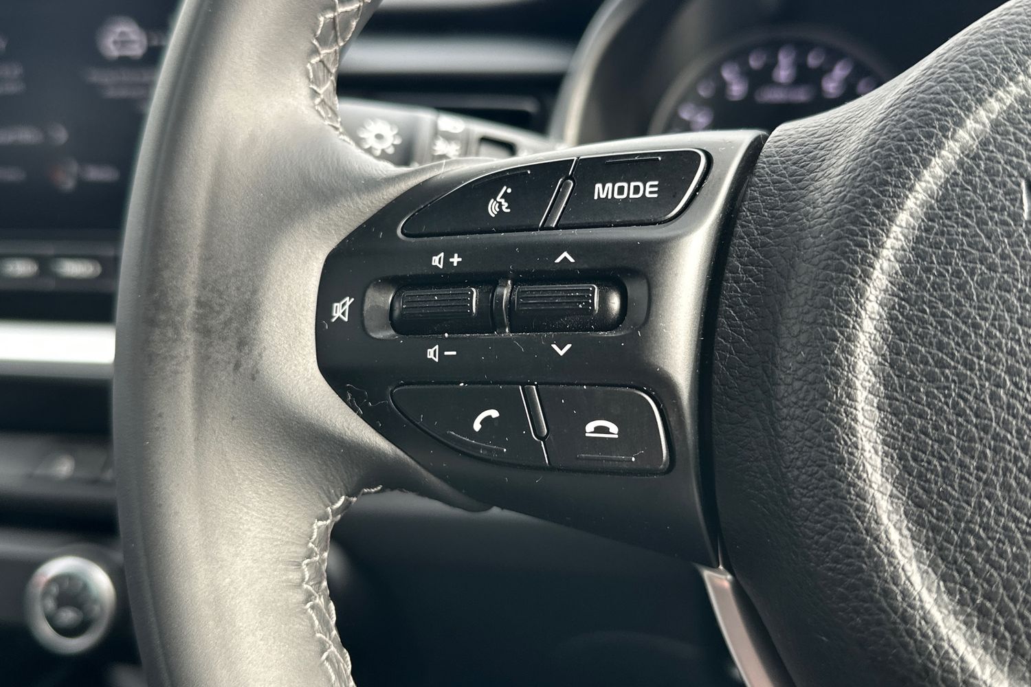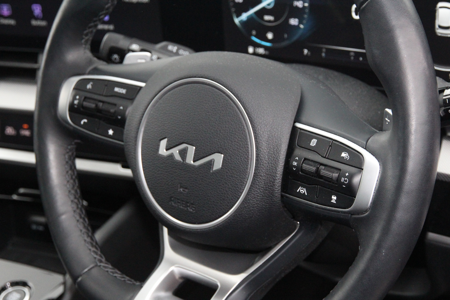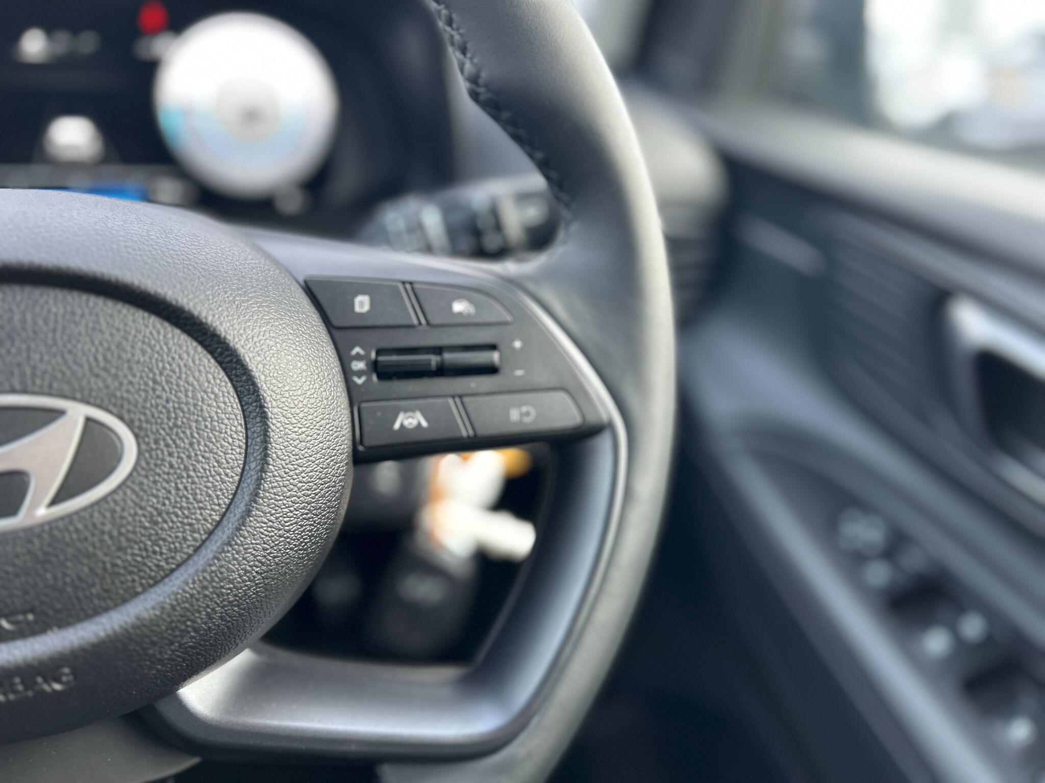 "Premium faux leather steering wheel",