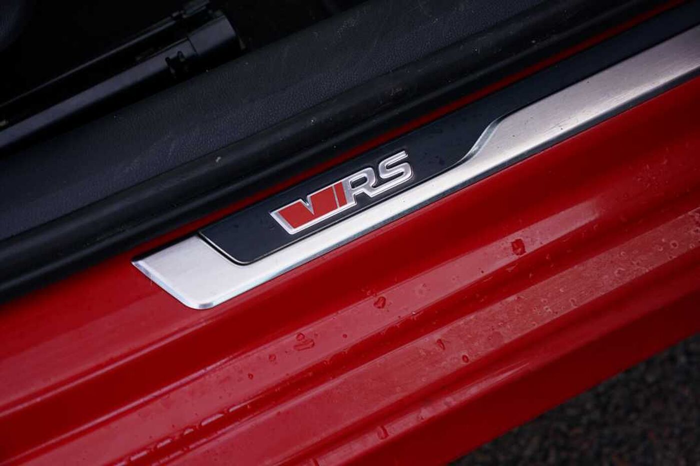 "Front door sill finishers in black plastic with M designation in metallic look",
