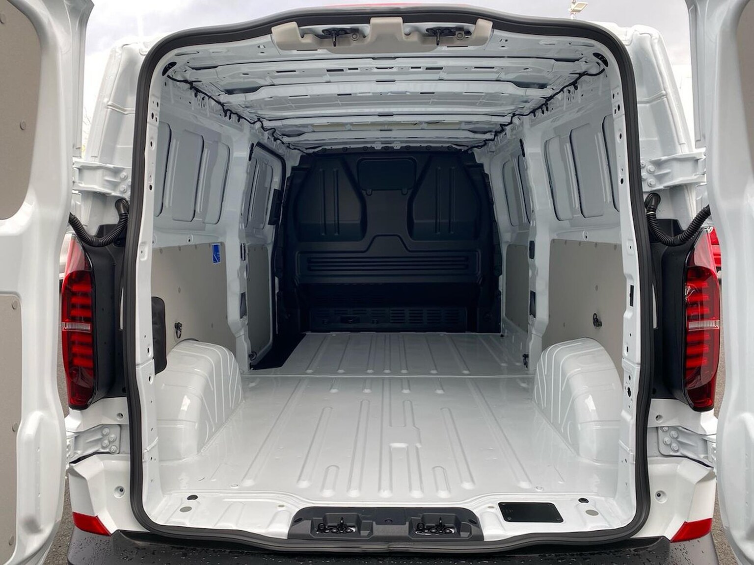"Luggage compartment for bag hooks on left and right, foldable luggage compartment liner and four lashing eyelets",