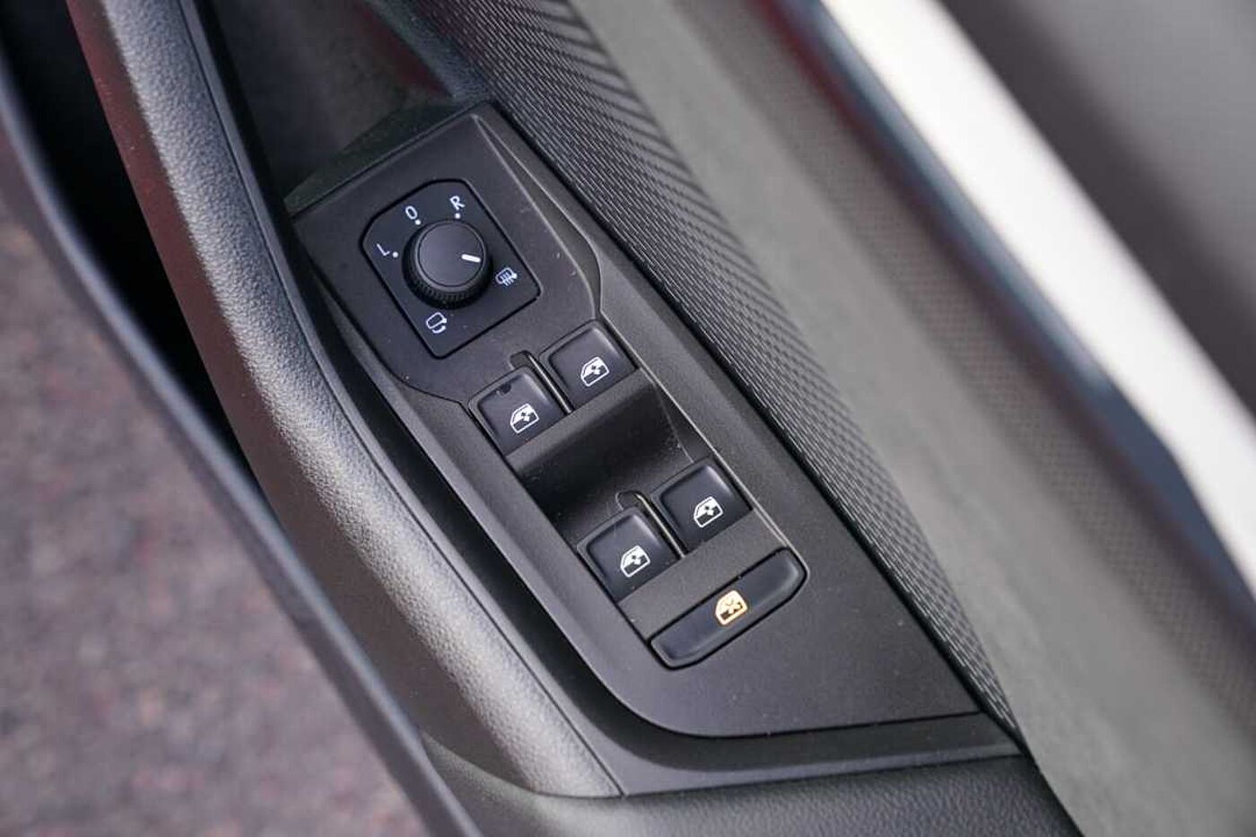 "Electrically adjustable exterior mirror with mirror adjustment switch on drivers armrest and aspheric on driver side, convex on passenger side",