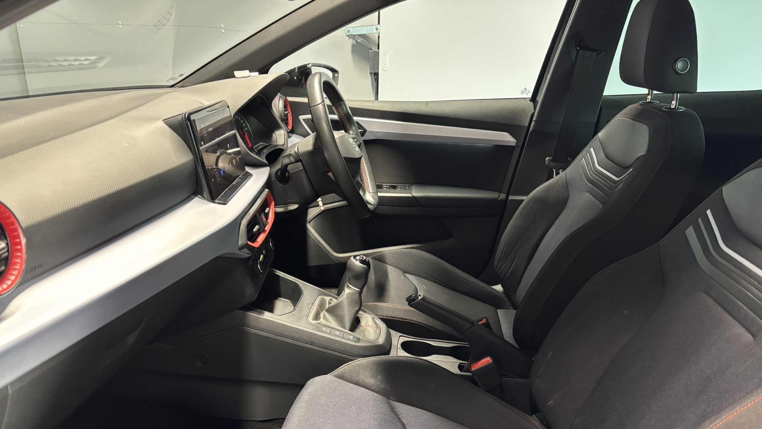 "Cloth and leather upholstery",