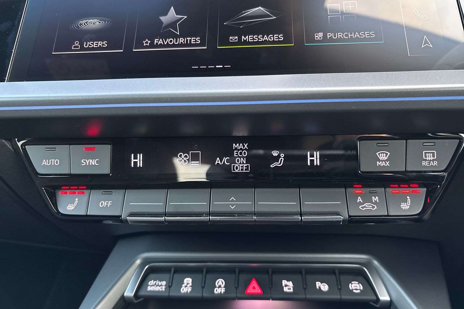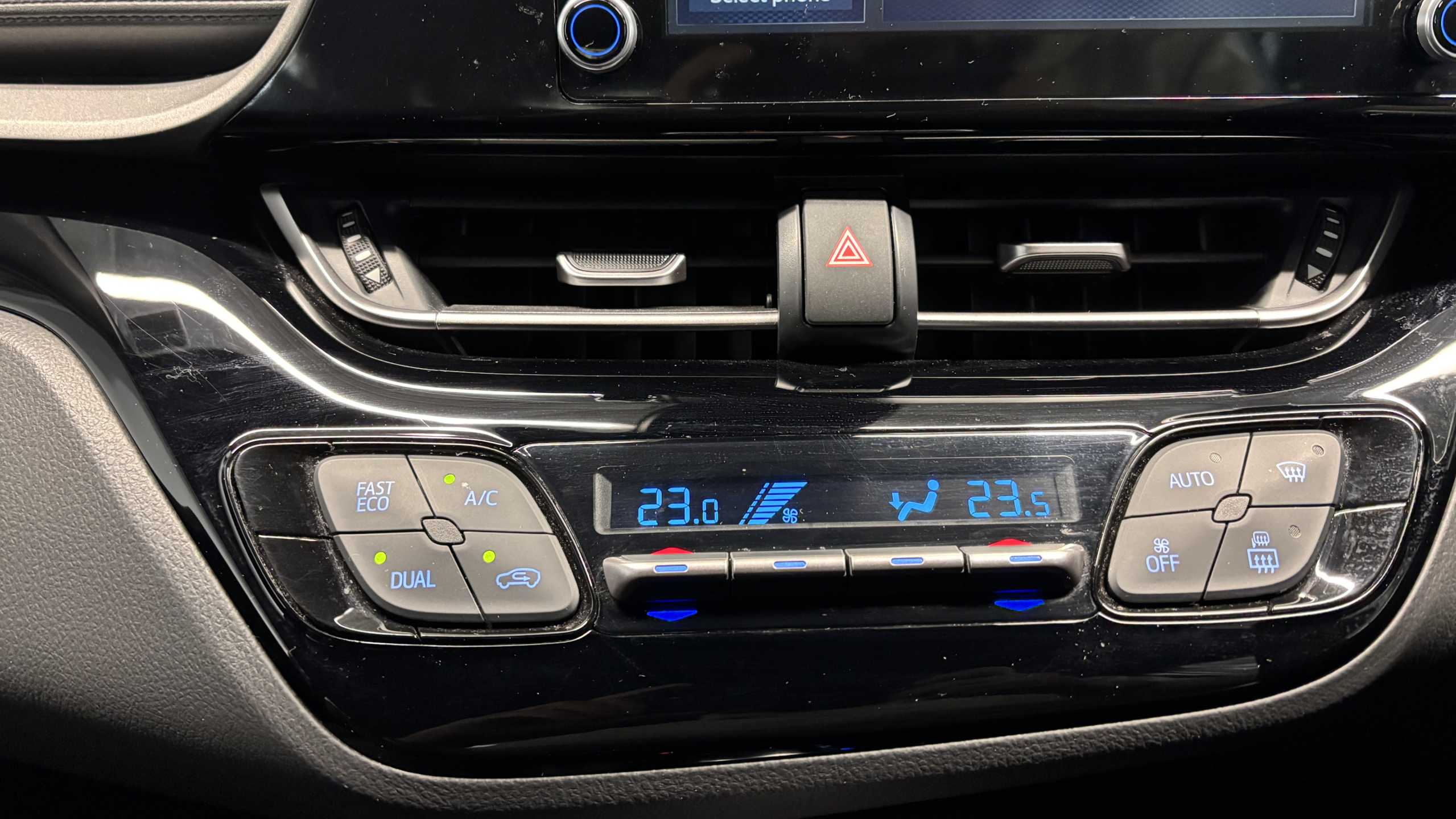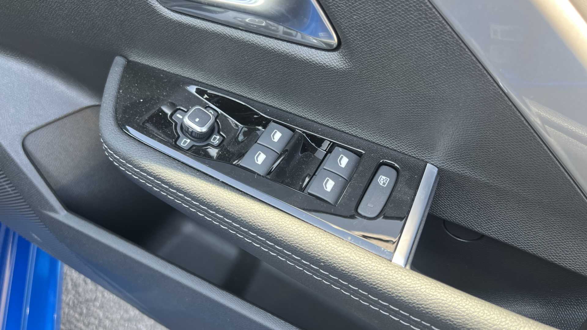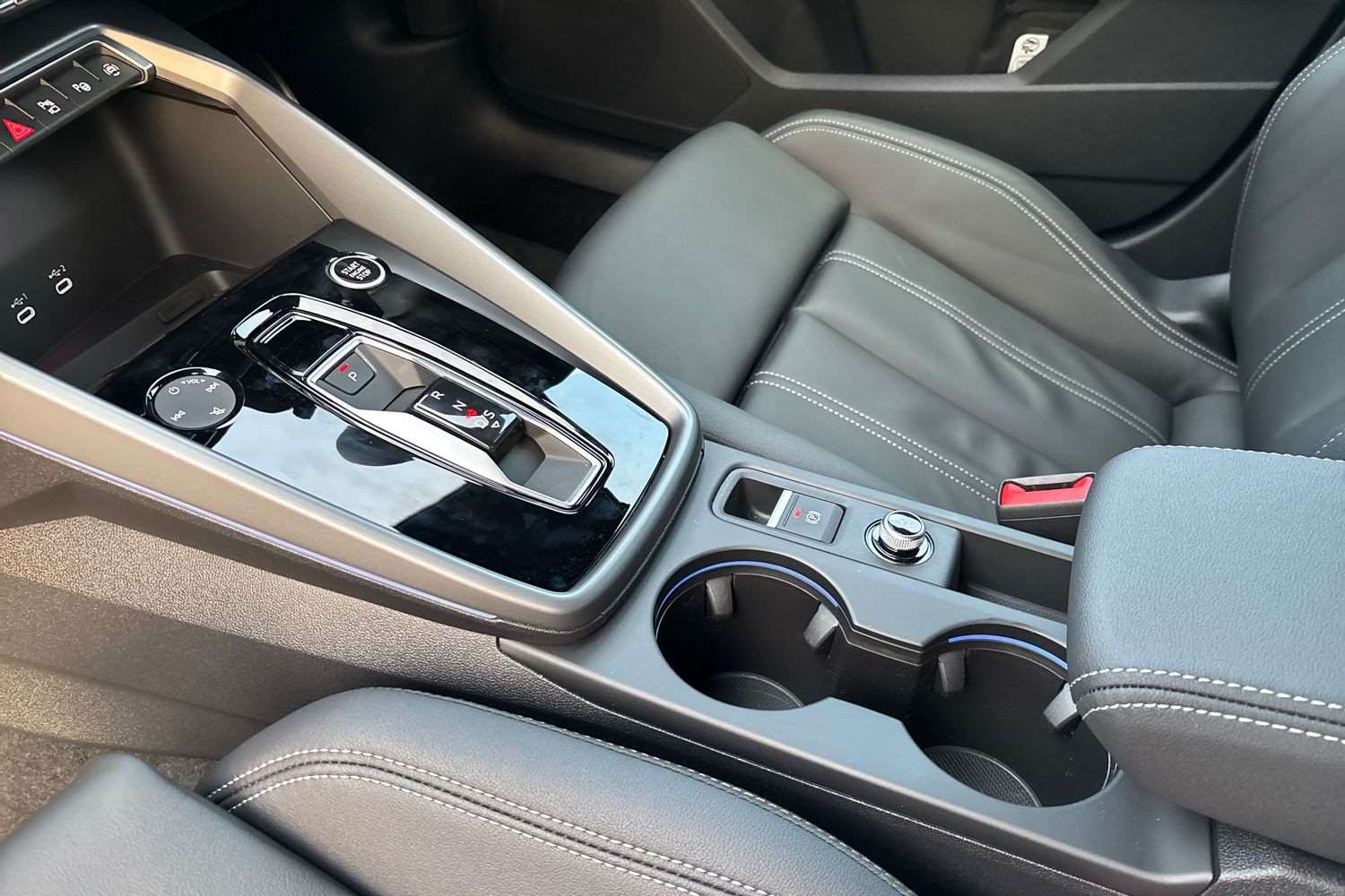 "Centre console in light blue ambent lighting",