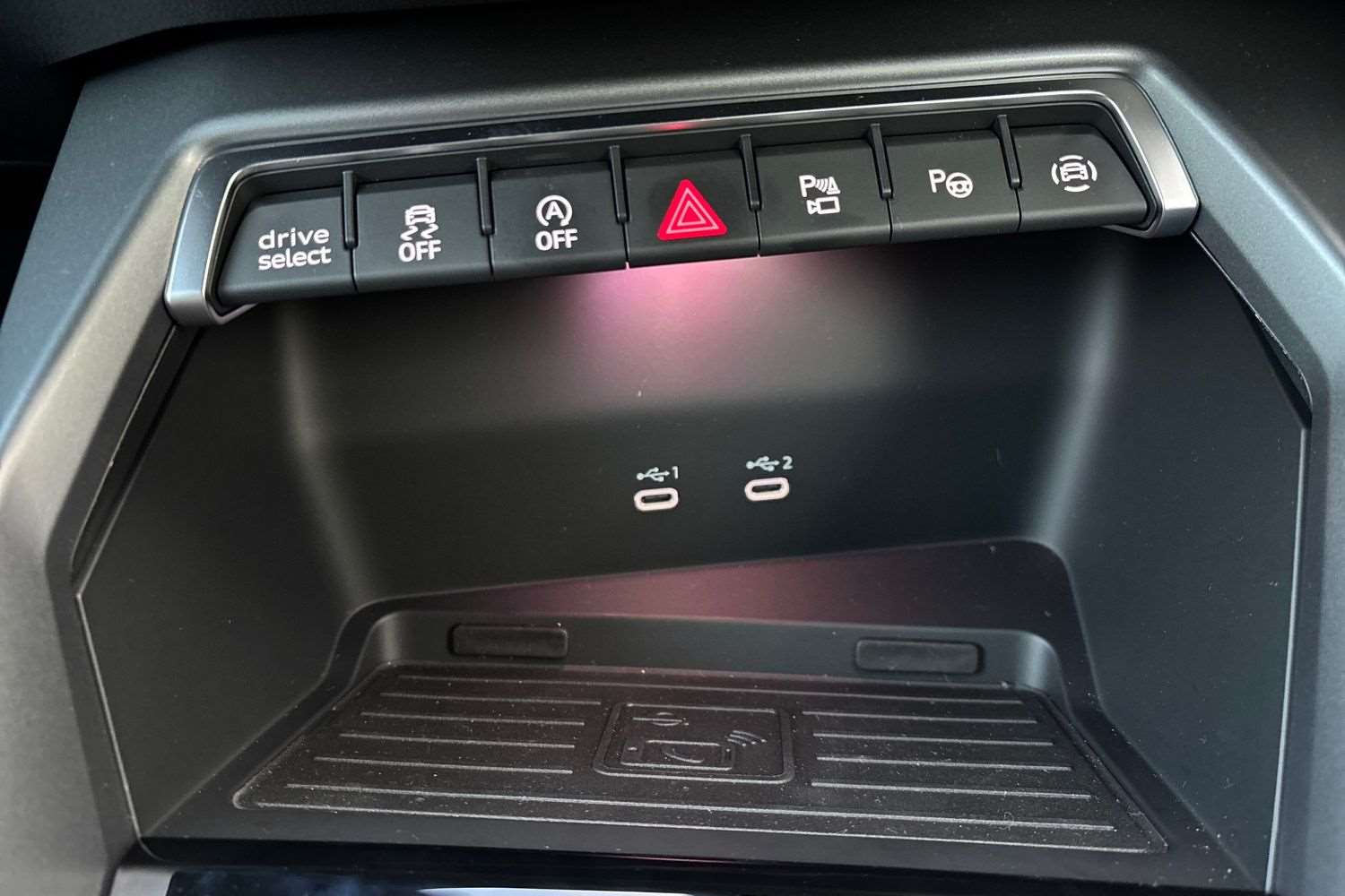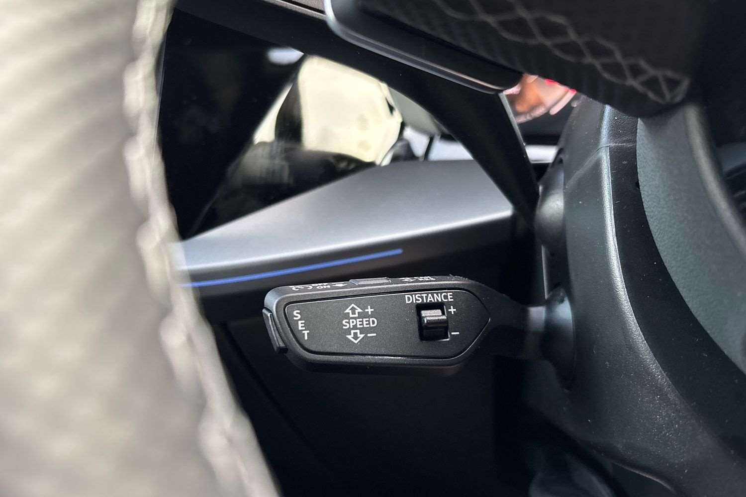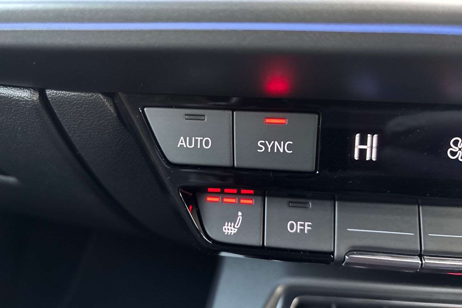 "Centre console in light blue ambent lighting",