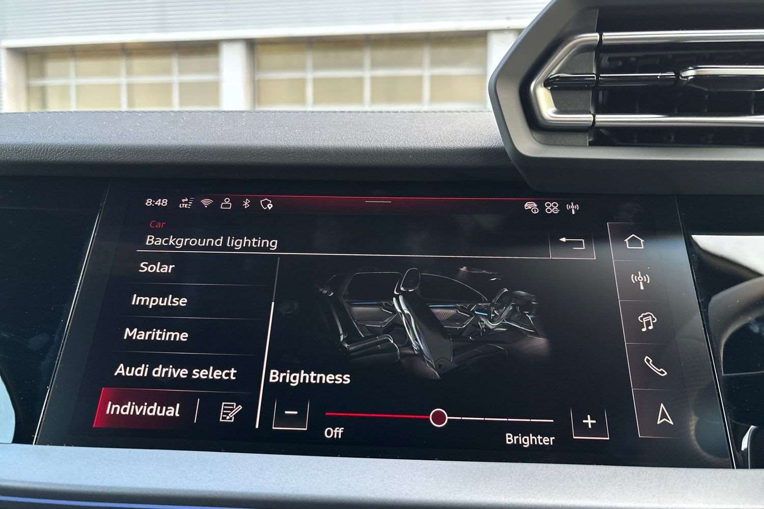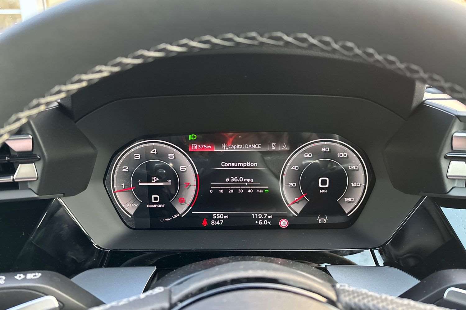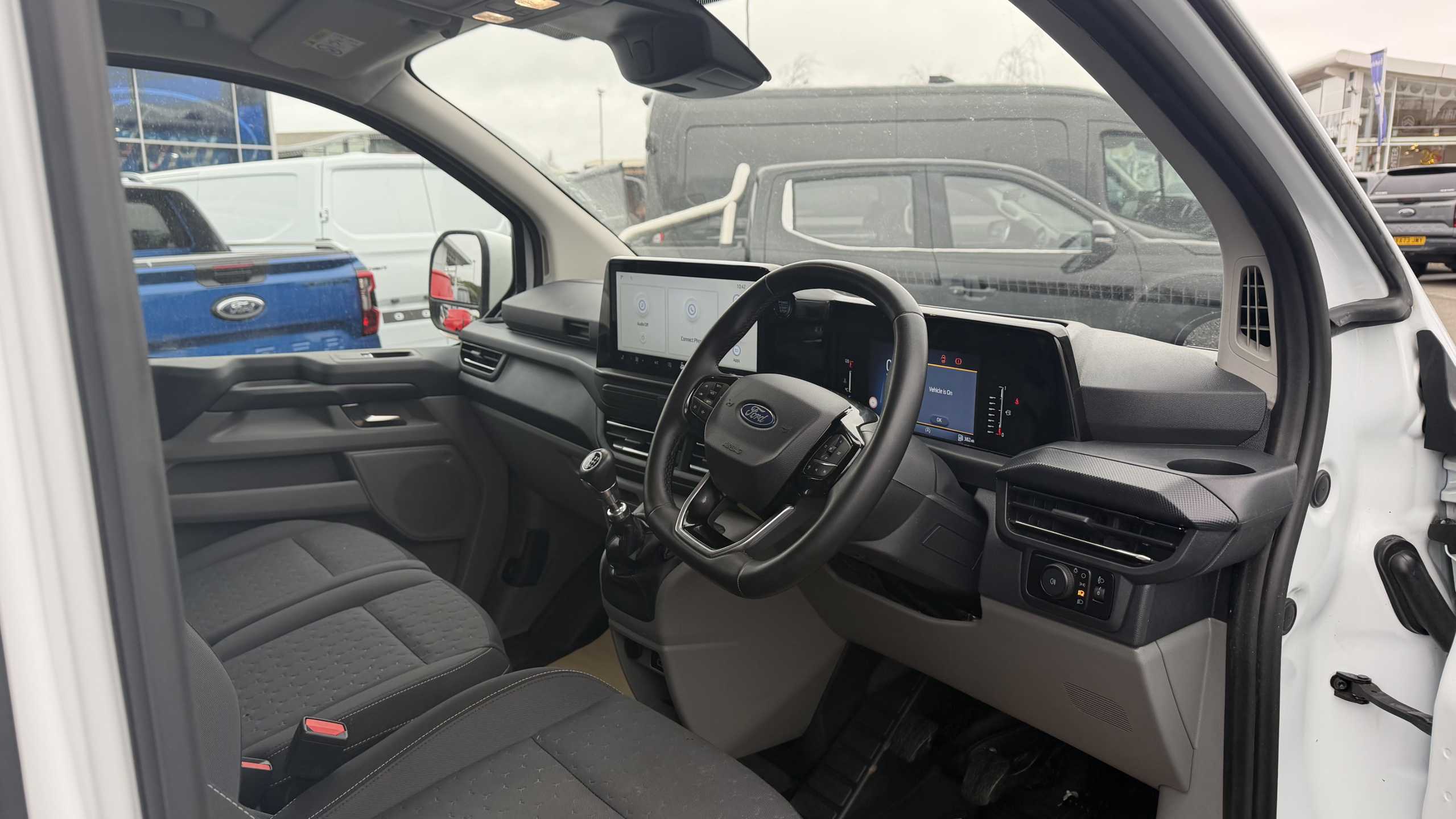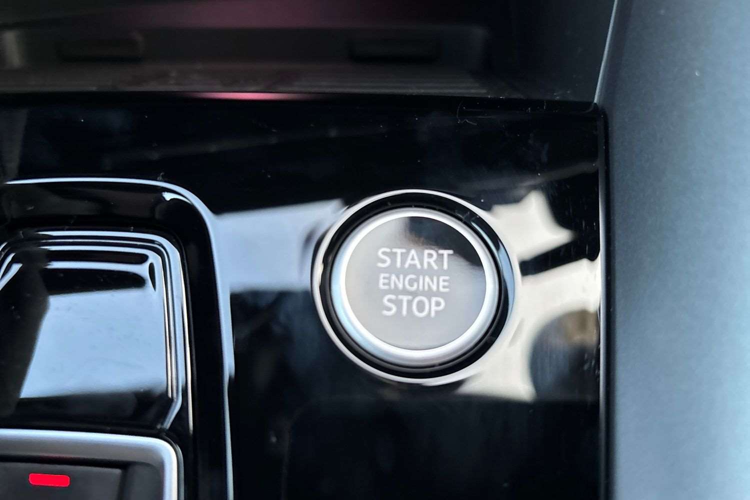 "Centre console in light blue ambent lighting",