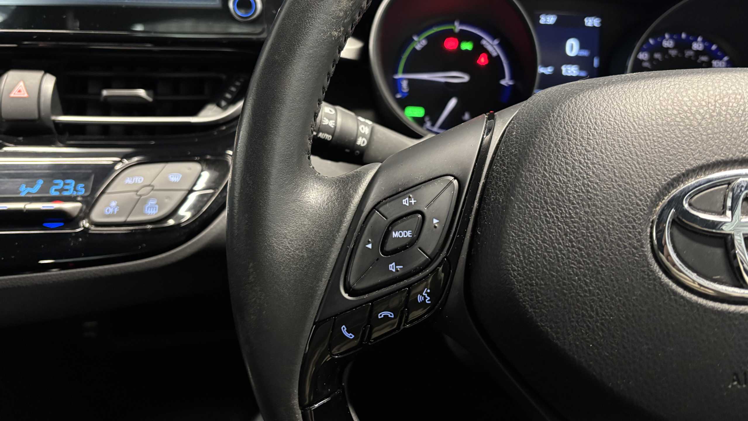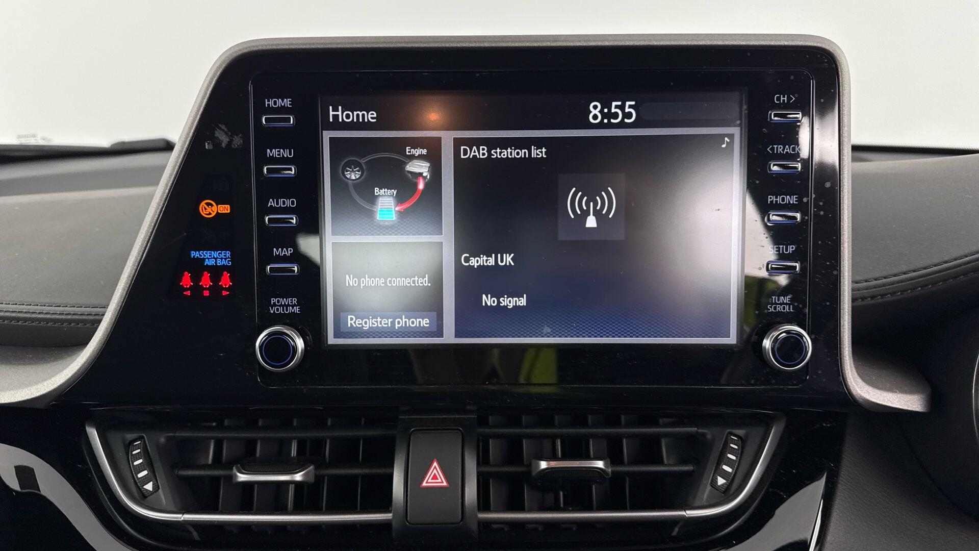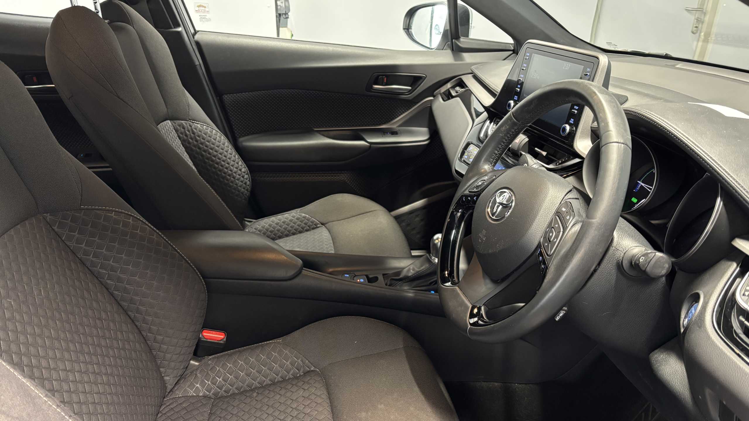"features": "4.2\" coloured TFT screen for multi-information display, Adaptive cruise control, Apple car play and Android auto, Bluetooth connectivity, E-call, Electric power steering, Hybrid system indicator, Lane departure alert with steering control, Lane trace assist, Push button start, Push button tailgate release, Remote boot door release in cabin, Remote boot door release in key, Reversing camera, Road sign assist - RSA, Smart voice assist, Trip computer, Voice recognition, Vehicle Stability Control (VSC), 6 speakers, AM/FM radio, DAB Radio (Digital Audio Broadcasting), Toyota touch 2 multimedia system with 8\" display, USB connector, Wi-fi connectivity, Anti-jam protection on power windows, Auto high beam, Auto up and down function on all power windows, Automatic headlights, Automatic headlights cut-off, Black and body coloured rear bumper, Black lower front grille, Black upper front grille, Body colour door handles, Body colour door mirrors, Body colour front spoiler lip, Body coloured front bumper, Boot door release with push button, Electric heated door mirrors, Follow me home headlights, Front and rear power windows, Front fog lights, Headlight cut off reminder, Honeycomb lower front grille, LED daytime running lights, LED High mounted stop light, LED rear brake lights, LED rear combination lights, Manual headlight levelling, Manually retractable door mirrors, Noise reduction layer on front windows and windscreen, Power adjustable door mirrors, Rear side wing doors, Rear spoiler, Rear tailgate, Rear window defogger, Rear window wiper, Reflective LED headlights, Shark fin antenna, UV-filter on driver and passenger windows, UV-filter on rear windows, Variable front intermittent wipers, 12v power outlet - front, 3 rear headrests, 3 seat bench in 2nd row, 3 spoke leather steering wheel, 60/40 split folding 2nd row rear seats, Adjustable rear headrests, Adjustable speed limiter switch on steering wheel, Assist grips front and centre pillar, Audio and telephone switches on steering wheel, Black front door assist grips, Boot light, Chrome interior door handles, Cloth upholstery, Driver and front passenger personal light, Driver and front passenger Whiplash Injury Lessening seats, Dual zone automatic air conditioning, Floor mats, Front cupholders, Front head restraints, Front sports seats, Glovebox with internal light, Hard tonneau cover, Hooks for luggage holding net, Humidifying Nanoe air purifier, Illuminated entry system, Isofix attachments on outer rear seats, Leather gearshift, Light on driver sun visor, Light on passenger sun visor, Manual telescopic steering wheel, Manual tilt steering wheel, Manually adjustable lumbar support on driver seat, Manually height adjustable driver seat, Manually height adjustable front passenger seat, Manually reclining driver seat, Manually reclining front passenger seat, Manually sliding driver seat, Manually sliding front passenger seat, Microphone on front personal light, Mirror on driver sun visor, Mirror on passenger sun visor, Multimedia switches on steering wheel, Pollen filter, Shopping bag hooks, Single front passenger seat, Slow opening on lower glovebox, Voice recognition switch on steering wheel, 16 Disk front wheel brake, 3x3 point rear seatbelts, ABS+EBD+Brake assist, Electronic parking brake, Front and rear seatbelt reminder, Front passenger airbag on/off switch, Hill start assist control (HAC), Pre collision system with pedestrian detection, Pre-tensioners and force limiters, Rear door child safety locks, SRS Airbags - Driver + Front passenger, front side, front and rear curtain and driver's knee airbags, Toyota safety sense, Tyre pressure monitoring system, Tyre pressure warning system, Acoustic vehicle alert system (AVAS), Glass-breaking alarm sensors, Immobiliser, Intrusion alarm, Intrusion sensor, Motion sensor alarm, Power door locks, Power passenger window lock, Remote central locking, Black lower dashboard, Black upper dashboard, Grey deco line on upper dashboard, Matte black centre console, Tyre repair kit, ",