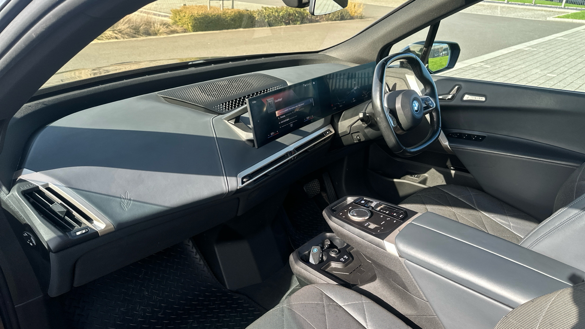 "features": "Attentiveness assist, BMW ConnectedDrive online services, BMW Iconic sounds electric, BMW Natural interaction, BMW Teleservices, Brake pad wear indicator warning light, Condition based service, Engine start/stop button, iDrive controller, Integral active steering, Integrated owners handbook, Live Cockpit Professional with head up display including 12.3\" instrument cluster and 14.9\" central display, Service interval indicator, Speed limiter, AC charging up to 11kW, BMW xDrive system, DC charging up to 195kW, Double wishbone front axle, eDrive exterior sound, Electric drive unit, Flexible charger, Front and rear air suspension, High voltage 105kWh battery, Mode 3 charging cable, DAB Tuner enables digital radio reception, Harman/Kardon surround sound audio system with 18 speakers and 655W, Personal eSim, USB connections (2 x Type C in cupholder area and 2 x Type C on rear of front seats), Body colour plastic front apron, Body colour roof fin, Charging flap in rear right side panel, Climate comfort windscreen, Daylight driving lights, Dynamic brake lights, Electric integrated door handles flush with the door surface, Follow me home headlight function, Frameless interior mirror, Front and rear electric windows, Fuel filler flap - right rear in body colour, Heated windscreen washer jets, High beam assistant, Integrated direction indicators, LED rear lights, Licence plate panel integrated into front bumper and tailgate, M sport specific bumpers, Mirror base in black matt, Model logo - iX on left of tailgate and xDrive model inscription and model designation on right of tailgate, One piece front bumper cover including towing eye cover in body colour, Rain sensor + automatic driving lights control, Rear side wing doors, Rear window wiper, Side frame decorative moulding black high gloss, Third brake light featuring LED technology, Welcome light carpet, Window cavity cover in black high gloss, 12V - Power sockets with front centre console and luggage compartment, 2 Integrated head restraints in the outer seats, one height-adjustable head restraint for the centre seat, 2 spoke polygonal steering wheel, 3 seat bench in 2nd row, 40:20:40 split folding rear seat backrests, Adjustable steering column, Ambient interior lighting, Anthracite headlining, BMW ID, Driver and front passenger heated seats, Fixed luggage compartment cover, Four cupholders (2 front and 2 in rear centre arm rest), Four lashing eyes in luggage compartment, Four zone automatic air conditioning, Front and rear door pockets, Glove box with electric unlocking (button next to glove box lid), Headrests for all seats, High gloss black shadow line, Interior light - Front/rear reading light, glovebox, centre console storage, front footwell, makeup mirro, Luggage compartment and Fire place light, Luggage compartment floor panel with integral storage tray, Multifunction hooks, Rear centre armrest, Seat back with flap pocket, Single front passenger seat, Split folding rear seats, Stationary cooling, Storage tray and compartment with cover in centre console, Sun visors, Wireless charging tray, Connected package professional - iX, Driving assistant professional pack - iX, Expanded exterior mirror pack - iX, M Sport aerodynamics bodystyling pack - iX, Active protection, Anti-lock braking system (ABS), BMW emergency call, Brake energy regeneration, Child locks on rear doors, Child seat ISOFIX attachment rear outer seats, Crash sensor, Driver and front passenger airbags, Driver and passenger side airbags, DSC - Dynamic Stability Control with extended contents, Electromechanical parking brake, Front brake discs with interior ventilation, Head airbags for 1st and 2nd seat row, Hill start assistant, Integrated sport braking system, Passive protection for pedestrians, Rear brake discs with interior ventilation, Recuperation system, Seat occupancy detection for driver and passenger side, Side impact protection, Three point seat belts for all four seats, Two tone horn, Tyre pressure sensor, Warning triangle and first aid kit, Alarm system, Closing system with central locking, Engine immobiliser, Interior centre lock switch, Keyless engine start, Locking wheel bolts, Two vehicle keys, Diagonal stitching on seats, Tool kit, Tyre repair kit, ",