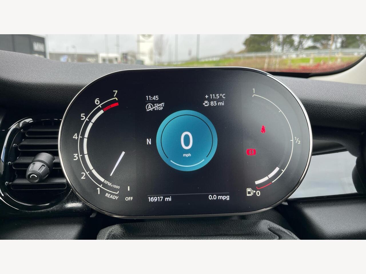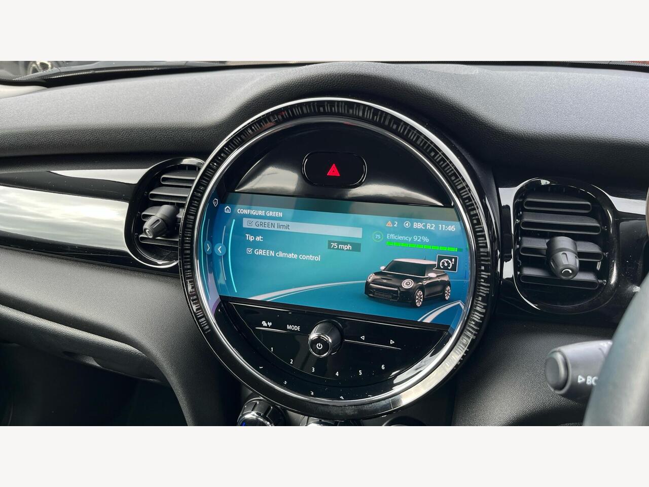 "Central analogue rev counter with black dial face, power meter and pointers in acid green",