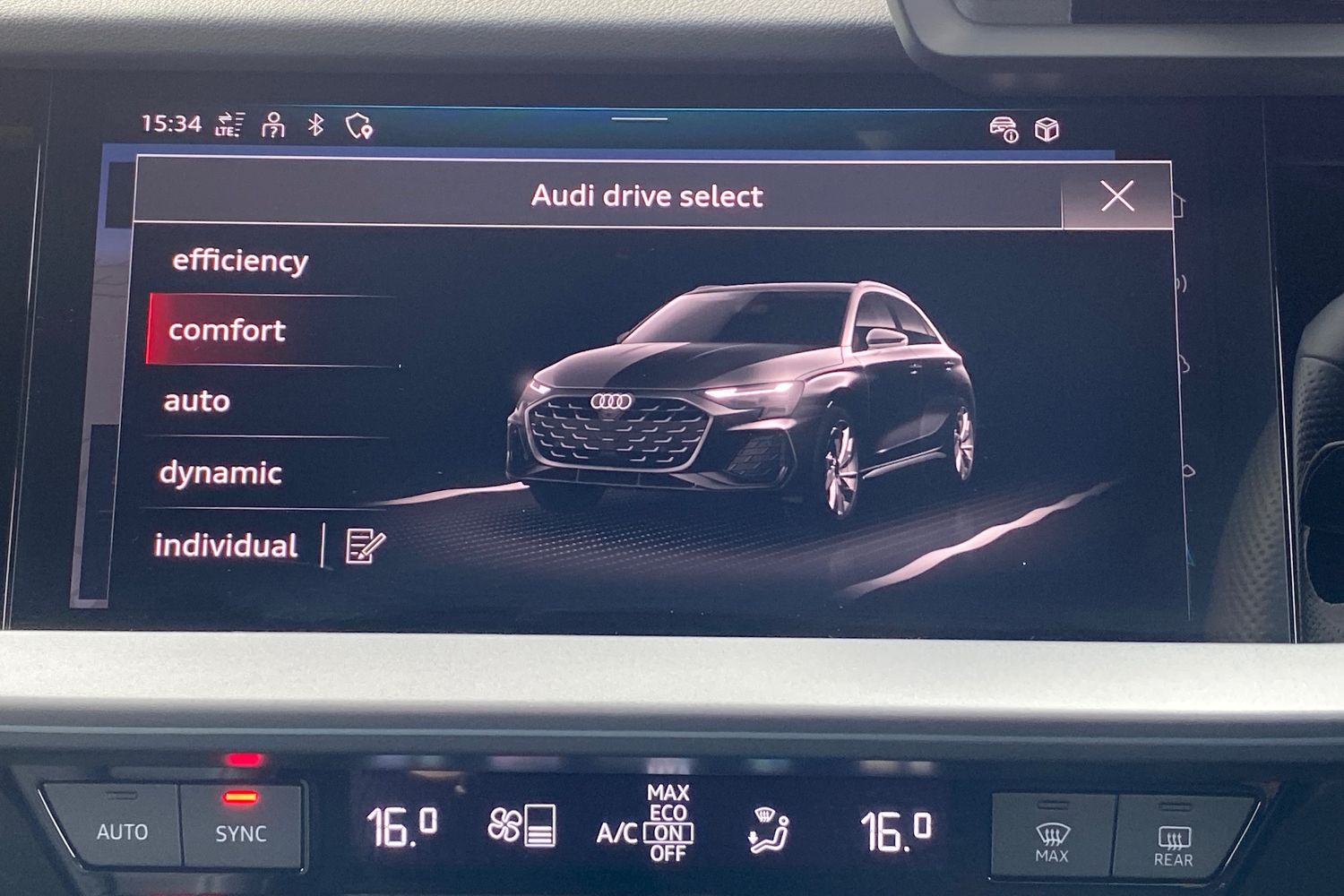 "Audi drive select: power steering assistance + engine (modes: comfort, auto, dynamic, individual)",