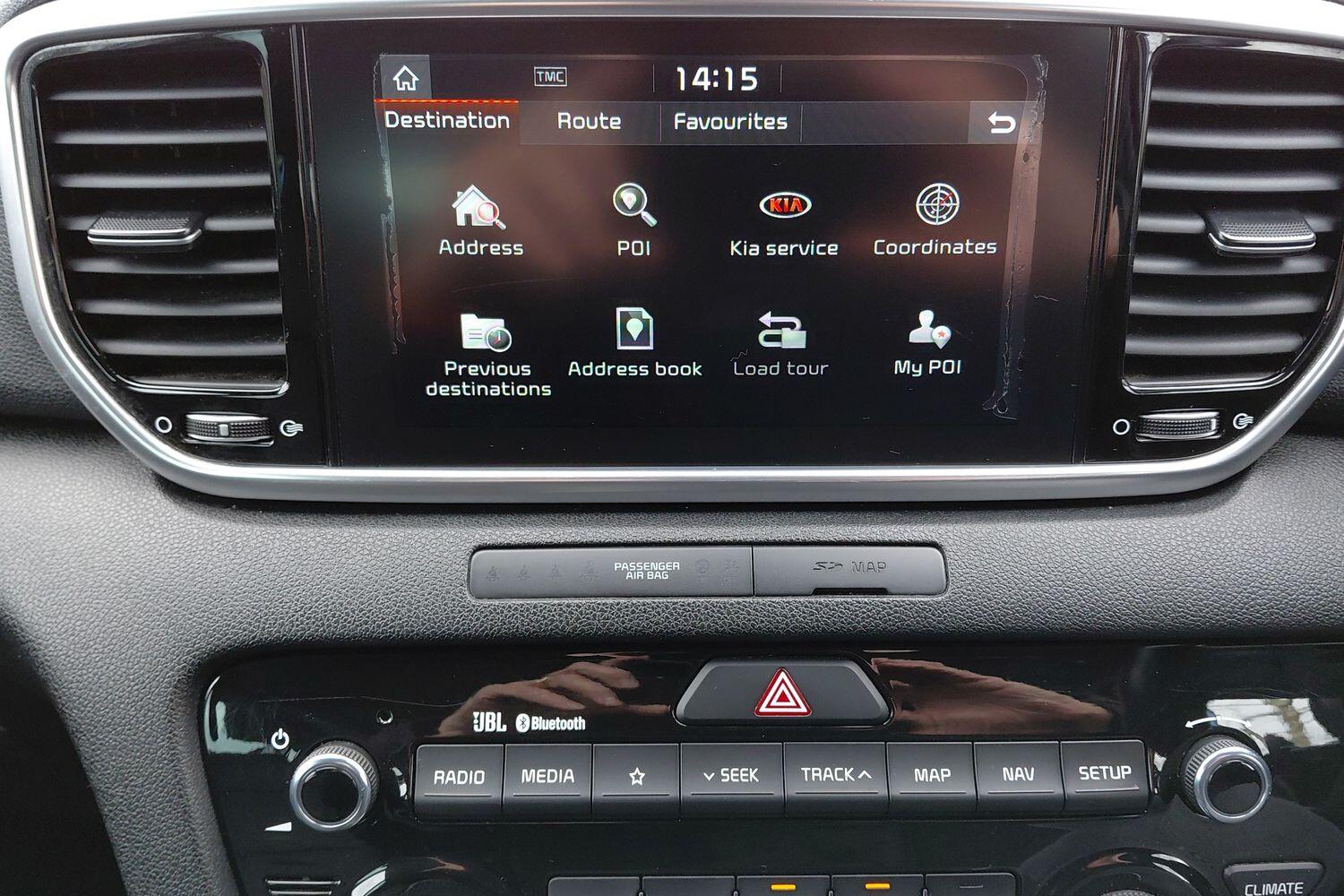 "features": "360 degree surround camera, 4.2\" supervision colour cluster display, 8\" touchscreen satellite navigation with European mapping and traffic messaging channel, Android auto with voice control, Apple car play with voice control, Blind spot collision warning, Bluetooth connectivity with voice control, Cruise control + speed limiter, Digital clock, Drive mode selector, Driver attention warning, Emergency stop signalling system, Forward collision avoidance assist, Front parking sensor, Kia connected services featuring TomTom live, Lane keep assist, Rear parking sensor, Speed limit information, Speed sensitive power steering, Trip computer, Windscreen washer level indicator, Intelligent Stop and Go, Bluetooth audio streaming, DAB Radio with MP3, JBL Premium sound system with 8 speakers, external amp, subwoofer and front centre speaker, Rear USB port, Steering wheel mounted audio controls, USB/iPod/auxiliary input connections, All round electric windows with drivers auto up/down function, Auto dimming rear view mirror, Automatic defog system, Automatic headlights, Black wheel arch body mouldings and side sills with chrome insert, Body colour door handles with chrome inserts, Body colour door mirrors, Chrome front bumper insert, Chrome grille surround, Chrome window surround, Cornering light, Electric panoramic glass sunroof, Electrically adjustable/heated/folding door mirrors with LED indicators, Front fog lights, High beam assist, High gloss black diamond mesh radiator grille, LED Bi-Function headlights, LED daytime running lights, LED rear lights, Privacy glass (rear side windows and rear screen), Rain sensing front wipers, Rear spoiler, Rear wiper, Roof rails, Shark fin antenna, Silver painted front and rear skid plates, Speed sensitive front wipers, Tinted glass, Trailer stability assist, Welcome and follow-me home light functionality, Wide view drivers door mirror, Windscreen wiper de-icer, 10 way driver/8 way passenger electrically power adjustable seats, 12V power in front and rear centre console, 3 x passenger assist grips, 60/40 split folding rear seat, Air filter, All-round height adjustable headrests, Centre console storage box, Door armrest in leather, Driver and front passenger side sunvisors with illuminated vanity mirrors, Drivers seat power lumbar support, Dual zone automatic air conditioning, Front and rear door storage, Front cabin LED map light with sunglasses case, Front door courtesy reflectors, Front seat and rear pockets, Front/rear centre armrests, Gear shift indicator, Glovebox illumination, Heated front and outer rear seats, Heated steering wheel, Illuminated glovebox, Interior door lock/unlock function, ISOFIX Child seat top tethers and anchor fixings, Leather steering wheel, Leather trimmed gearshift, Leather upholstery, Light grey headlining, Luggage area LED light, Luggage area load cover, Luggage net with hooks, Rear centre armrest with cupholder, Rear coat hooks, Rear headrests, Satin chrome interior door handles, Side cabin LED lights, Stainless Steel Scuff Plates, Tilt/telescopic adjustable steering wheel, Ventilation ducts to rear compartment, 3x3 point rear seatbelts, Active front headrests, All round 3-point seatbelts, Anti-lock braking system with electronic brakeforce distribution, Dual front side airbags, Electronic parking brake, Electronic stability control with downhill brake control, ESP + traction control, Front passenger airbag cut-off switch, Front seatbelt pretensioners + load limiters, Height adjustable front seatbelts, Hill start assist control (HAC), Impact sensing auto door unlocking, Rear door child safety locks, Twin curtain airbags with roll over sensor, Twin front airbags, Tyre pressure monitoring system, Advanced anti-theft system including immobiliser and alarm, Door deadlocks, Engine Start/Stop Button with Smart Entry System, Locking wheel nuts, Speed sensitive auto door locking, Visible vehicle identification number, High gloss black centre fascia, 19\" Alloy wheels, Temporary spare wheel, ",