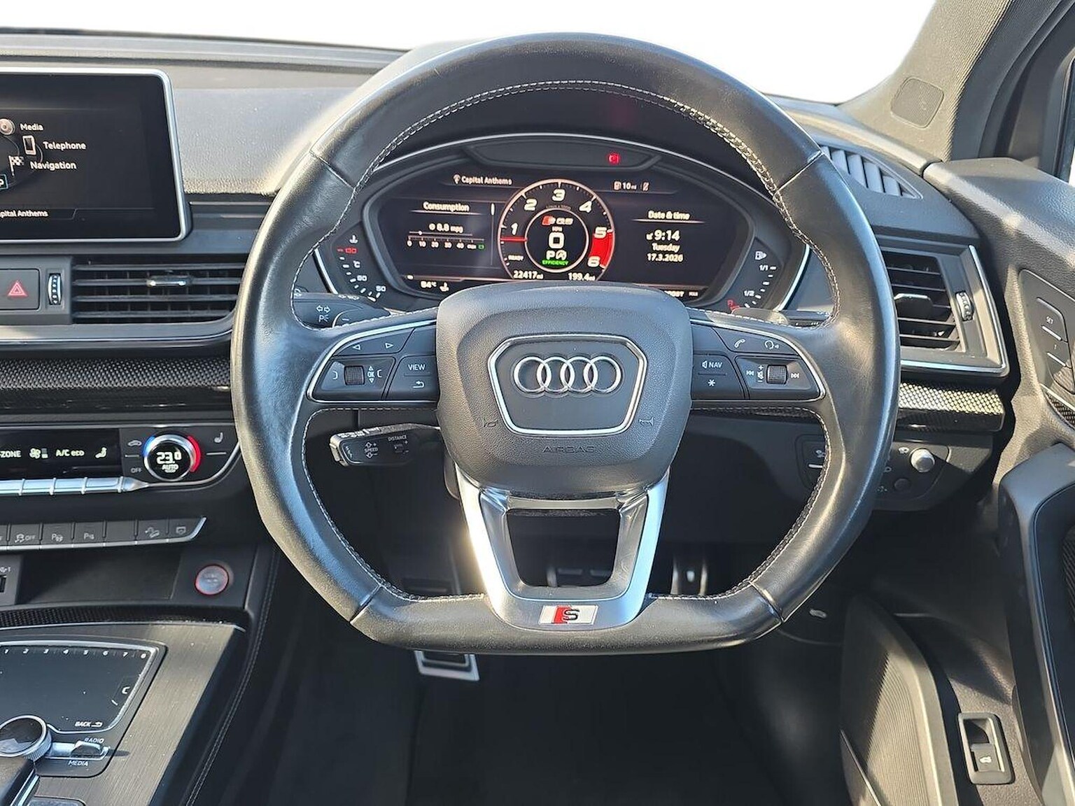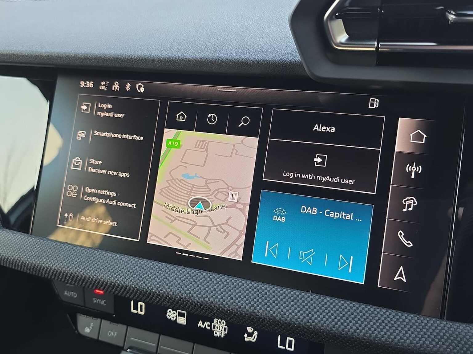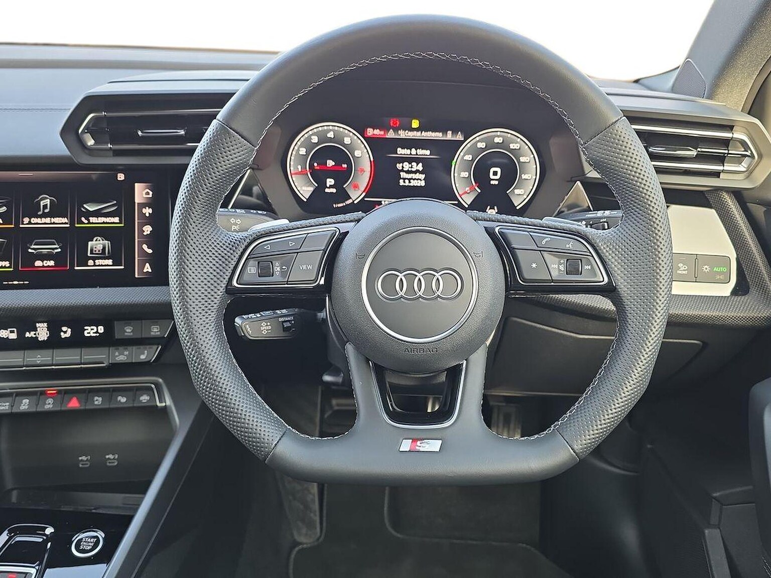 "features": "10.25\" Digital instrument cluster display classis style instrument dials + speed,odometer,time,outside temperature,telephone menu + fuel level warning, Audi drive select - power steering assistance + engine, Audi smartphone interface with connect compatible smartphone via USB directly MMI display + Nav,music, third party apps controlled via MMI controller, Automatic start/stop system, Bluetooth interface, Cruise control, Driver's information system, Electromechanical power steering, Emergency e-call, Emergency services call system, Lane departure warning system, Service interval indicator, Speed limiter, Voice control system, Washer fluid level indicator, Dynamic suspension, 1 x SDXC card reader, 2 x USB type C connection points, DAB Digital radio, MMI radio plus with 8.8\" colour MMI display screen and MMI touch, Auto dimming rear view mirror, Body coloured bumpers, Body coloured door mirrors, Electric front and rear windows, Electrically adjustable, heated, folding door mirrors with integrated LED side indicator, Front side air inlets in grained matt black and C frame in anthracite black, Heat insulating glass windscreen and side windows, Heated rear windscreen, High level LED brake light, LED headlights with LED rear lights + dynamic rear indicators + headlight adjustment and high beam, turning light + LED daytime running lights, Radiator grille and rear diffuser in matt anthracite black, Radiator protective grille frame in matt aluminium silver, Rain and light sensors, Rear fog lights, Rear side wing doors, Rear wing door, Rear wiper, Side front spoiler lips in grained matt black, 12V socket in centre console with two cup holders, 3 rear seats with headrests, 3 seat bench in 2nd row, 3 spoke leather multifunction plus steering wheel, 40:60 Split folding rear seat or folded fully, Door sill trims with aluminium inlay, Driver and passenger seat with manual height adjust with forward and backwards adjustment, Front head restraints, Front passenger seat, Front/rear floor mats, Grey cloth headlining, Height and reach adjustable steering wheel, ISOFIX child seat mounting for front passenger and outer rear seats including top tether attachment point of outer rear seats, Leather gear knob with aluminium trim, Leatherette handbrake grip, Luggage compartment light with front and rear reading lights, Manually adjustable lumbar support in front seats, Novum cloth upholstery with front sport seats, Luggage compartment pack - A1, 3x3 point rear seatbelts, Audi pre-sense front with pedestrain and cyclist recognition, Brake assist function, Driver and front passenger airbag with front side and head airbags, Electronic Stability Control including ABS, EBD, ASR and EDL, Front passenger airbag deactivation switch, Hill hold assist, Manual rear child locks, Seatbelt height adjustment for front seats, Seatbelt monitoring, Tyre pressure warning light, Warning triangle and first aid kit, Anti theft alarm, Anti theft wheel bolts and loose wheel warning, Immobiliser, Remote central locking with 2 foldaway keys, Aluminium trim for control switches, air vents and digital instrument cluster, Silver grey accent areas including air vents, door handle recesses and centre console in diamond paint finish, Slate grey inlays polygon structure in fine paint finish, ",