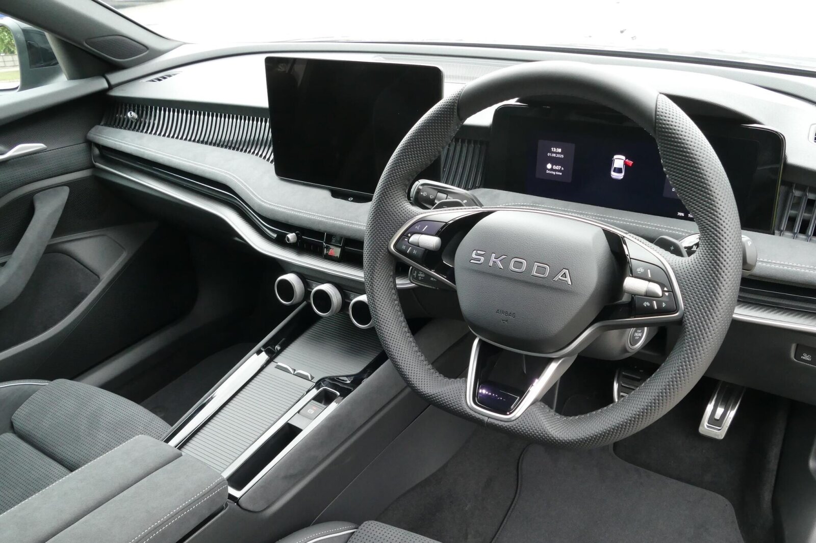 "Skoda lettering on steering wheel",