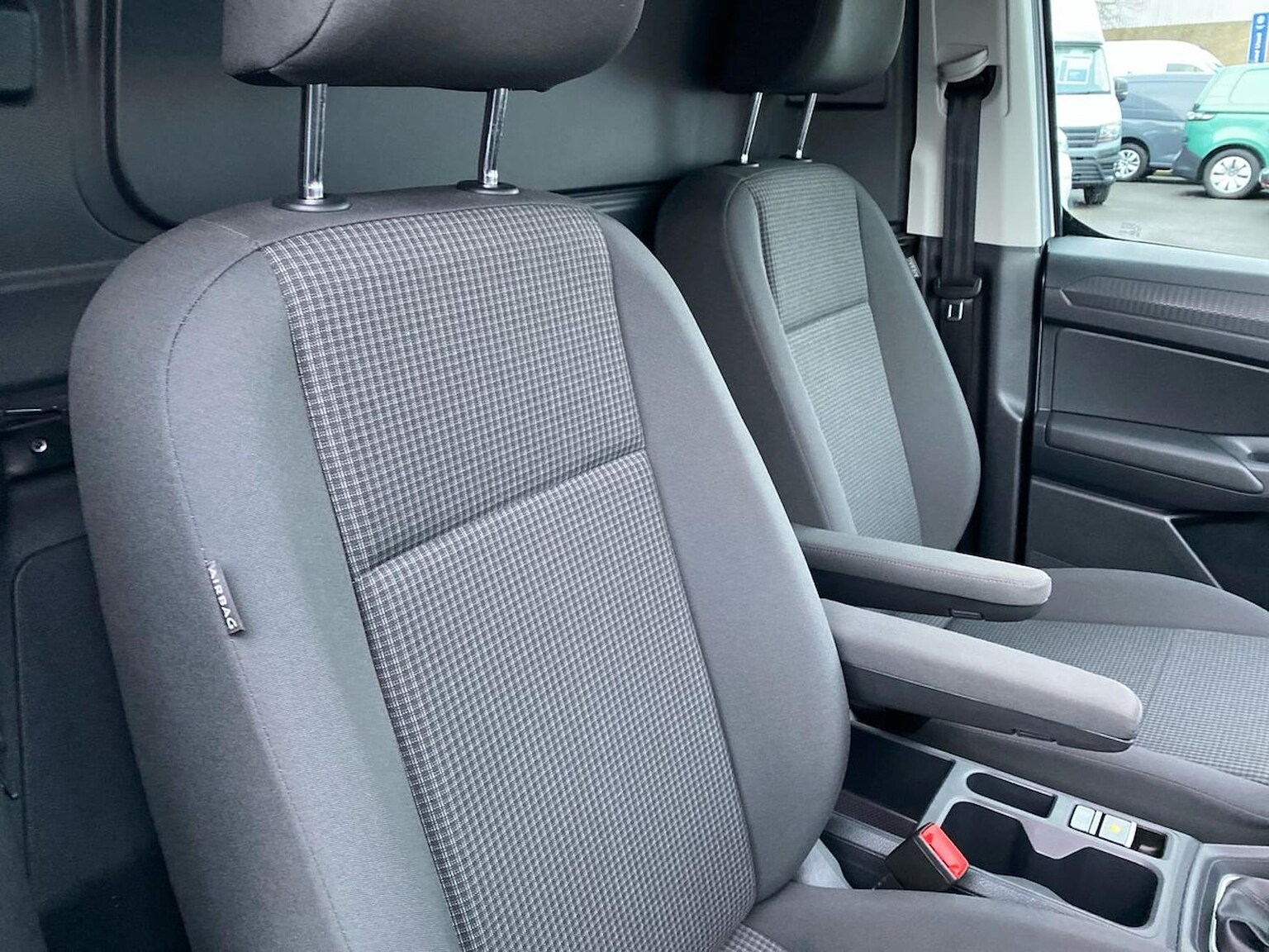 "Front armrest with storage box",