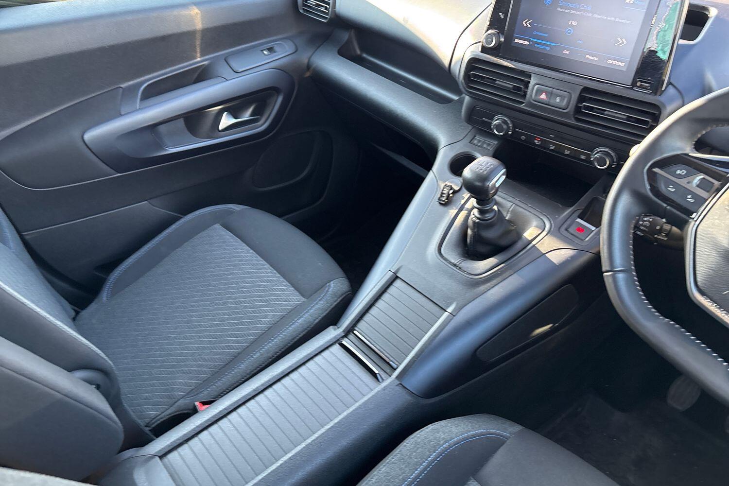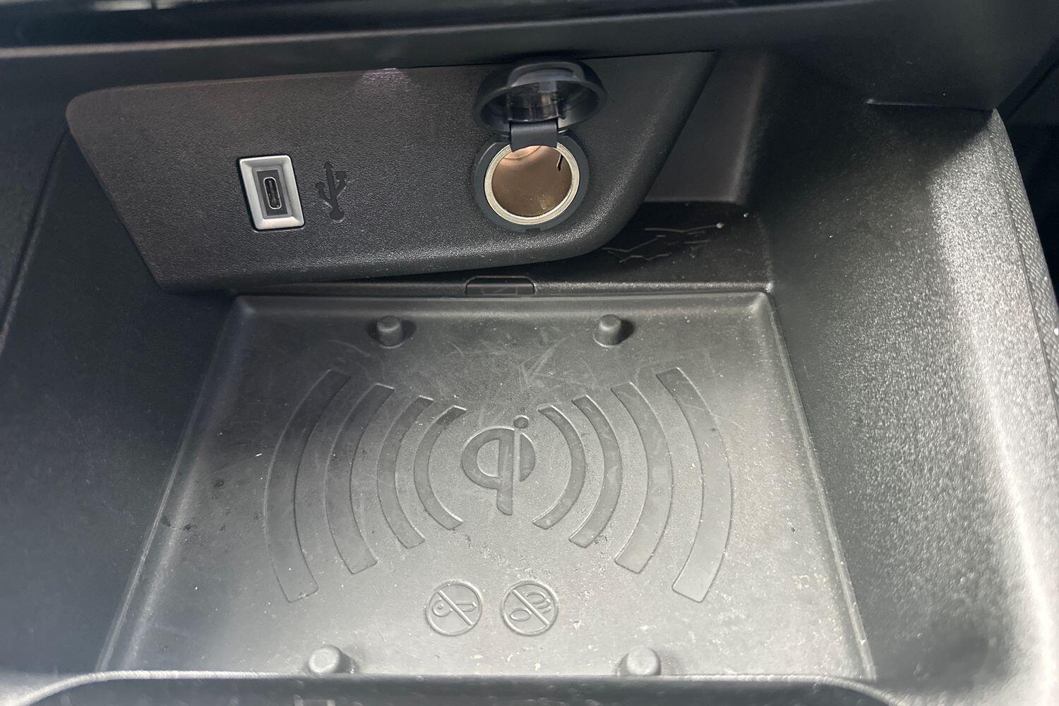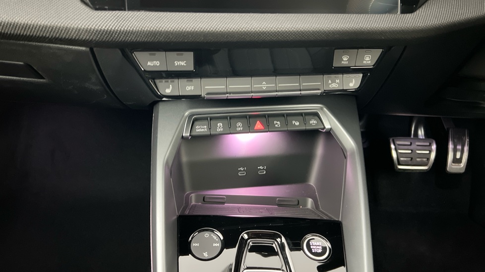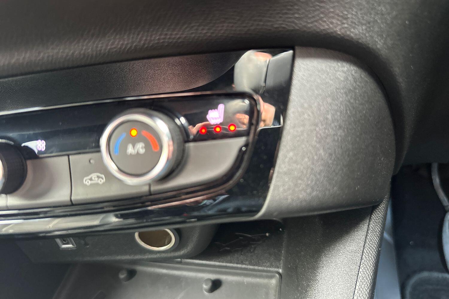 "Blue ambient lighting on front cup holders",