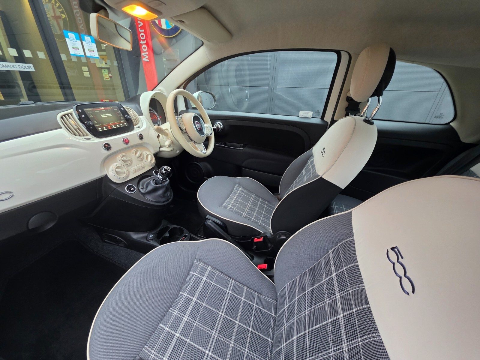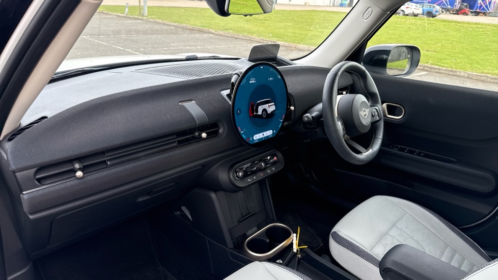 "Satin grey deco line on upper dashboard"