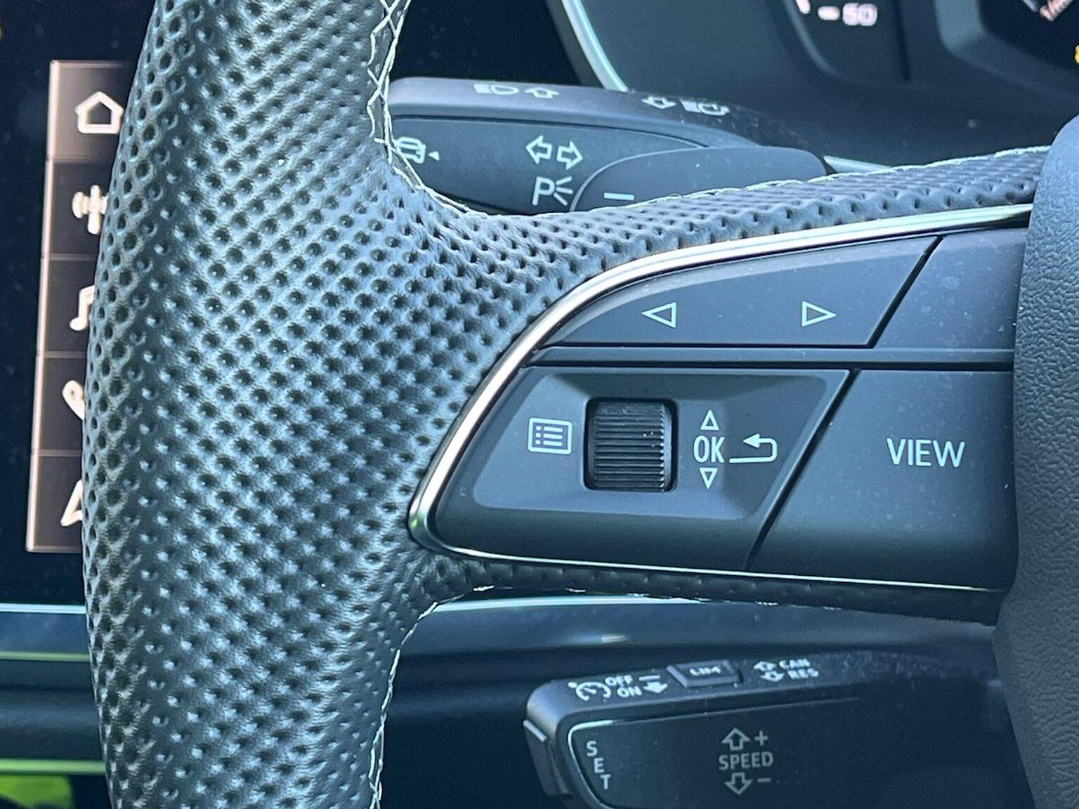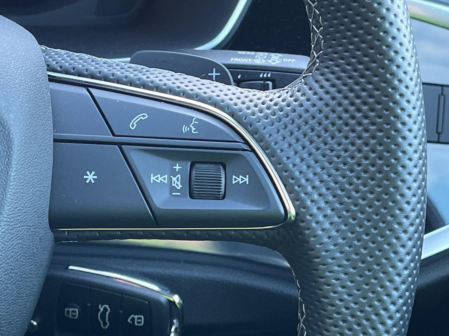 "Multifunction controls for leather steering wheel",