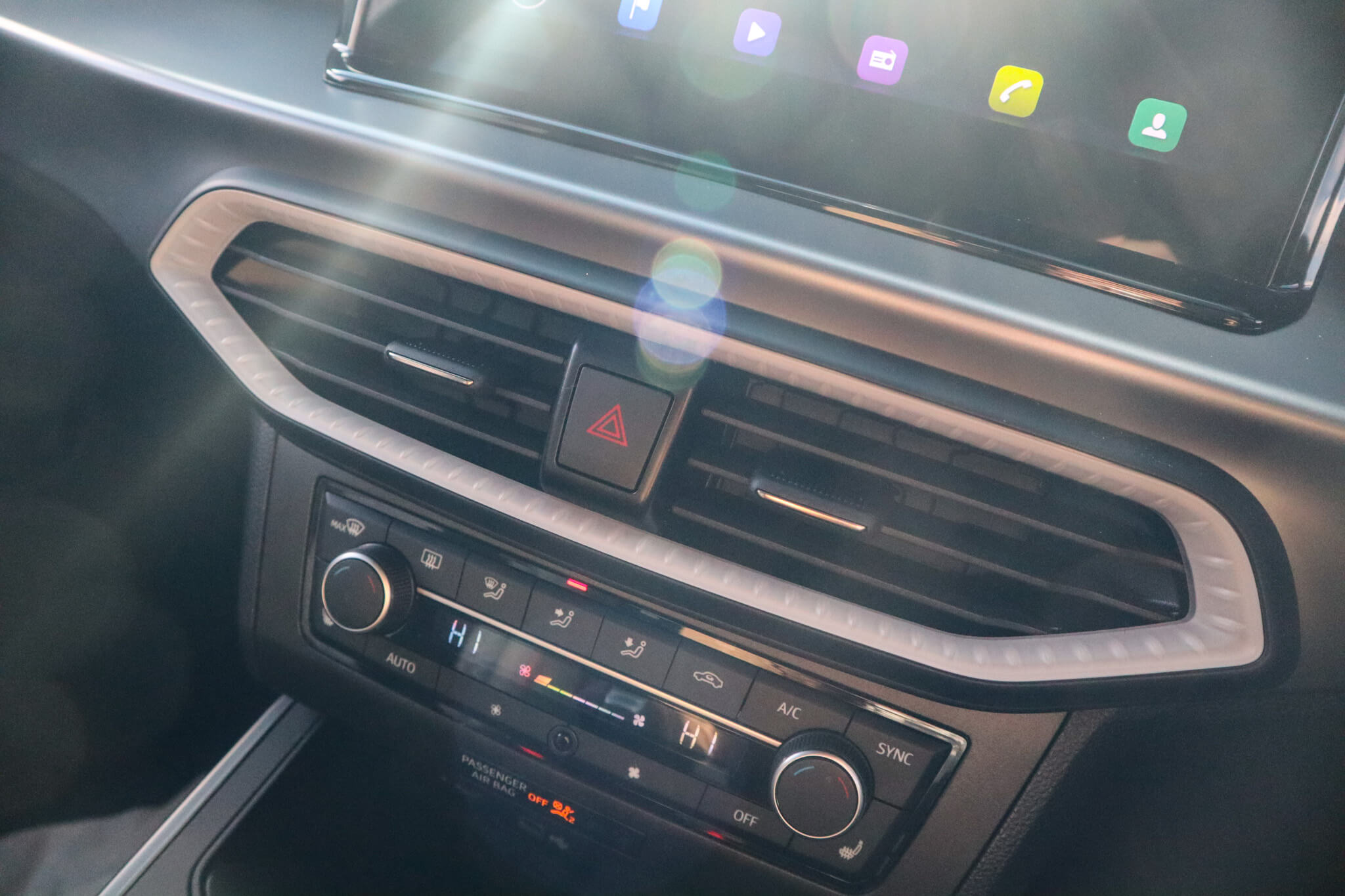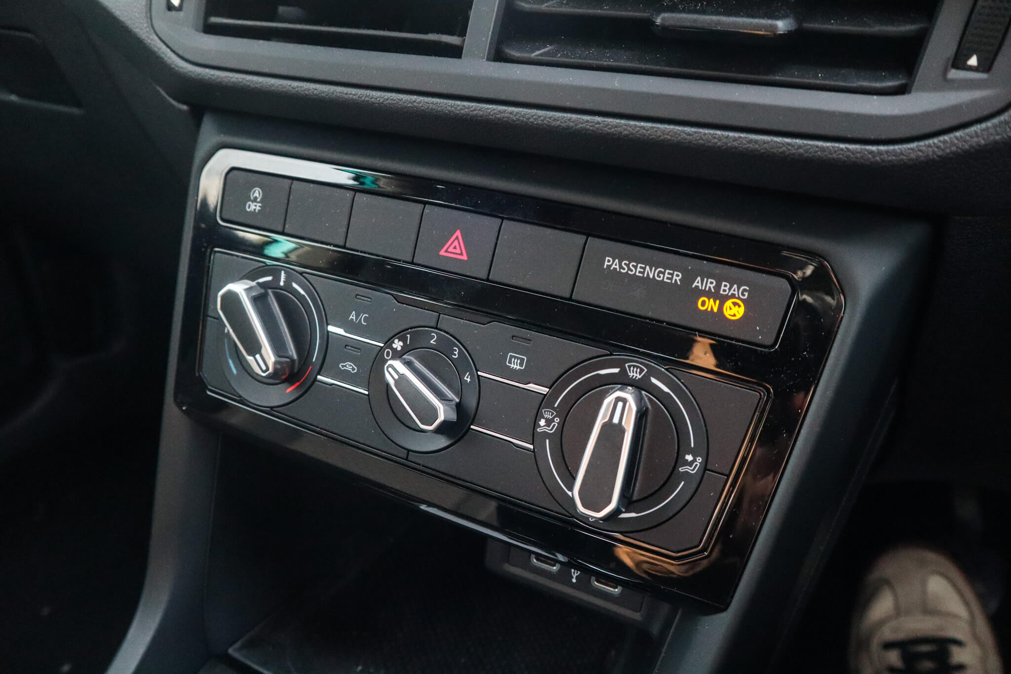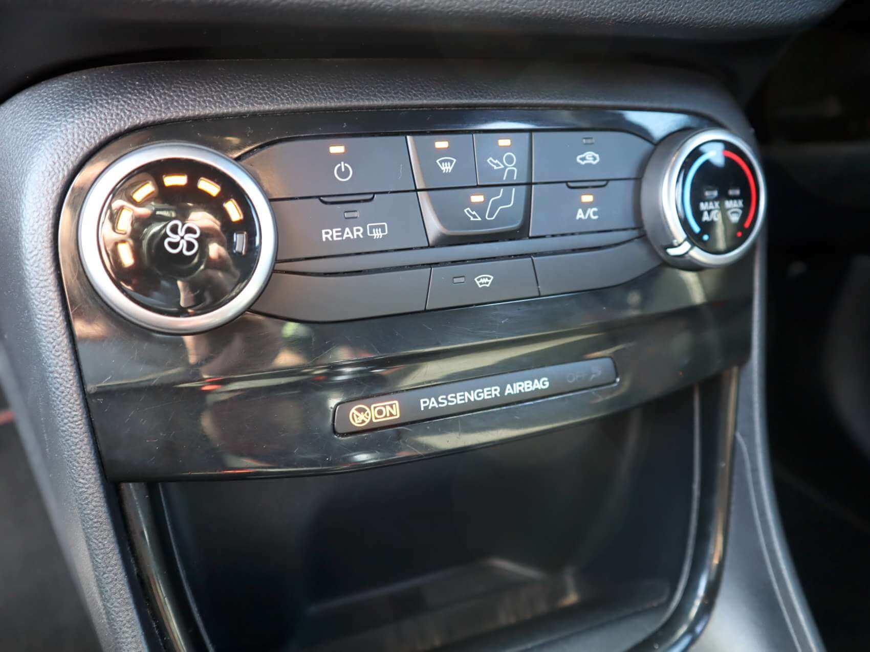 "Chrome surround on air conditioning buttons",