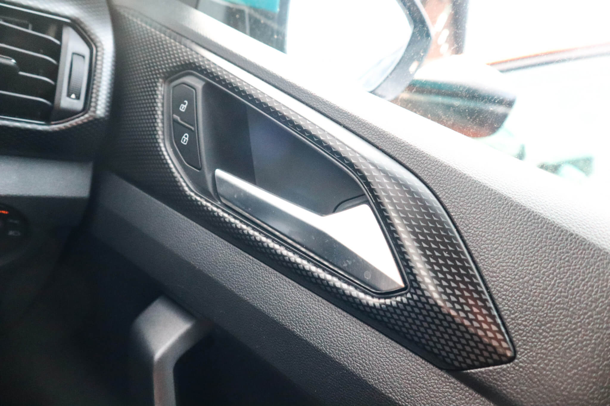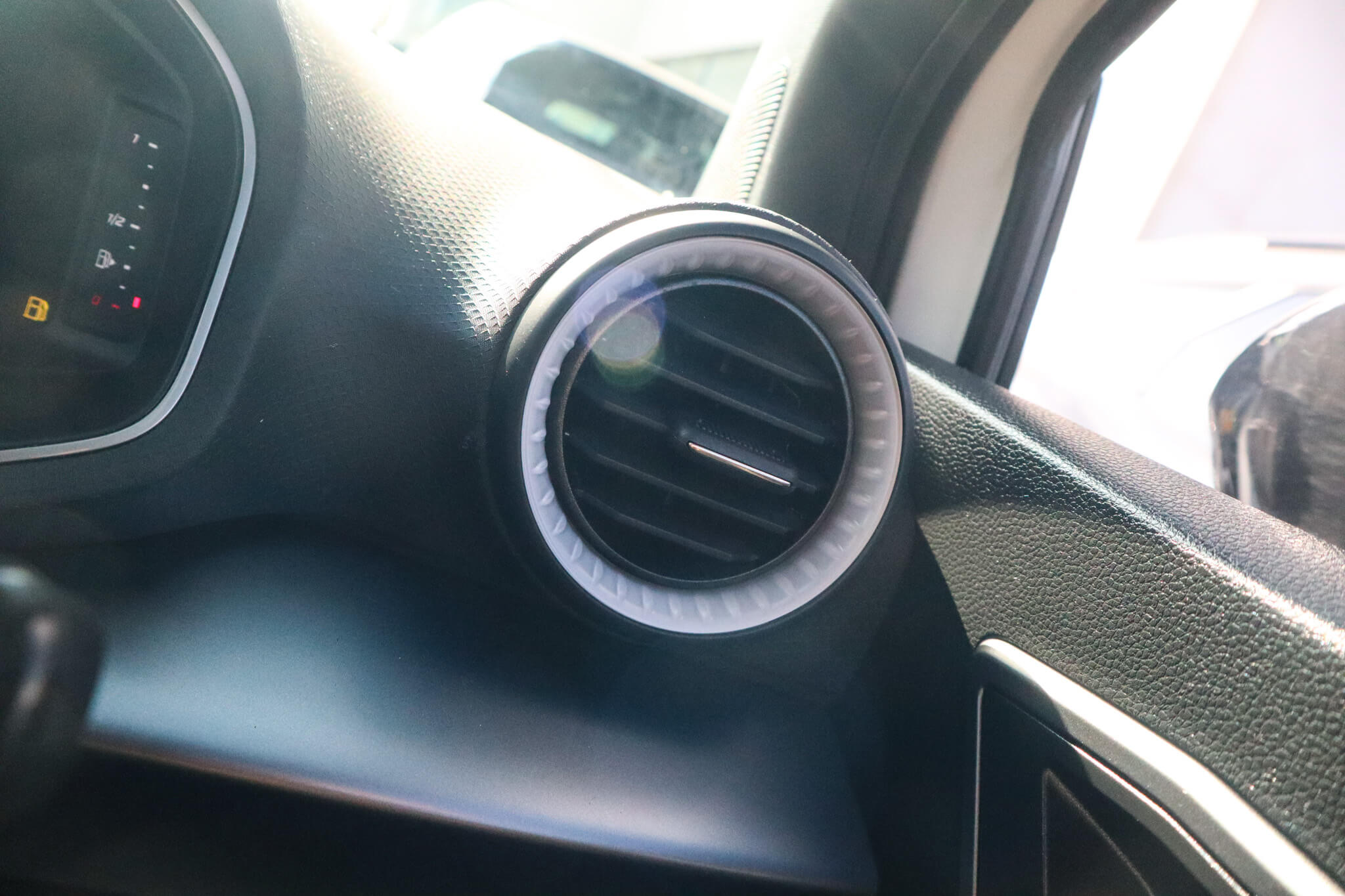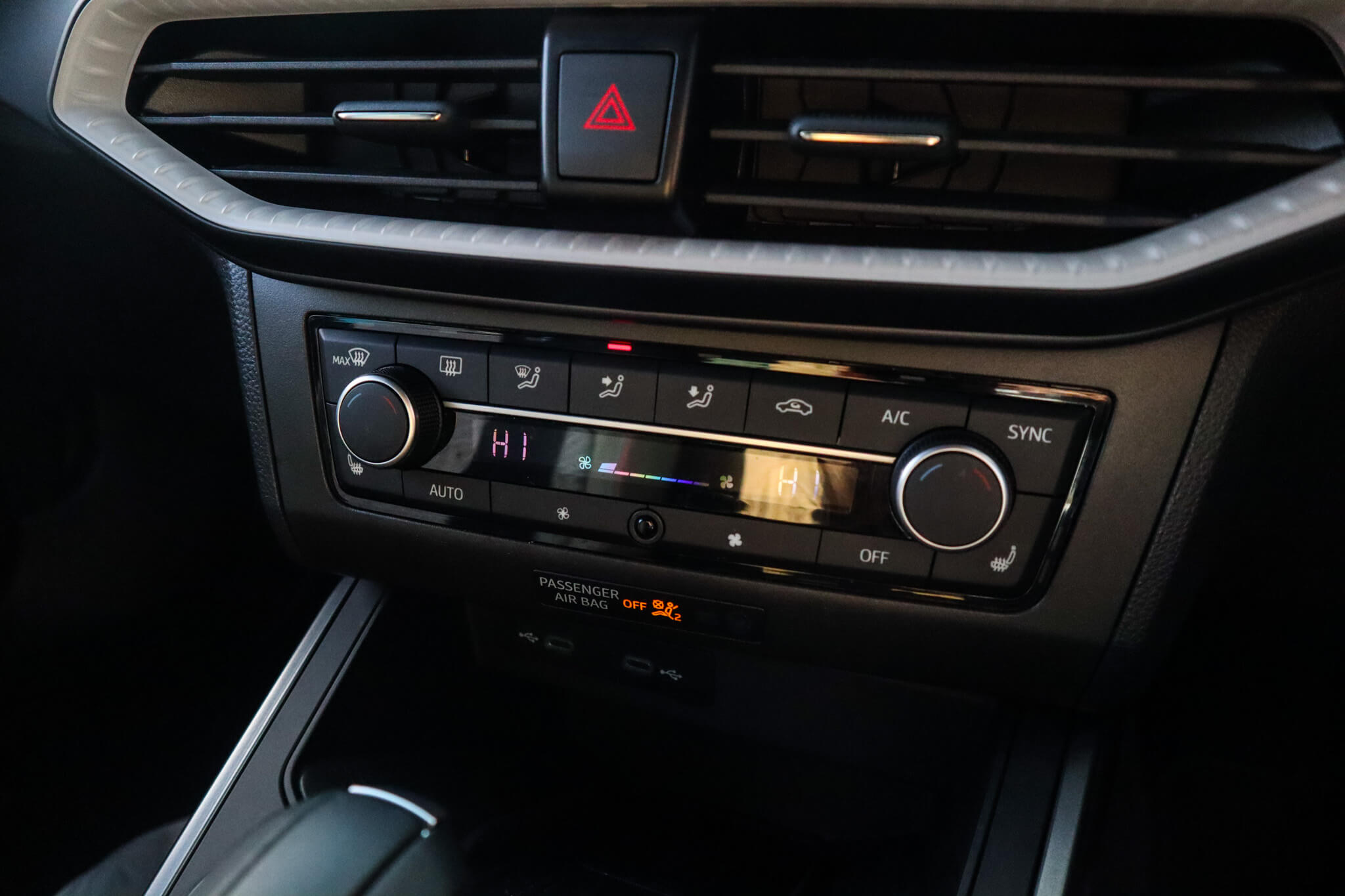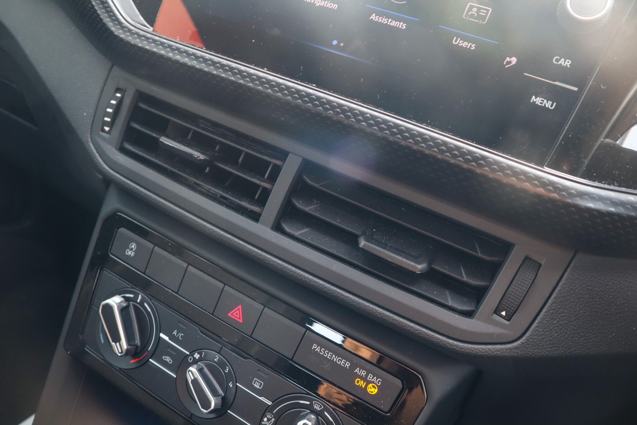 "Chrome surround on air conditioning buttons",