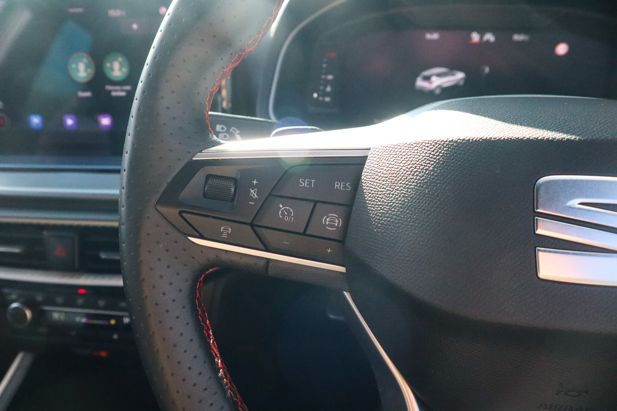 "Intelligent adaptive cruise control switch on steering wheel",